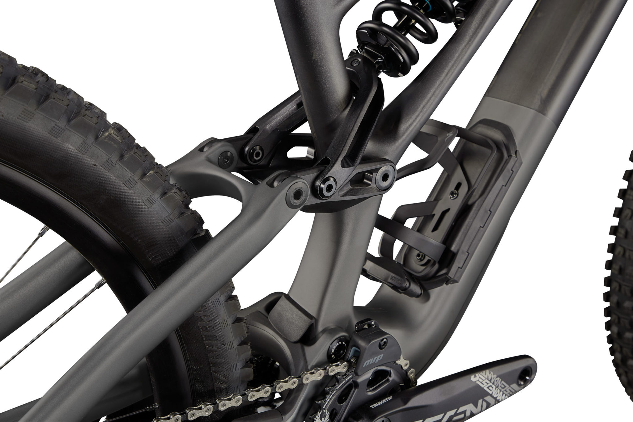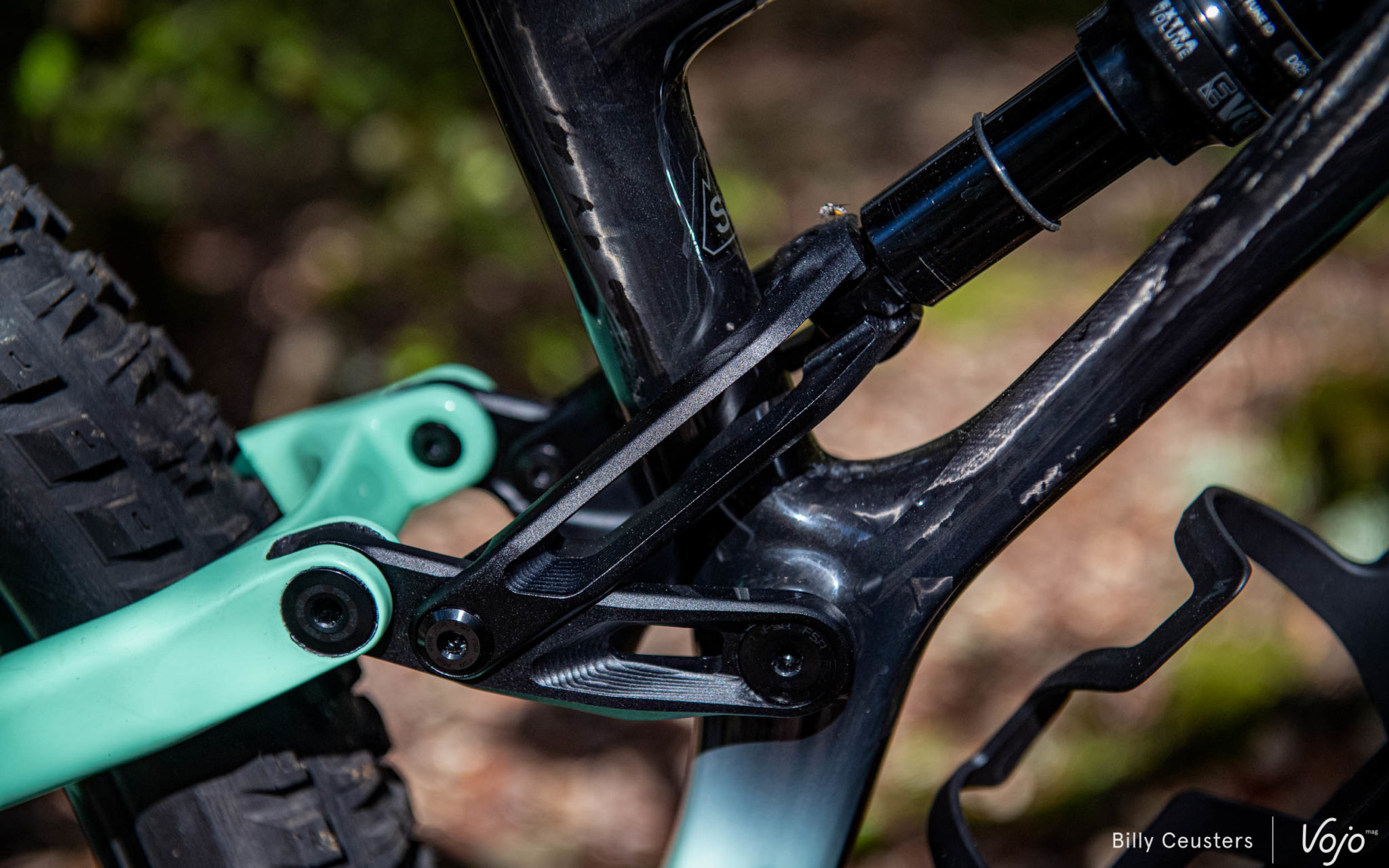 Seule différence : le modèle S-Works gratte quelques grammes au niveau de la peinture, et ajoute un « rocker link » en carbone pour relier le bras arrière à l’amortisseur alors que celui-ci reste en alu sur les autres modèles.