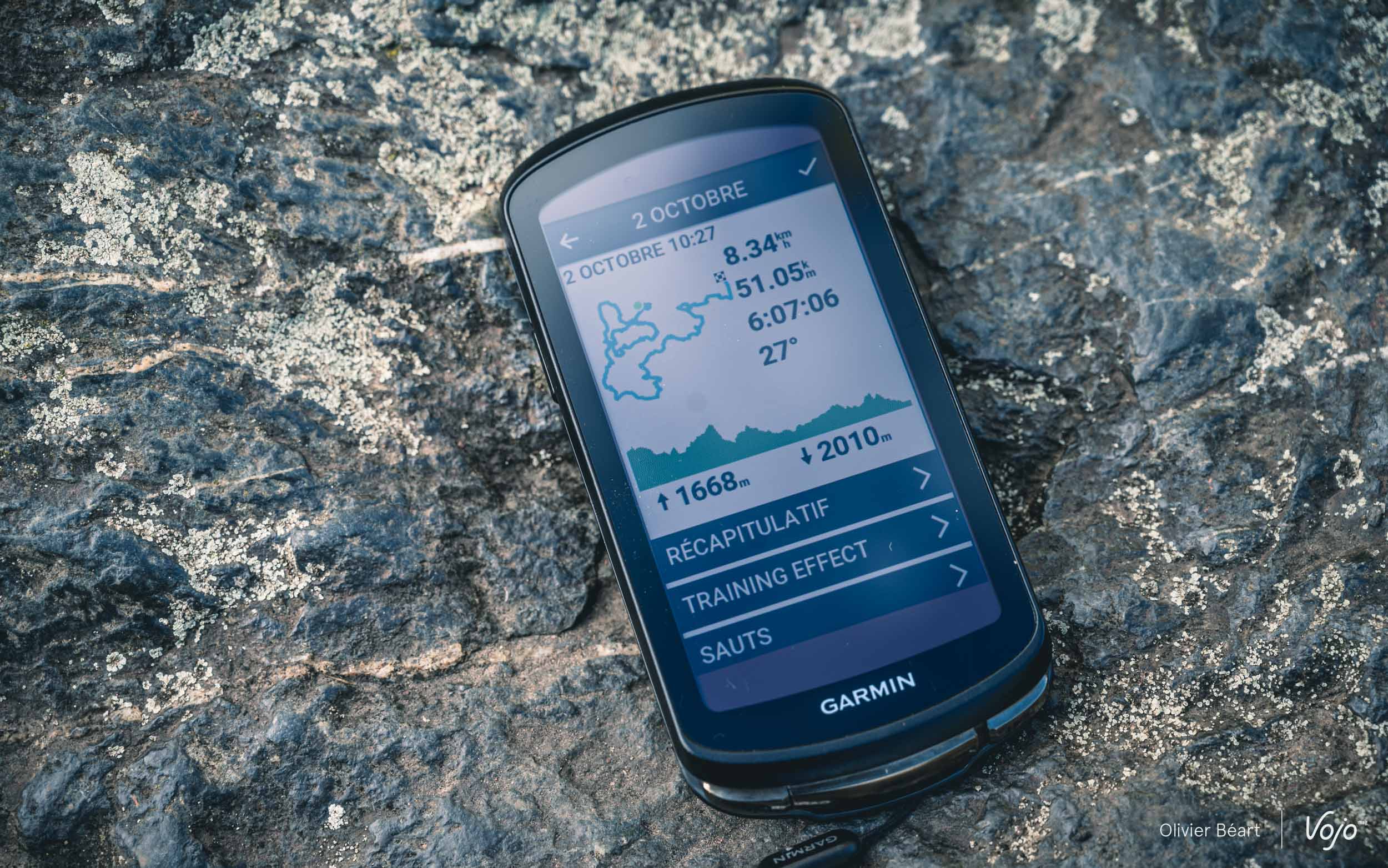 Pour la partie GPS, tant l’enregistrement des données que la navigation sont au-dessus de tout reproche. Les fichiers .gpx extraits sont précis et en lecture, le grand écran au fond de carte très clair font des merveilles. C’est assurément un des meilleurs GPS du marché pour qui aime suivre des traces, y compris en VTT sur de petits singletracks en pleine forêt. D’autant que les pertes de signal sont rarissimes, pour ne pas dire inexistantes. Bref, à ce chapitre, on frise le sans-faute.