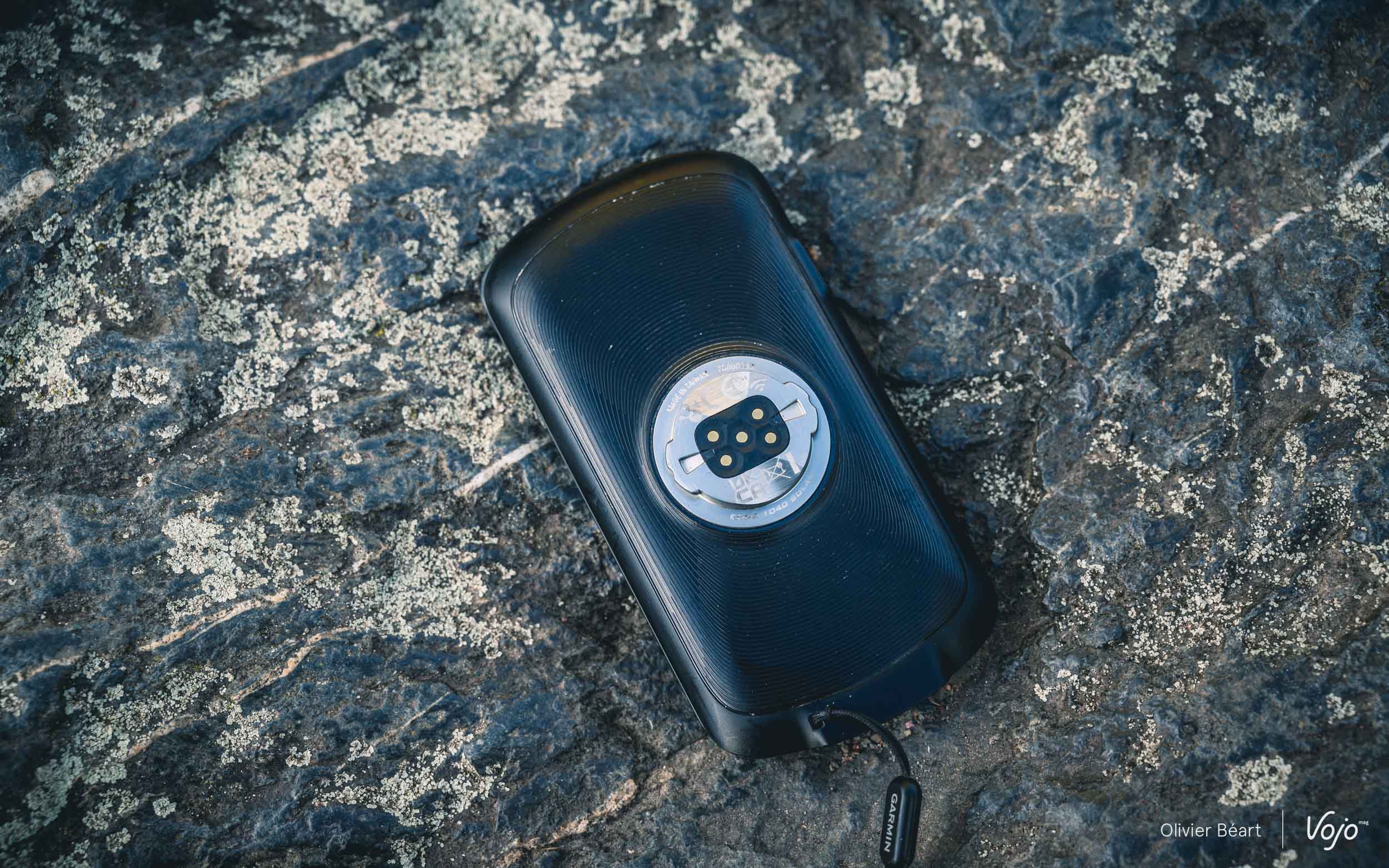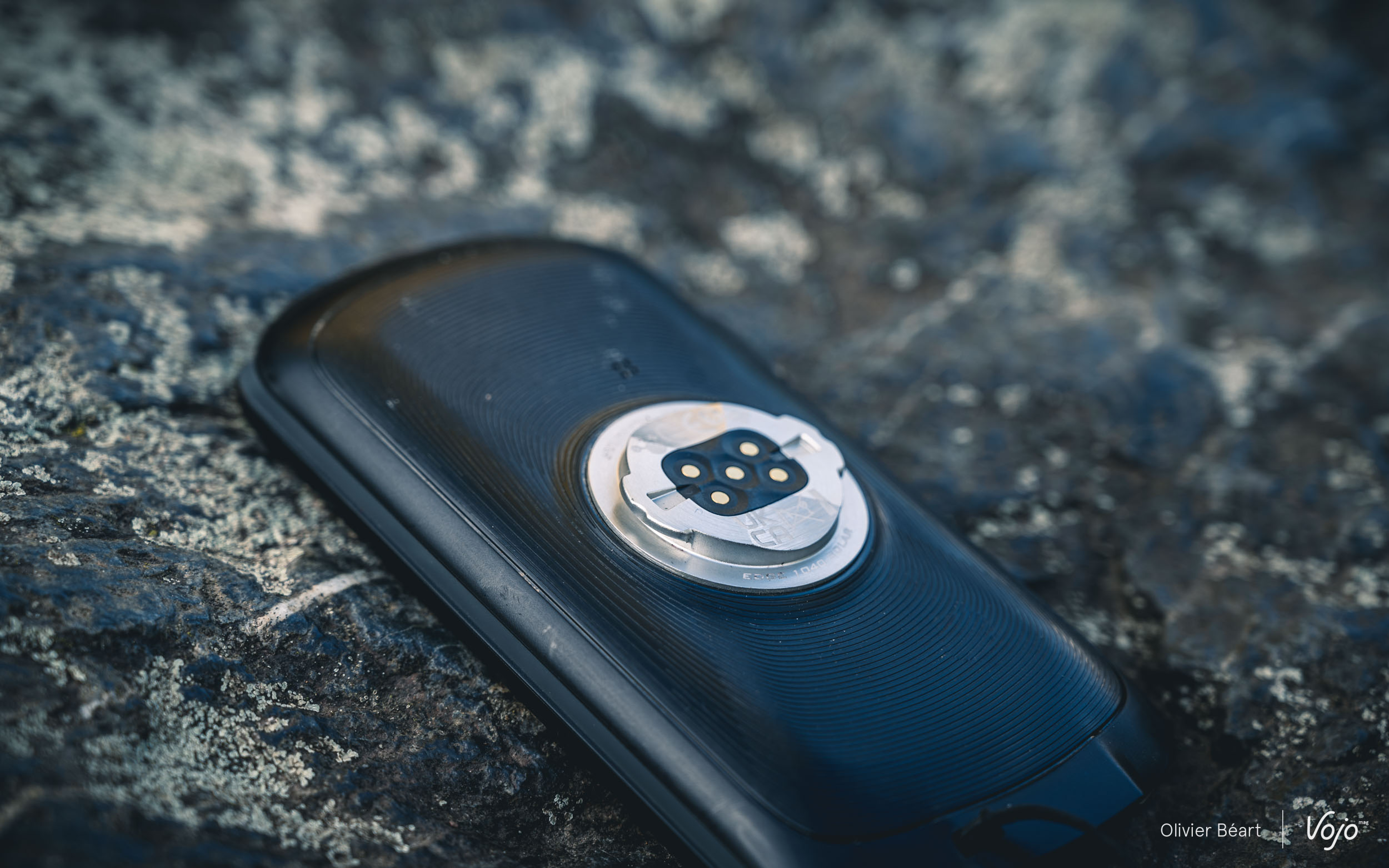 Côté design, il faut aller voir… la face arrière pour voir une autre belle évolution de ce Edge 1040. Le design a rencontré la durabilité : le support de fixation a troqué le plastique qui le composait sur l’ancienne génération pour se doter de métal. Ce choix, s’il permet d’obtenir une avancée non négligeable au niveau finition et solidité (un point faible par le passé), ne plombe pas pour autant le Edge 1040 sur la balance : celui-ci affiche un poids de 133g, soit seulement 7g plus lourd que le 1030 Plus.