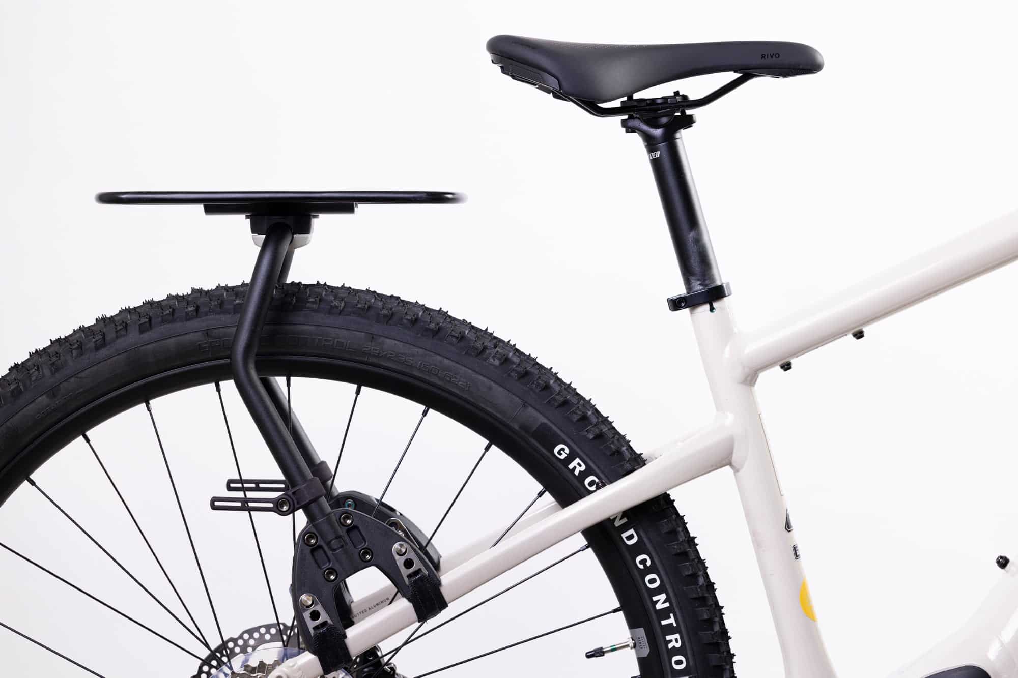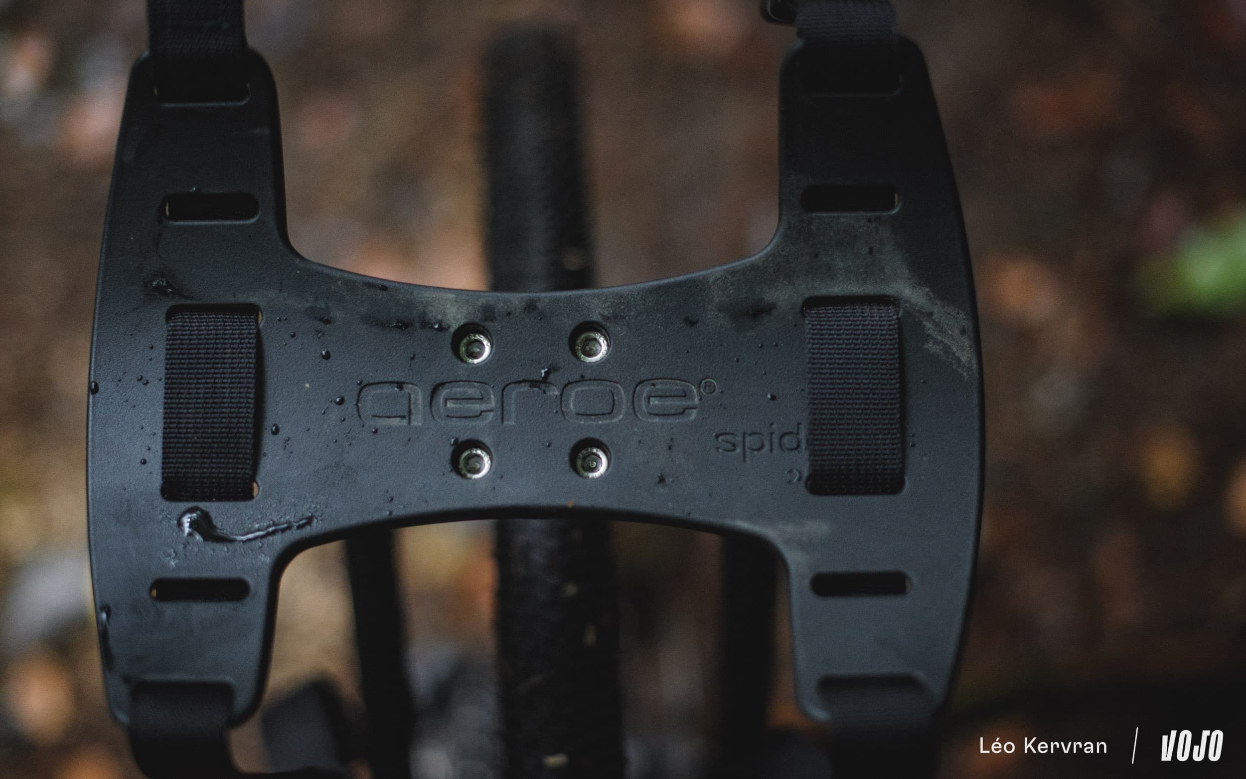 Enfin, on a aussi essayé l’Aeroe Spider Rack sur un VTT tout-suspendu en aluminium, le Rockrider Feel 900 LT en l’occurence (test à venir prochainement). Là, il faut être un peu plus attentif au montage : avec la compression de la suspension, un sac rempli pourrait venir toucher la selle si les pieds sont placés trop haut ou si le berceau n’est pas orienté correctement.