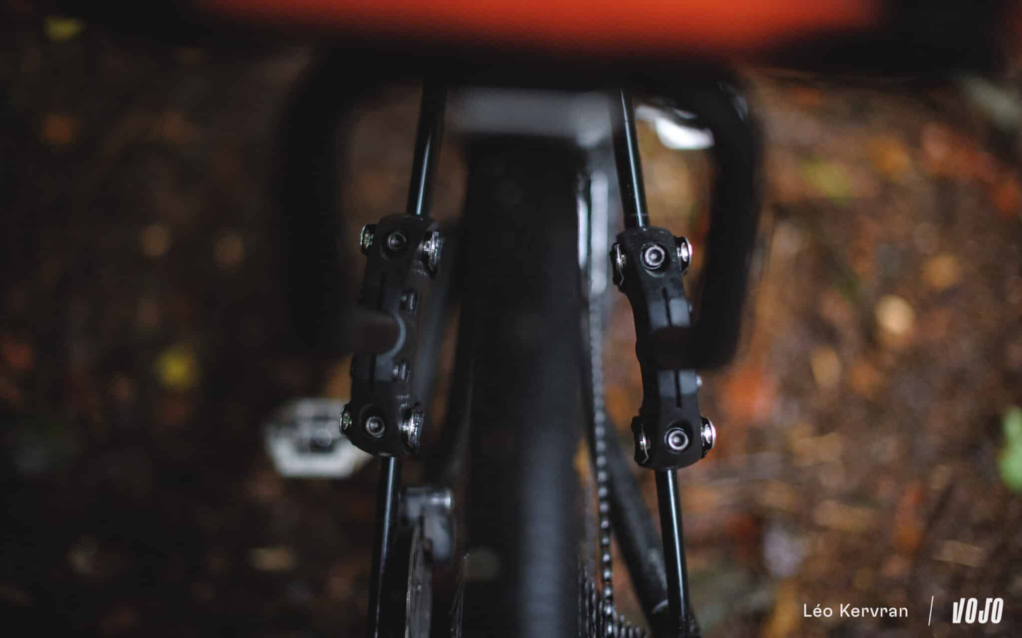 L’installation sur le vélo est enfantine : on desserre les quatre vis de tension des sangles, on positionne les pieds sur les haubans, on attache les petites sangles qui font le tour des tubes et on serre gentiment le tout avec une clé hexagonale de 5 mm. Attention à ne pas serrer trop fort : Aeroe recommande un couple maximal de 4 Nm et sur certains vélos (cadre en carbone notamment), on n’a même pas eu besoin de monter aussi haut.