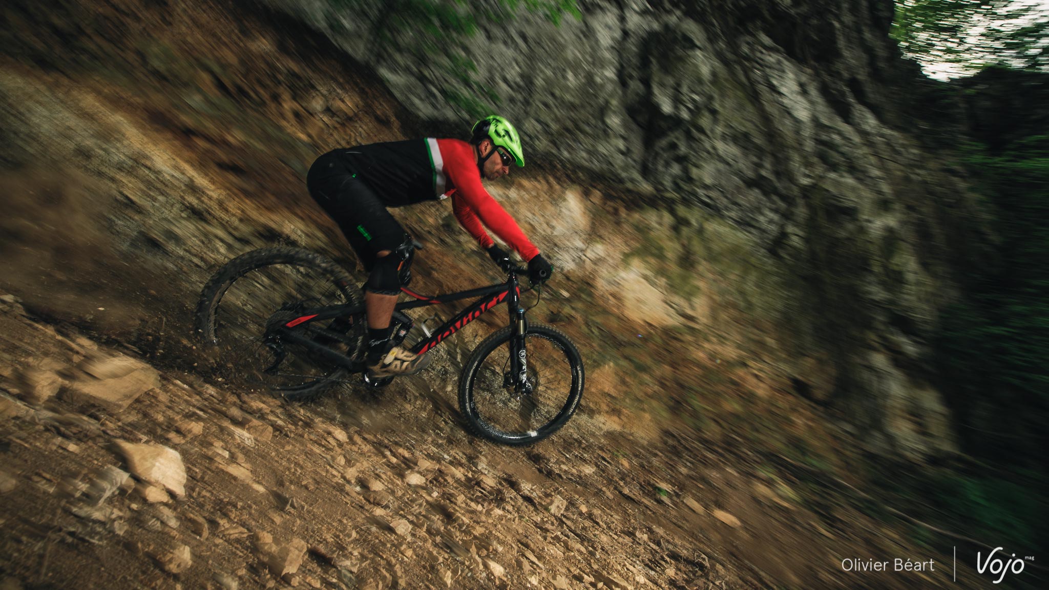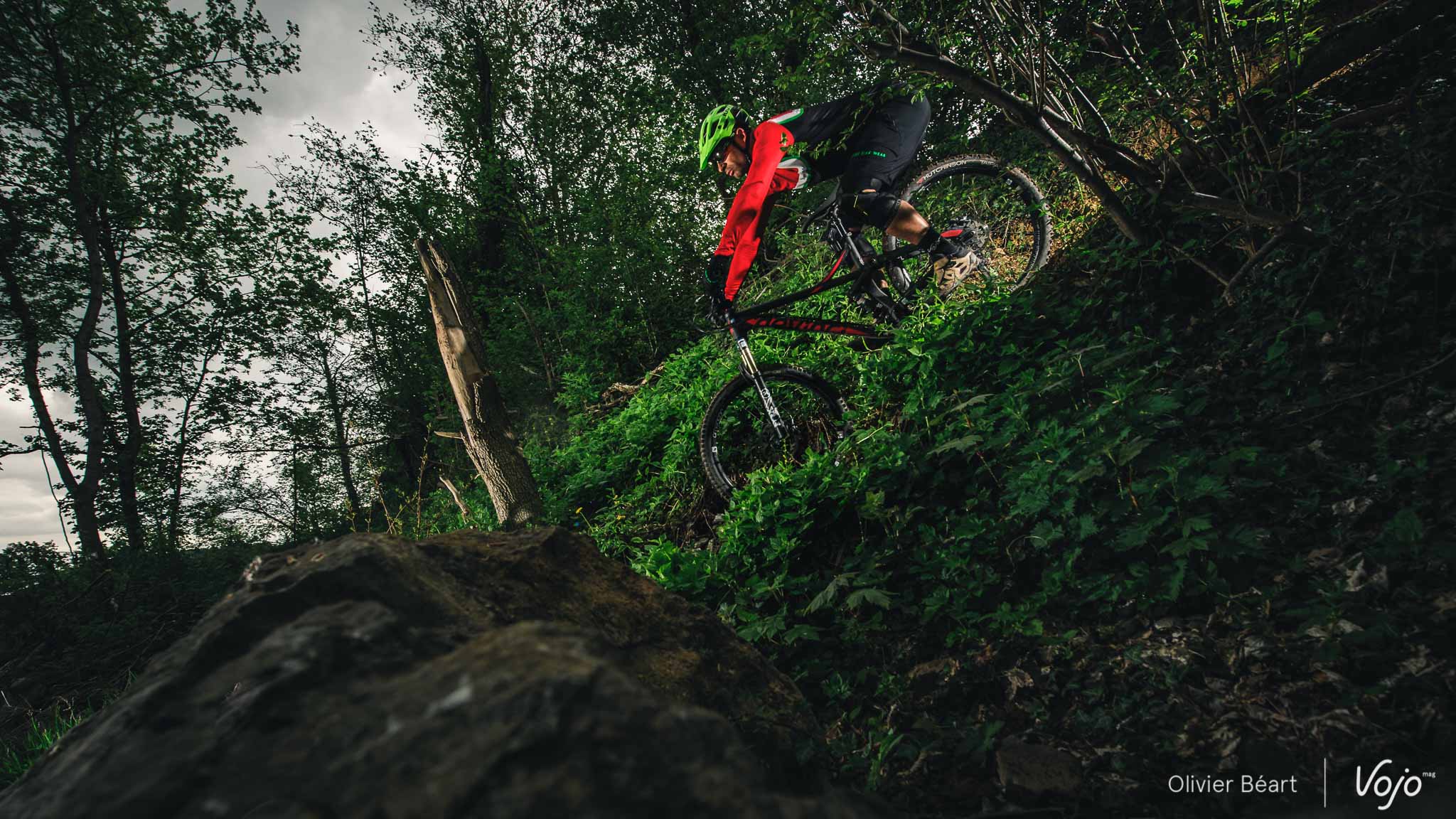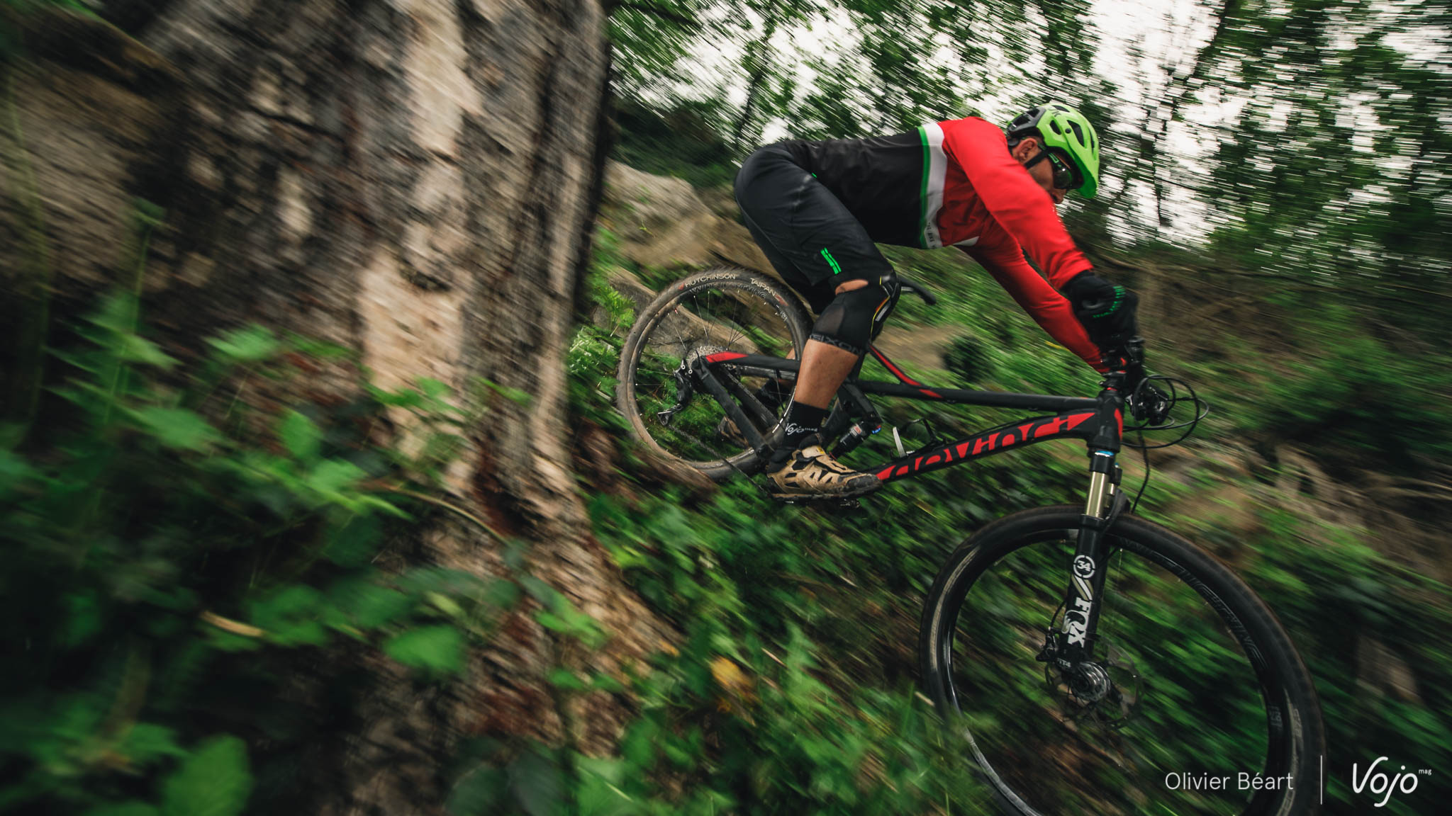 Comme dans les relances, elles offrent juste un zeste d’élasticité particulièrement agréable quand on veut jouer avec le vélo et le jeter d’un appui à l’autre. Avec des pneus « costauds », il n’y a pas de souci de déformation excessive dans les appuis non plus. Avec des pneus light, il en aurait sans doute été autrement mais ici, on tient un bien joli couple. Le Michelin Rock’R2 tire particulièrement son épingle du jeu en se montrant hyper accrocheur en latéral, ce qui permet de prendre de l’angle sans retenue. Et nous, on adore ça !
