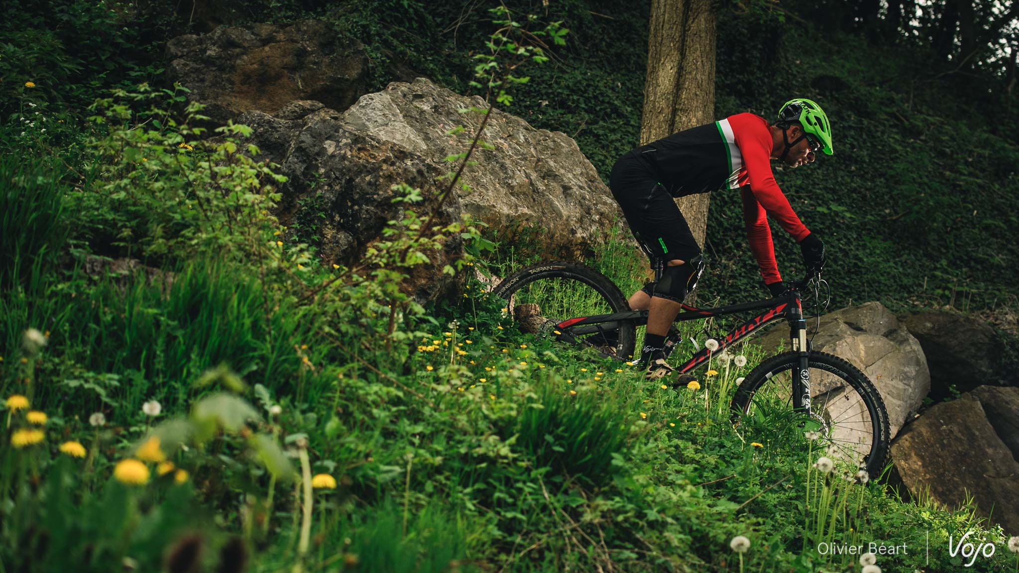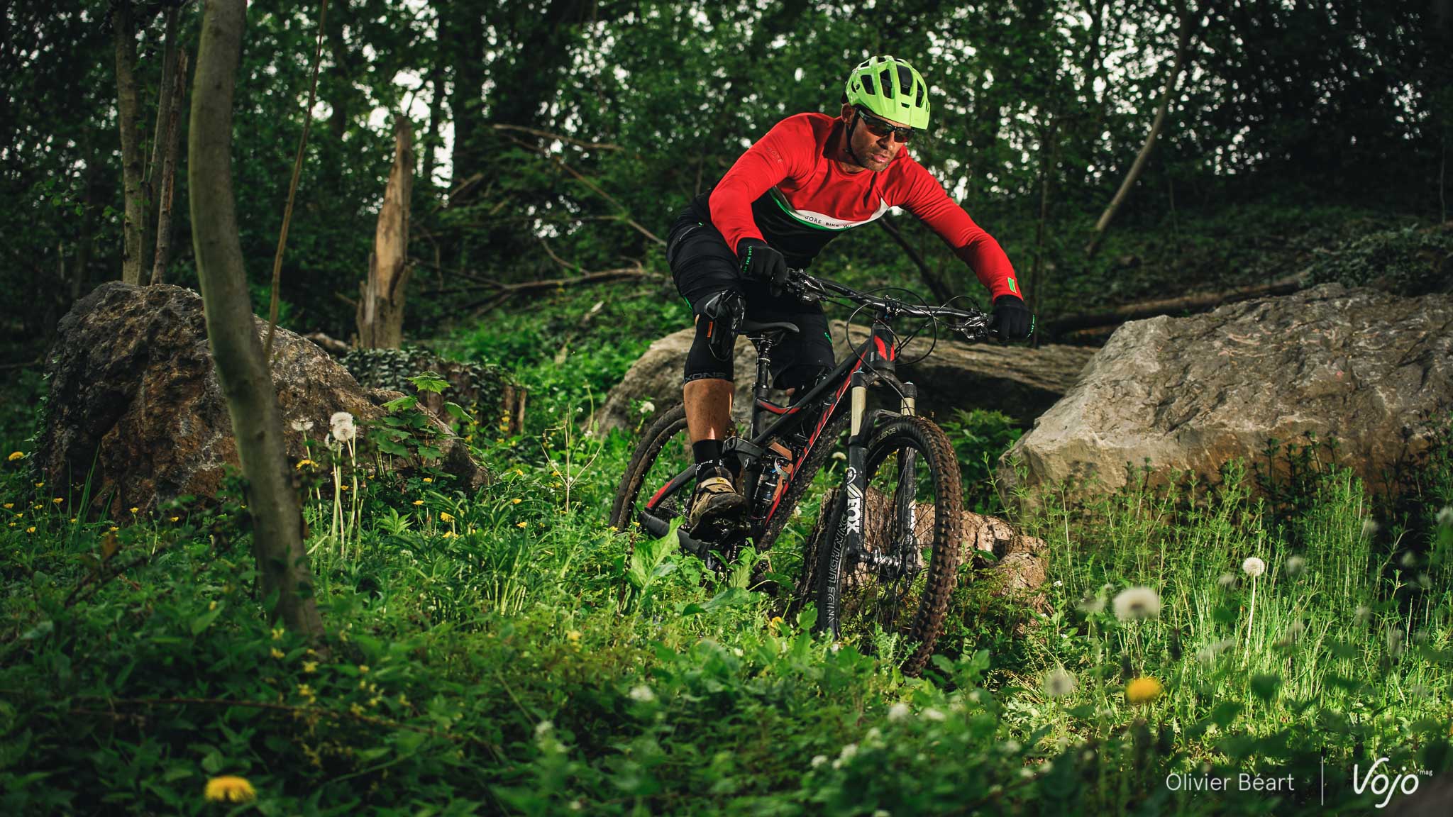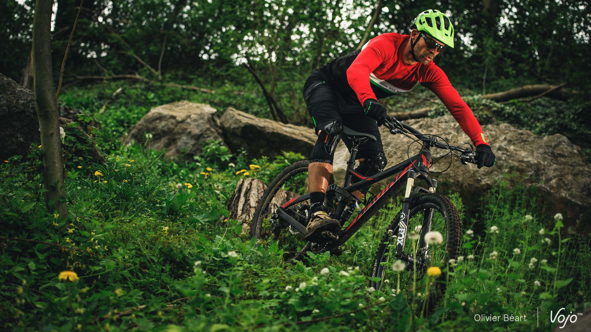 Comme dans les relances, elles offrent juste un zeste d’élasticité particulièrement agréable quand on veut jouer avec le vélo et le jeter d’un appui à l’autre. Avec des pneus « costauds », il n’y a pas de souci de déformation excessive dans les appuis non plus. Avec des pneus light, il en aurait sans doute été autrement mais ici, on tient un bien joli couple. Le Michelin Rock’R2 tire particulièrement son épingle du jeu en se montrant hyper accrocheur en latéral, ce qui permet de prendre de l’angle sans retenue. Et nous, on adore ça !