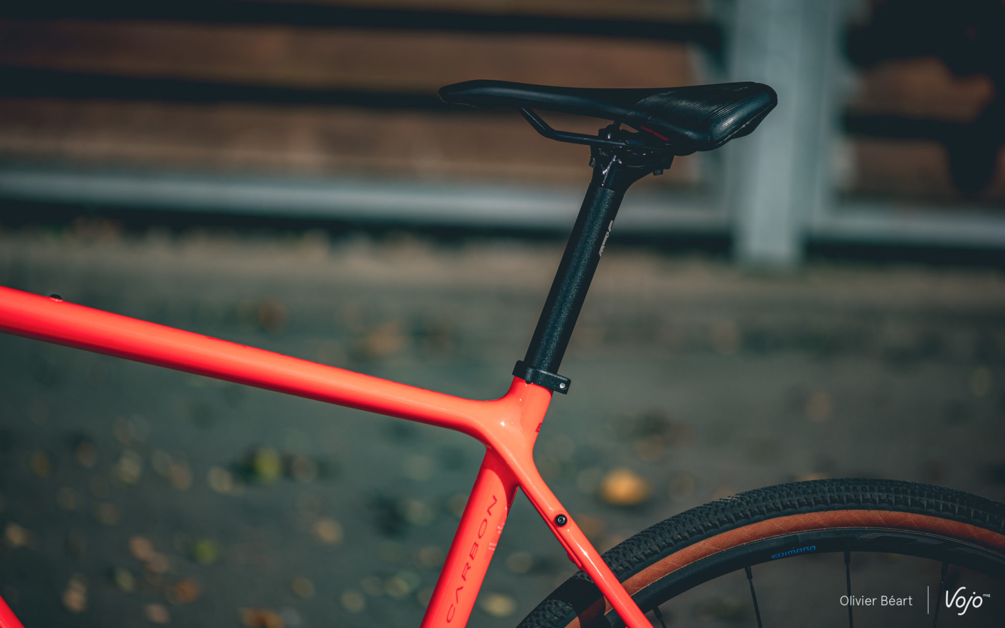 Son angle de direction le rend vif dans les virages serrés et les « pif-paf » mais il ne se montre pas traître quand ça tabasse. Il faut juste garder à l’esprit qu’en pneus de 40 et sans suspensions, on ne fait pas de miracles et il faut que le pilote soit capable de tenir la bête pour profiter de son potentiel. Heureusement, les freins Shimano GRX aident bien et la prise en main des poignées offre un grip rassurant sur le guidon. Cela peut sembler futile, mais en pratique c’est tout sauf un détail…
