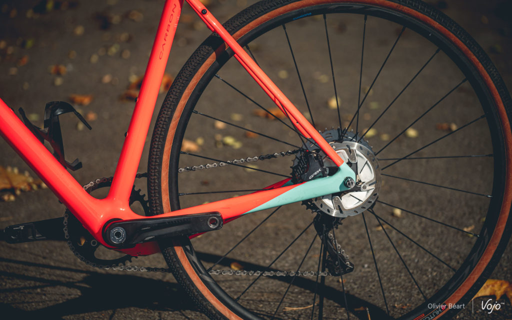 Du côté de la transmission, BH fait confiance à Shimano avec l’inévitable groupe gravel GRX. C’est une bonne chose car c’est à notre sens le meilleur choix en gravel à l’heure actuelle, surtout au niveau de l’ergonomie des poignées et de la puissance des freins… deux éléments extrêmement importants en off-road.