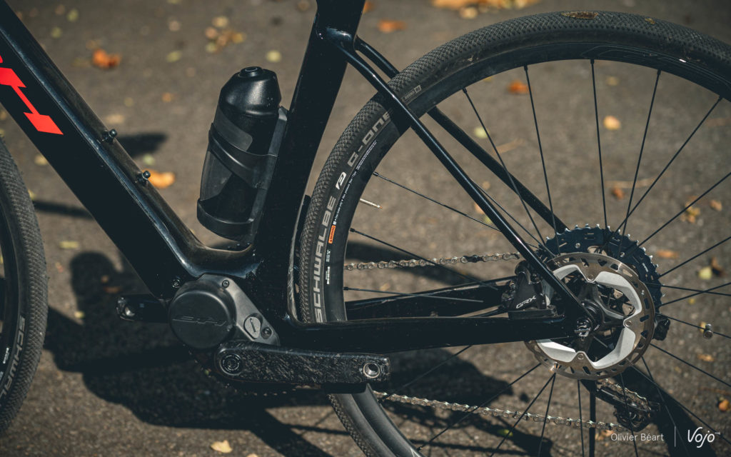 Mais nous nous sommes vite rendu compte que le BH Core Gravel ne pouvait pas cacher ses origines de vélo de route. Avec son cadre profilé, et malgré des haubans fins, il ne parvient pas réellement à suivre et à procurer un minimum de confort en off-road. Dans les passages techniques, avec son poids, on se demande même parfois ce qu’on fait là. Et son moteur manque aussi clairement de couple pour aborder des coups de cul raides comme on en rencontre régulièrement en off-road.