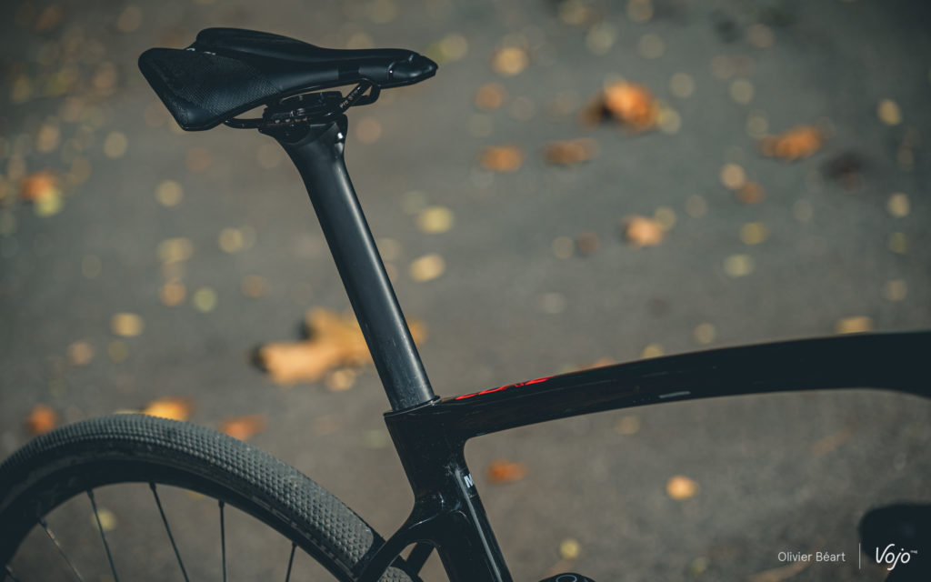 Pour le reste, le BH Gravel X ne fait pas dans le grand luxe, mais on a malgré tout des composants alu de qualité, à la finition soignée. Petite remarque tout de même : si le cintre alu ne souffre aucune critique, la tige de selle ne filtre pas énormément les vibrations même si elle est au diamètre 27,2mm. Heureusement, le cadre est plutôt bon dans ce domaine, mais avec une tige carbone étudiée pour se déformer un minimum, le résultat global aurait encore pu être meilleur.