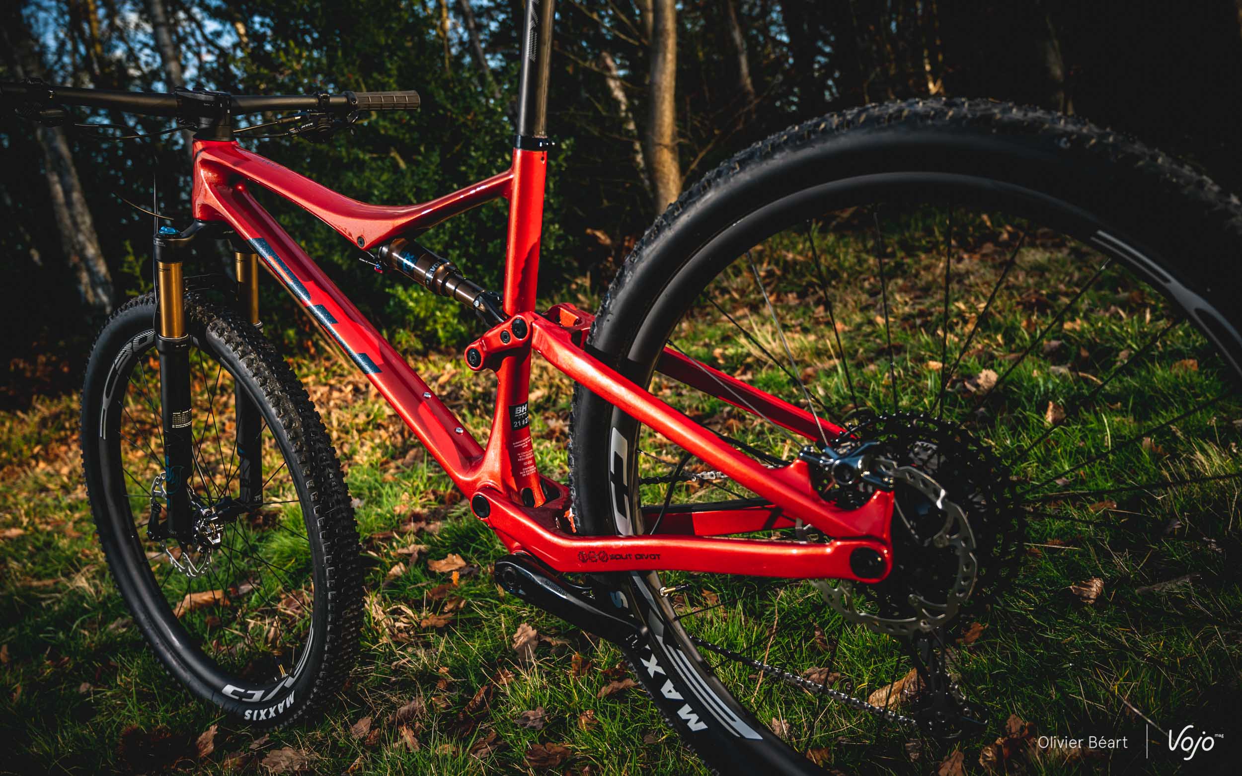 Mais le vrai changement, c’est surtout qu’on peut désormais choisir entre deux débattements de 100 et 120mm. Comme chez ses principaux concurrents (Specialized Epic/Epic Evo, Cannondale Scalpel/Scalpel SE, Orbea Oiz XC/Oiz TR,…), le changement se fait au niveau de la course du piston sur l’amortisseur, mais sans changement de la longueur de ce dernier, de sorte qu’il n’y a pas de modification de la géométrie ou de la cinématique de suspension. Moyennant un passage de l’amortisseur à l’atelier, il est même possible de changer le débattement a posteriori si on le souhaite. De quoi avoir deux vélos en un !