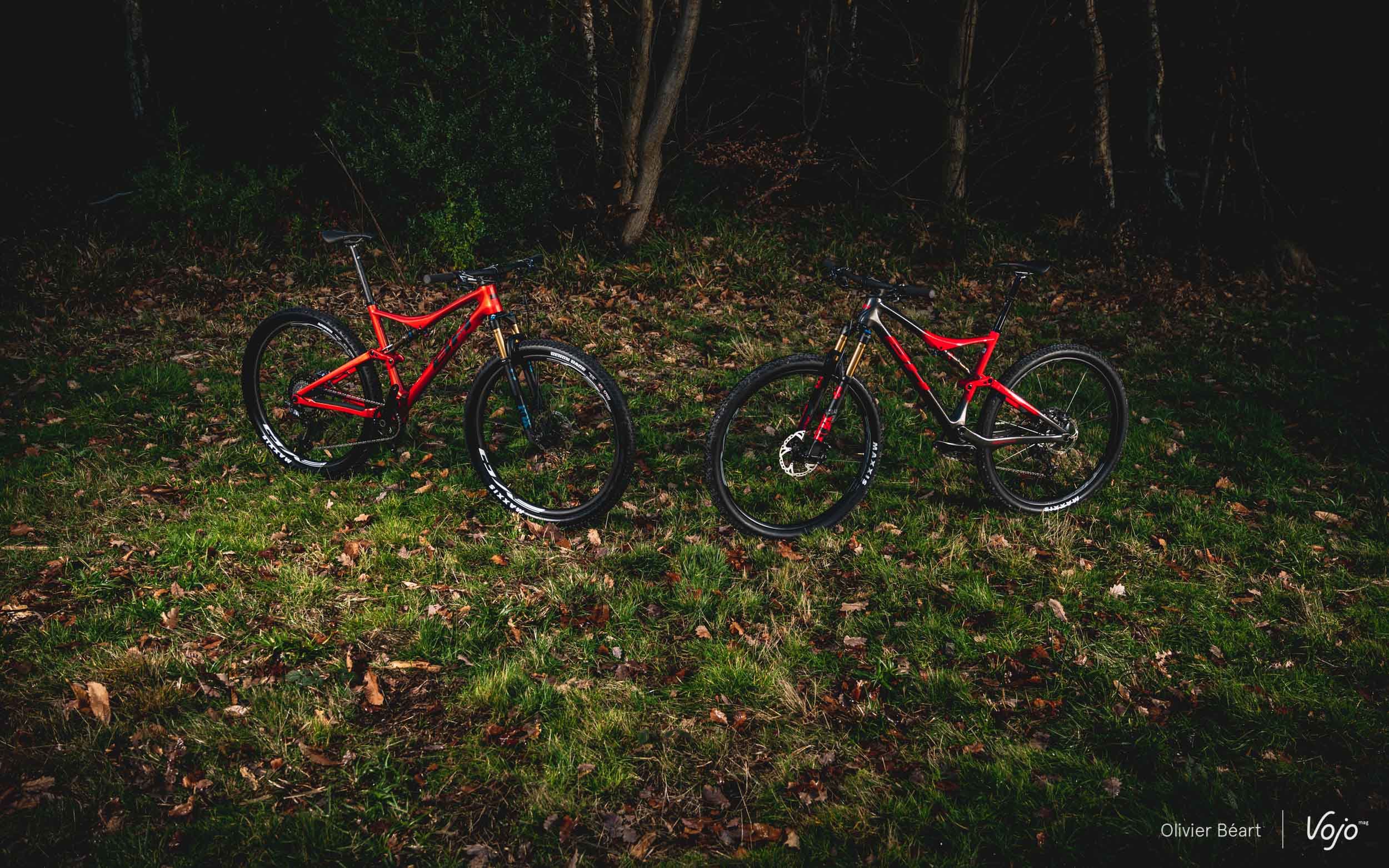 Pour 2021, après avoir renouvelé sa gamme semi-rigide et alors que de nombreux constructeurs ont entièrement renouvelé leur gamme de XC les deux dernières saisons, BH se replace dans la course en présentant une plateforme qui change à la fois peu sur certains aspects, mais beaucoup plus sur d’autres. Et qui se décline désormais en deux débattements différents pour séduire un plus large public, allant des purs compétiteurs XC/marathon jusqu’à des bikers à la recherche de plus de confort, de polyvalence et d’aisance sur des terrains très techniques. Pour cet essai, à gauche, en rouge et gris, on retrouve donc la version LT en 120mm, et à droite le XC en 100mm.
