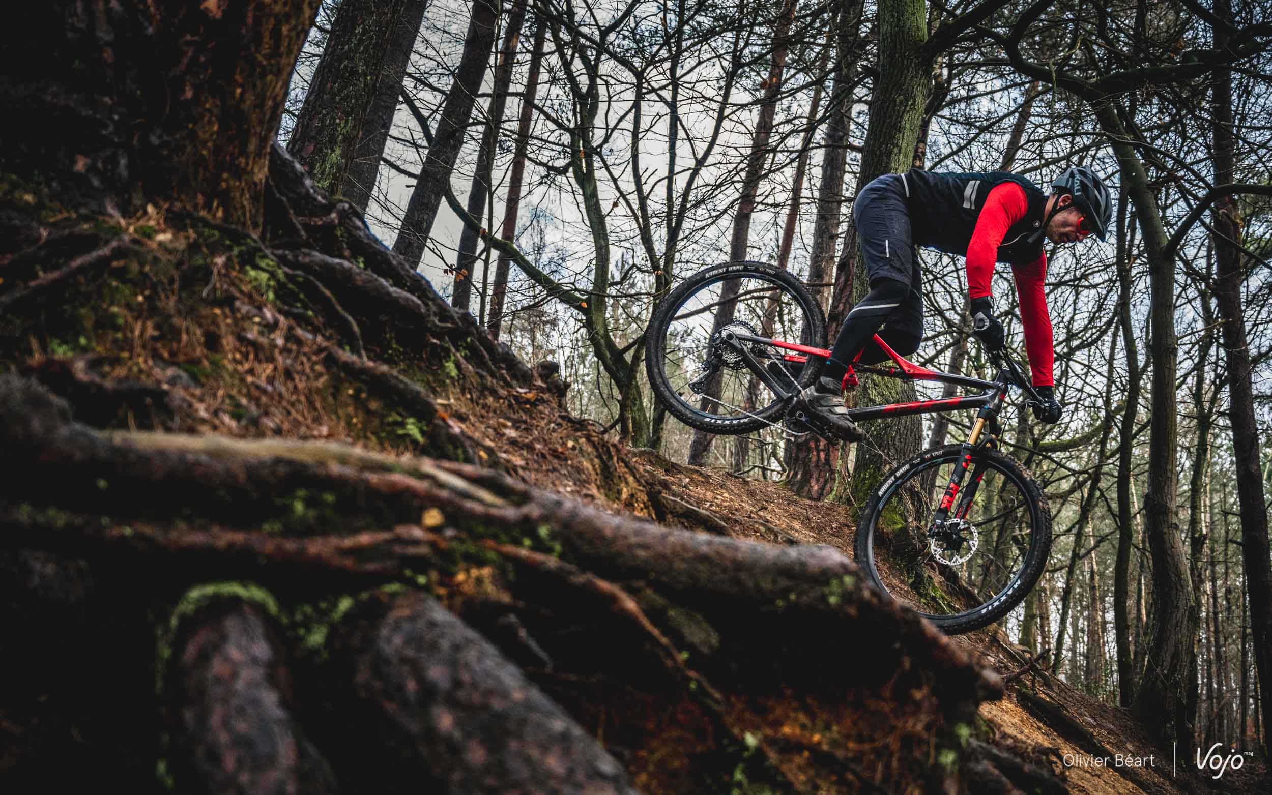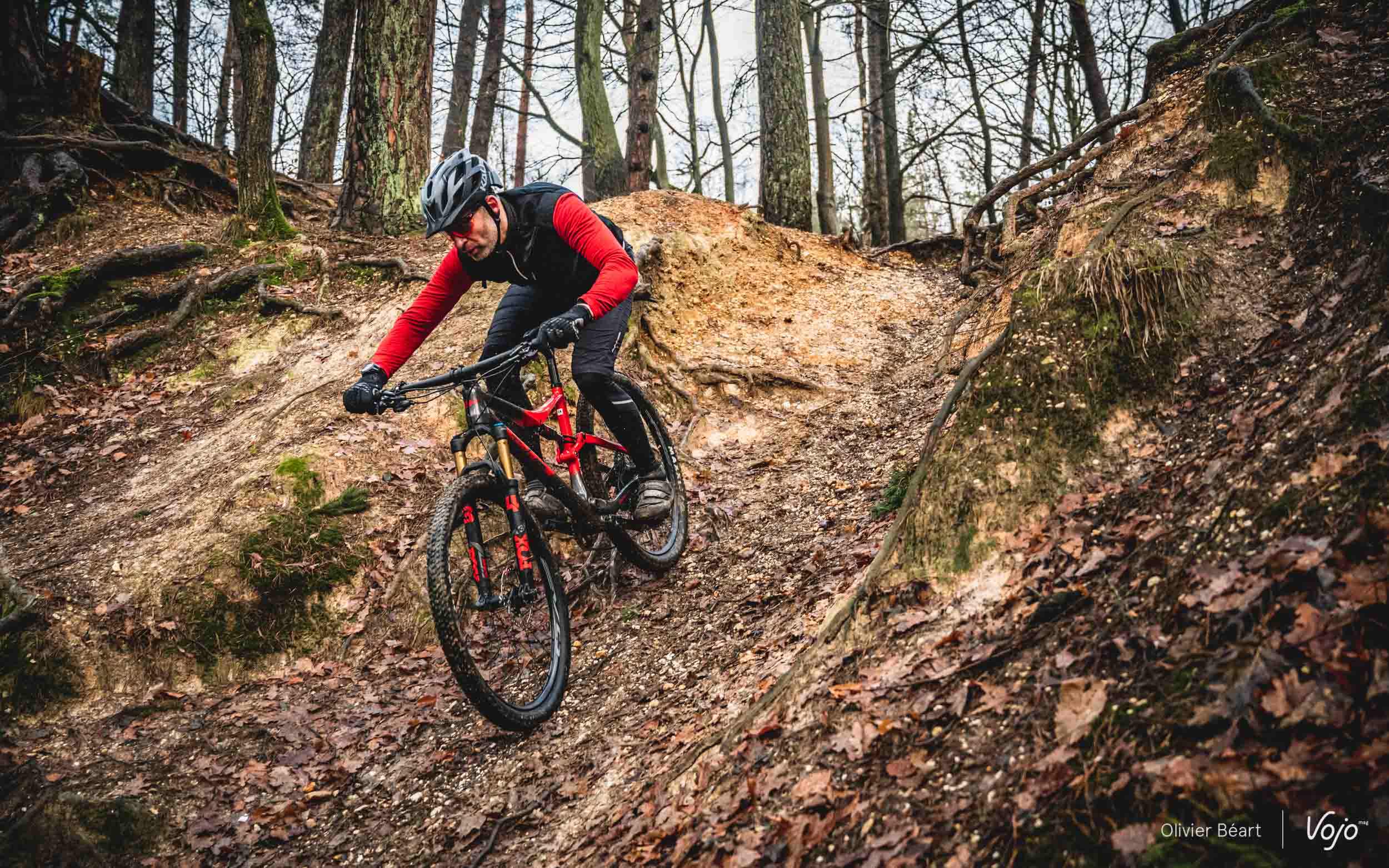Mais là où il fait très fort, c’est que cette vitalité se fait dans une certaine douceur, sans en faire des tonnes et sans rendre le vélo exigeant. En fait, la suspension procure un tel grip en toutes circonstances et la rigidité du cadre est si finement dosée qu’on ne sent jamais le vélo sautiller ou sur-réagir. La mise en vitesse est efficace mais sereine et le vélo donne vraiment envie de pédaler partout, y compris sur des reliefs très tourmentés. D’autant qu’on ne ressent que rarement le besoin de bloquer les suspensions, sauf pour un sprint sur asphalte. Mais à part cela, on pourra vraiment les laisser quasi tout le temps ouvertes sans ressentir de pénalité. Le top.
