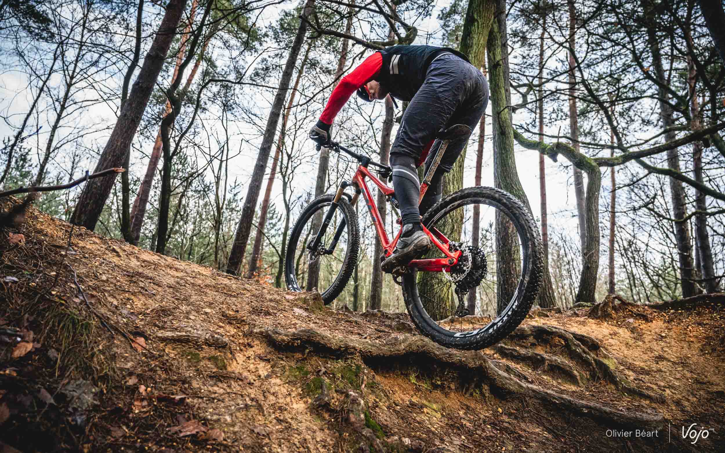En 2.25 avec un peu plus de crampons, on aborde les mêmes passages avec beaucoup plus de sérénité. Alors oui, sur un parcours de coupe du monde très cassant et sec, les jantes de 30mm et les pneus en 2.4 sont peut-être pertinents. Mais pour un usage amateur, toute l’année, sur des terrains variés, le 2.25″ sur jante de 25mm de large nous semble un choix bien plus judicieux.