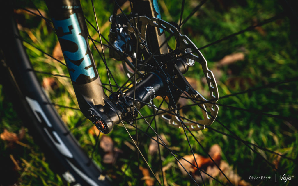 A l’avant aussi, il y a du changement entre les versions XC et LT, puisque la première est montée avec une fourche Fox 32 SC en 100mm de débattement, alors que le second est équipé fort logiquement de la Fox 34 SC en 120mm. Outre la différence de débattement, la 34 est plus rigide et conviendra mieux aux pilotes agressifs ou aux sorties orientées vers le plaisir dans le dénivelé négatif, grâce à ses plongeurs de plus gros diamètre et à son châssis plus généreusement dimensionné.