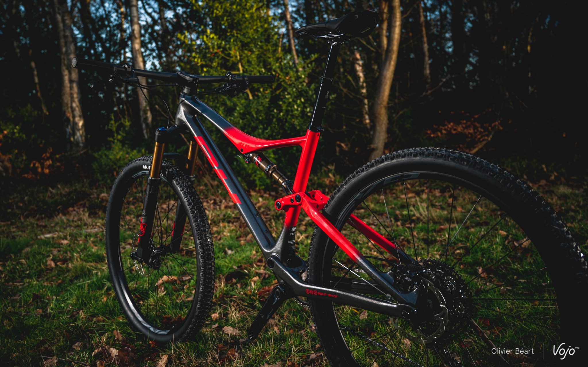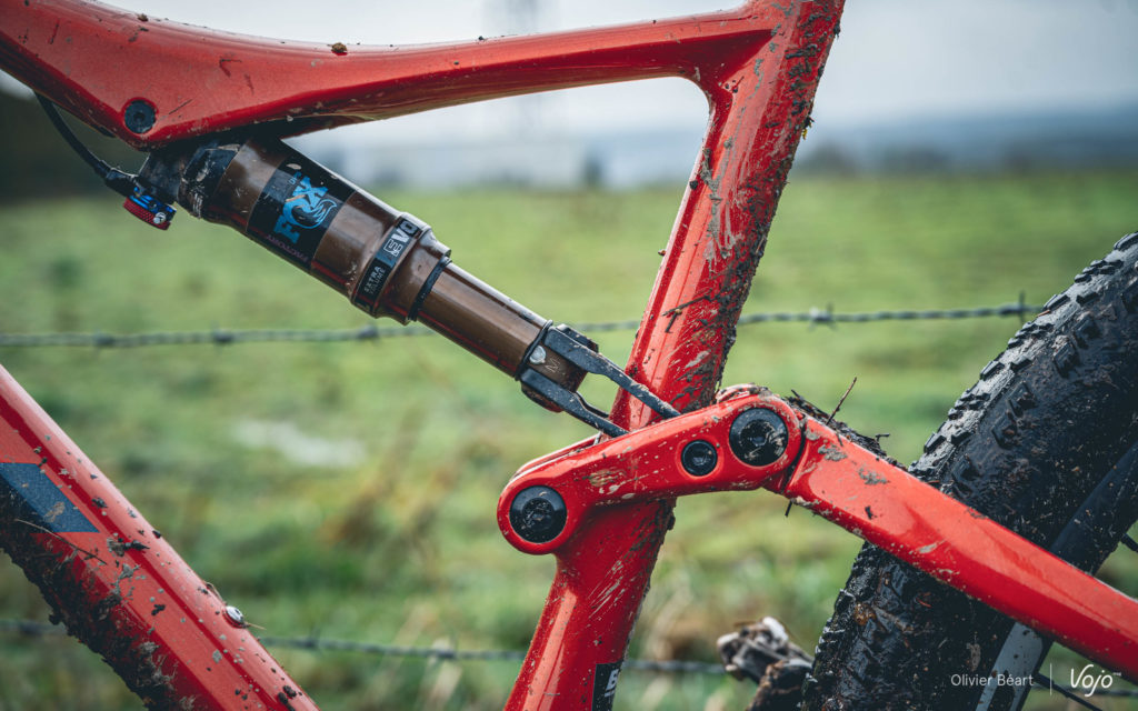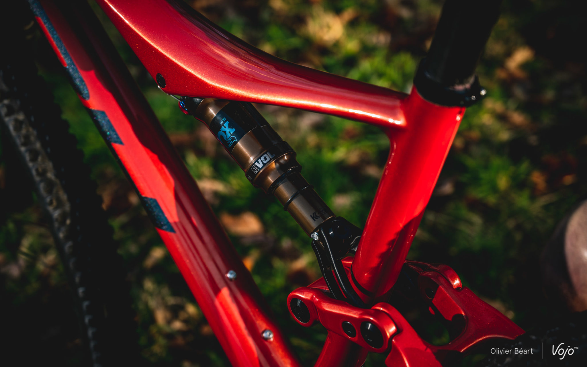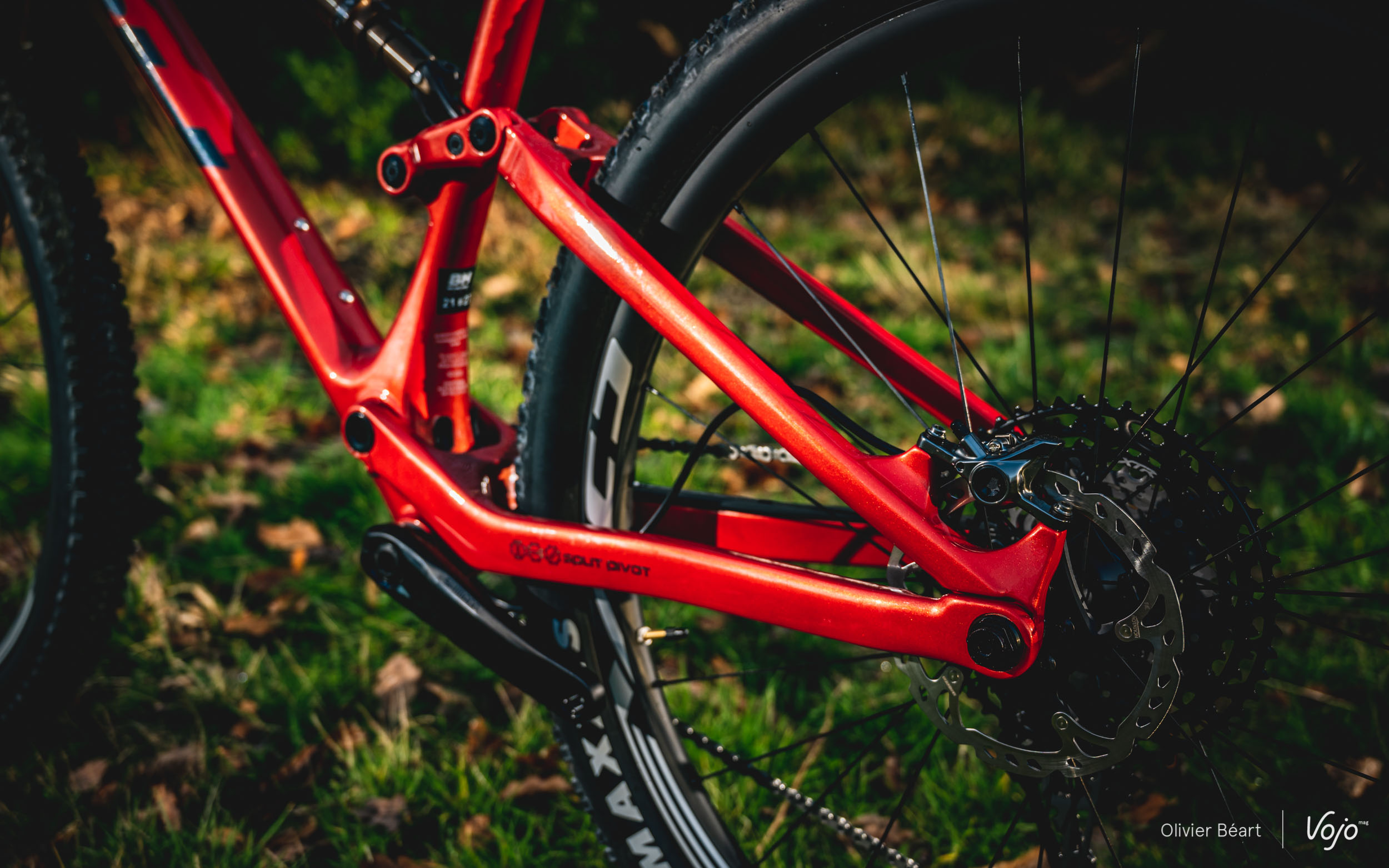 Mais le vrai changement, c’est surtout qu’on peut désormais choisir entre deux débattements de 100 et 120mm. Comme chez ses principaux concurrents (Specialized Epic/Epic Evo, Cannondale Scalpel/Scalpel SE, Orbea Oiz XC/Oiz TR,…), le changement se fait au niveau de la course du piston sur l’amortisseur, mais sans changement de la longueur de ce dernier, de sorte qu’il n’y a pas de modification de la géométrie ou de la cinématique de suspension. Moyennant un passage de l’amortisseur à l’atelier, il est même possible de changer le débattement a posteriori si on le souhaite. De quoi avoir deux vélos en un !