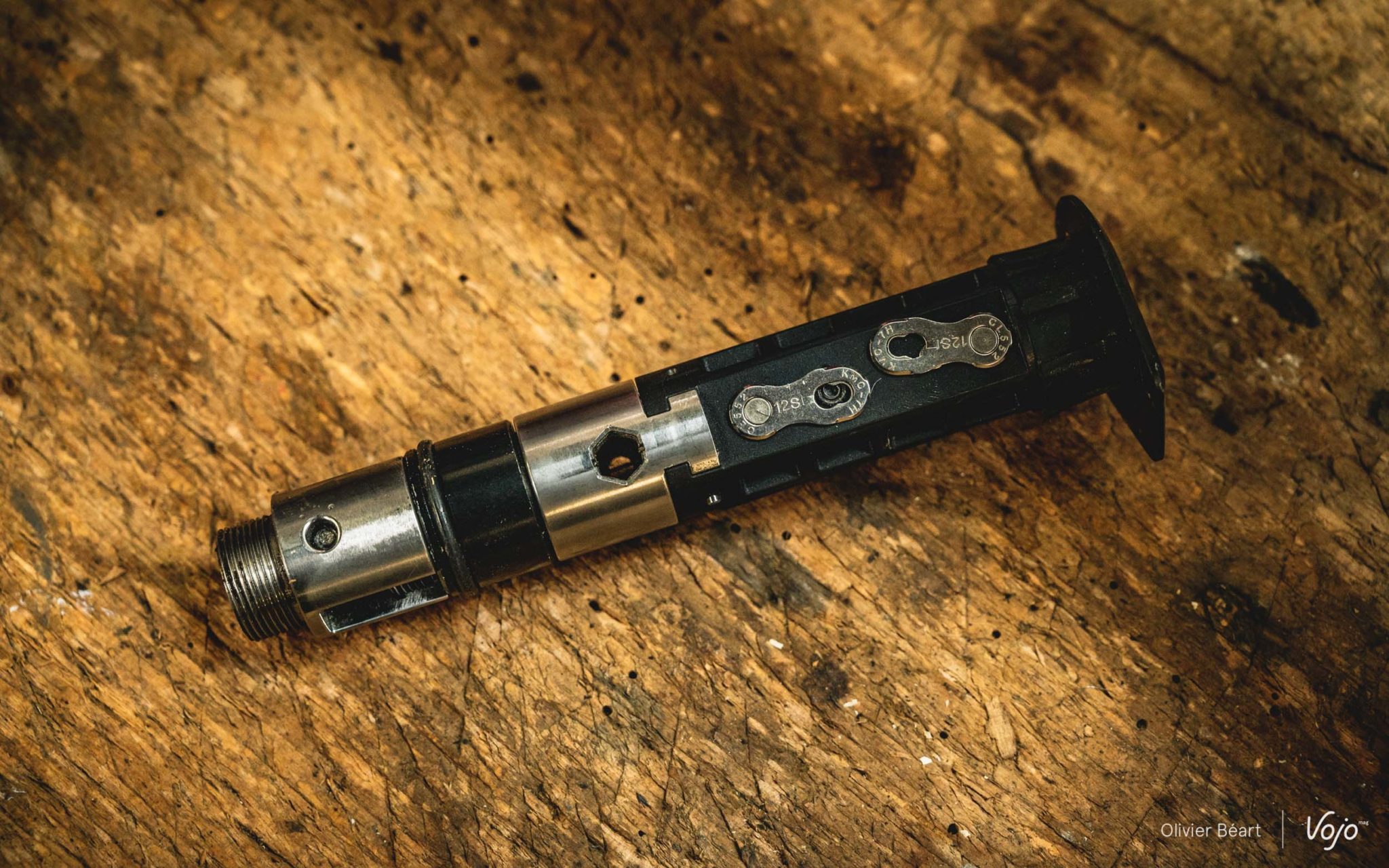 Développé entièrement par BH, ce multi-outils offre une excellente prise en main et une vraie impression de robustesse. Il compte 6 têtes pour s’adapter à toutes les vis du vélo (H2.5/3/4/5/6, une clé Torx T25), de quoi ranger un faux maillon de chaîne, un dérive-chaîne et enfin un logement pour cartouche de CO2 + gonfleur. Sur notre exemplaire de pré-production, il fallait encore serrer un peu fort l’expandeur en caoutchouc situé au sommet afin de bien maintenir le tout et que cela ne fasse pas de bruit quand on roule. Mais ce souci devrait être réglé pour la production et, dans l’ensemble, cette pièce nous a fait très bonne impression. C’est en tout cas agréable et bien pratique d’avoir toujours avec soi de quoi réparer, sans encombrer les poches de son maillot ou devoir prendre un sac.