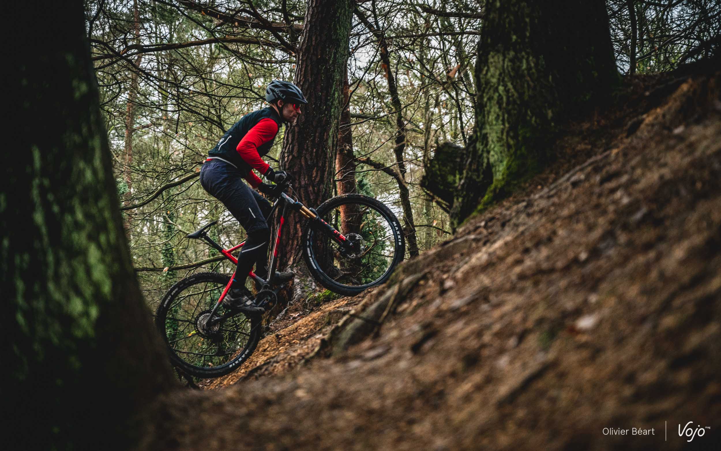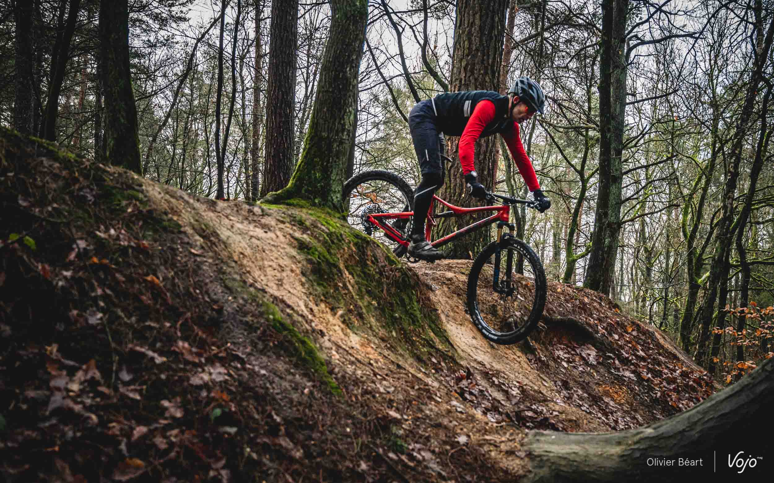 Mais là où il fait très fort, c’est que cette vitalité se fait dans une certaine douceur, sans en faire des tonnes et sans rendre le vélo exigeant. En fait, la suspension procure un tel grip en toutes circonstances et la rigidité du cadre est si finement dosée qu’on ne sent jamais le vélo sautiller ou sur-réagir. La mise en vitesse est efficace mais sereine et le vélo donne vraiment envie de pédaler partout, y compris sur des reliefs très tourmentés. D’autant qu’on ne ressent que rarement le besoin de bloquer les suspensions, sauf pour un sprint sur asphalte. Mais à part cela, on pourra vraiment les laisser quasi tout le temps ouvertes sans ressentir de pénalité. Le top.
