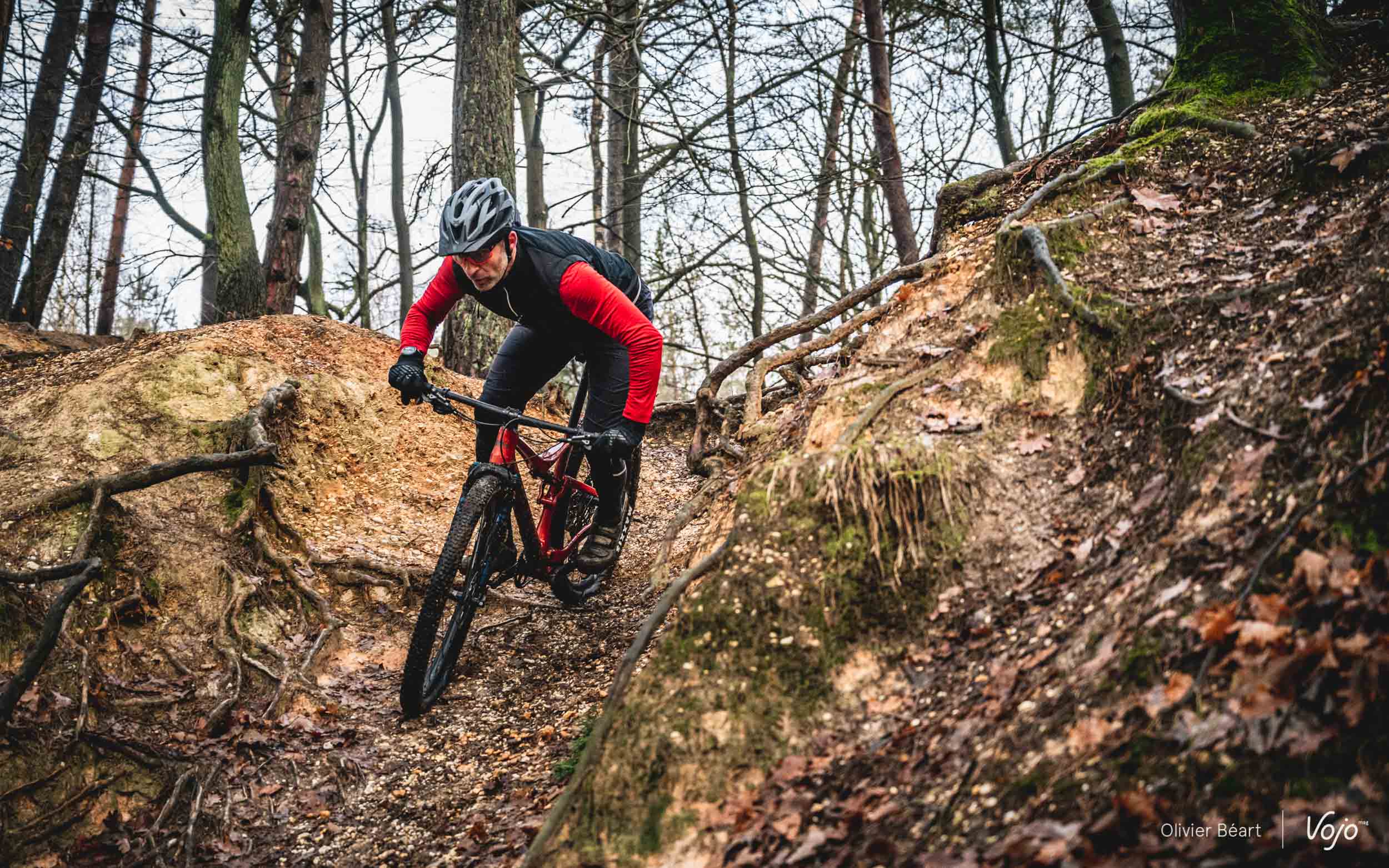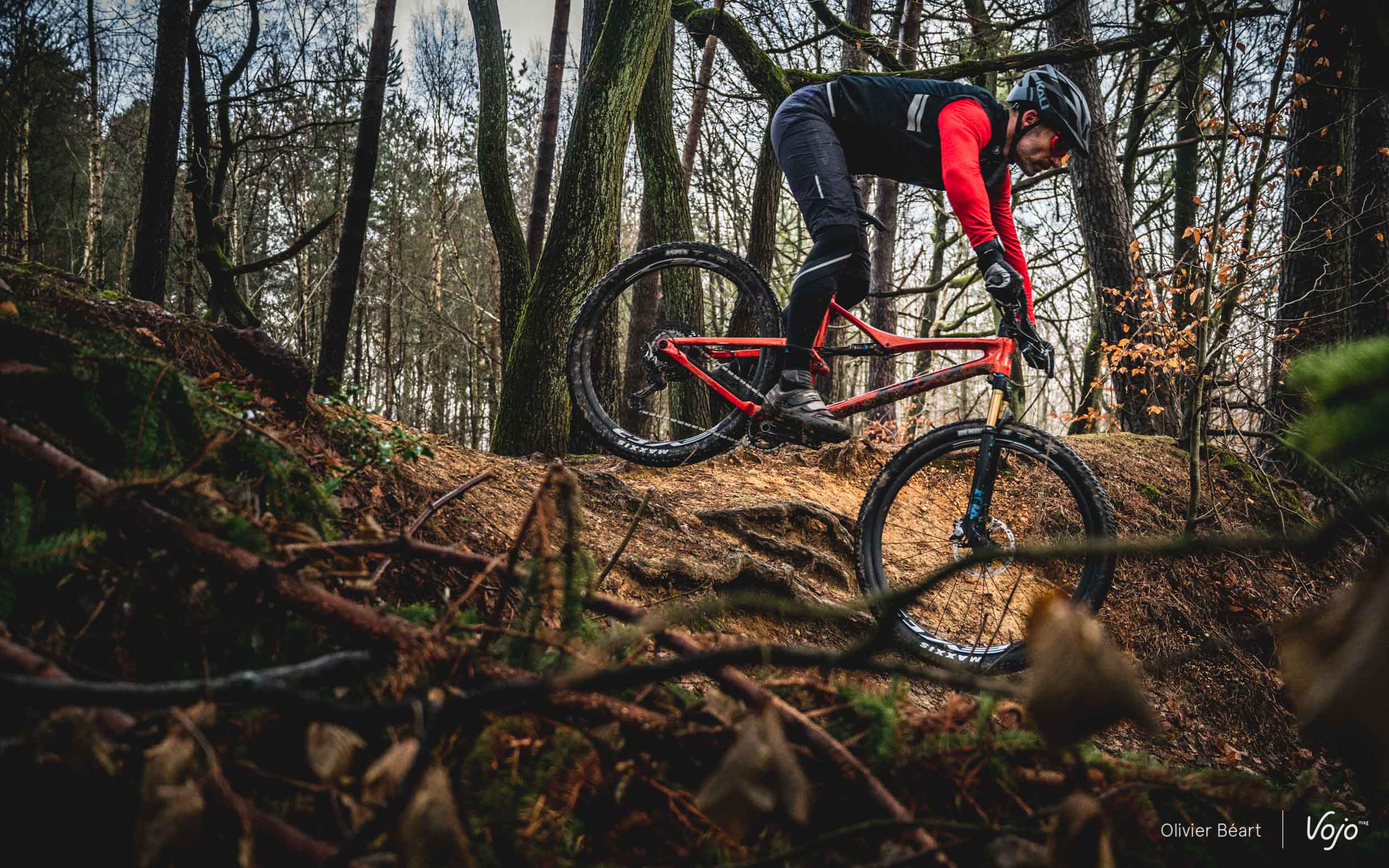 En 2.25 avec un peu plus de crampons, on aborde les mêmes passages avec beaucoup plus de sérénité. Alors oui, sur un parcours de coupe du monde très cassant et sec, les jantes de 30mm et les pneus en 2.4 sont peut-être pertinents. Mais pour un usage amateur, toute l’année, sur des terrains variés, le 2.25″ sur jante de 25mm de large nous semble un choix bien plus judicieux.