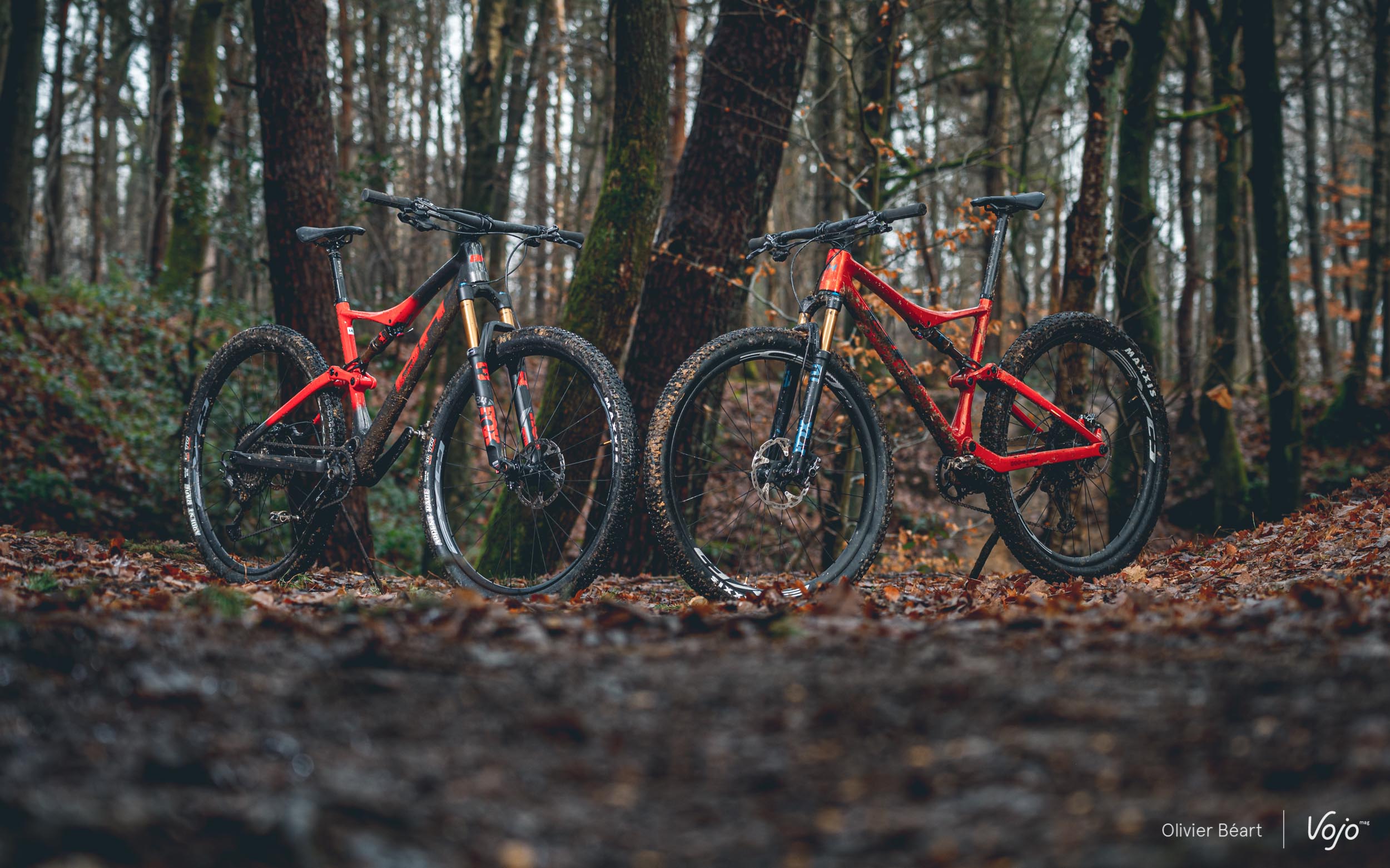 Pour 2021, après avoir renouvelé sa gamme semi-rigide et alors que de nombreux constructeurs ont entièrement renouvelé leur gamme de XC les deux dernières saisons, BH se replace dans la course en présentant une plateforme qui change à la fois peu sur certains aspects, mais beaucoup plus sur d’autres. Et qui se décline désormais en deux débattements différents pour séduire un plus large public, allant des purs compétiteurs XC/marathon jusqu’à des bikers à la recherche de plus de confort, de polyvalence et d’aisance sur des terrains très techniques. Pour cet essai, à gauche, en rouge et gris, on retrouve donc la version LT en 120mm, et à droite le XC en 100mm.