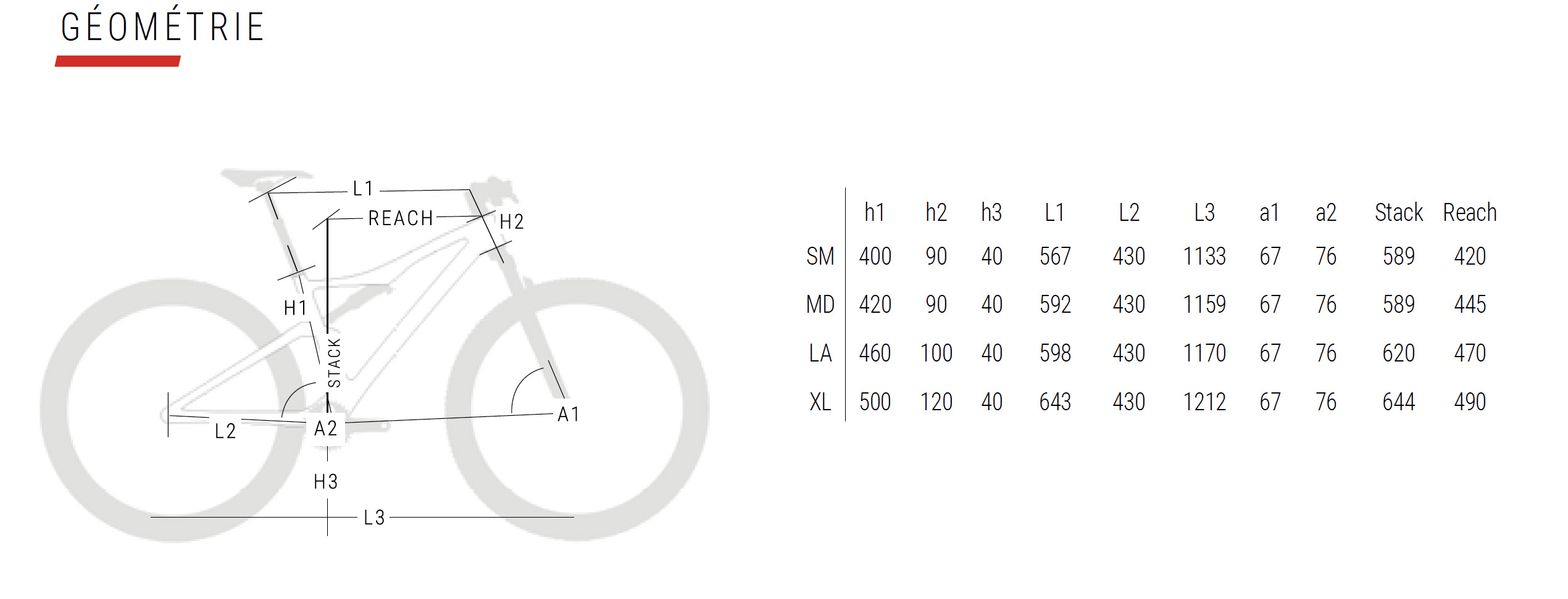 Le passage à 120 mm de débattement “par défaut” a également permis de mettre à jour la géométrie du vélo. Vis-à-vis de l’ancien Lynx Race LT, cette version 2023 voit son angle de direction perdre 0,5° pour se fixer à 67°, son angle de tube de selle se redresser à 76° (au lieu de 74,5° à 75,5°) et le reach gagner 9 à 18 mm suivant la taille (445 mm en taille M). En revanche, les bases restent à 430 mm.