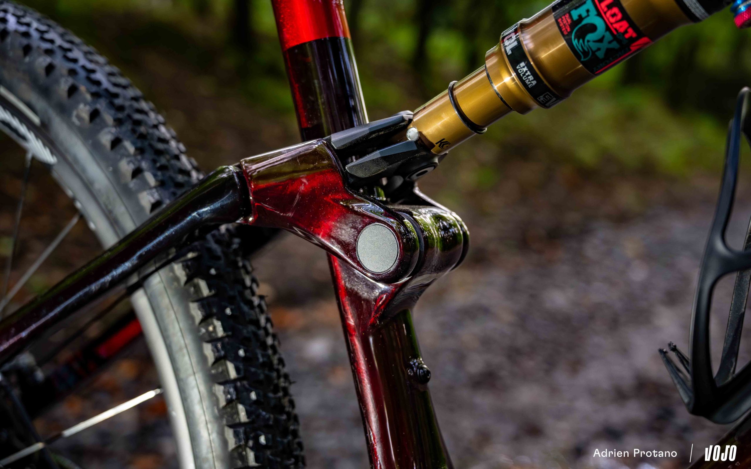 Petite évolution discrète mais utile (et très demandée par une série de pratiquants), ce nouveau cadre est en mesure d’accueillir deux porte-bidons. La marque est parvenue à cette solution sans trop déformer le tube diagonal, toujours très direct sur les vélos de la marque et véritable marqueur de son identité, grâce à ce petit adaptateur qui décale le porte-bidon afin d’éviter tout conflit avec la suspension. Note modèle de test n’en était pas équipé, mais le voici sur le modèle mis à disposition par la marque lors de notre prise en main en juin dernier.