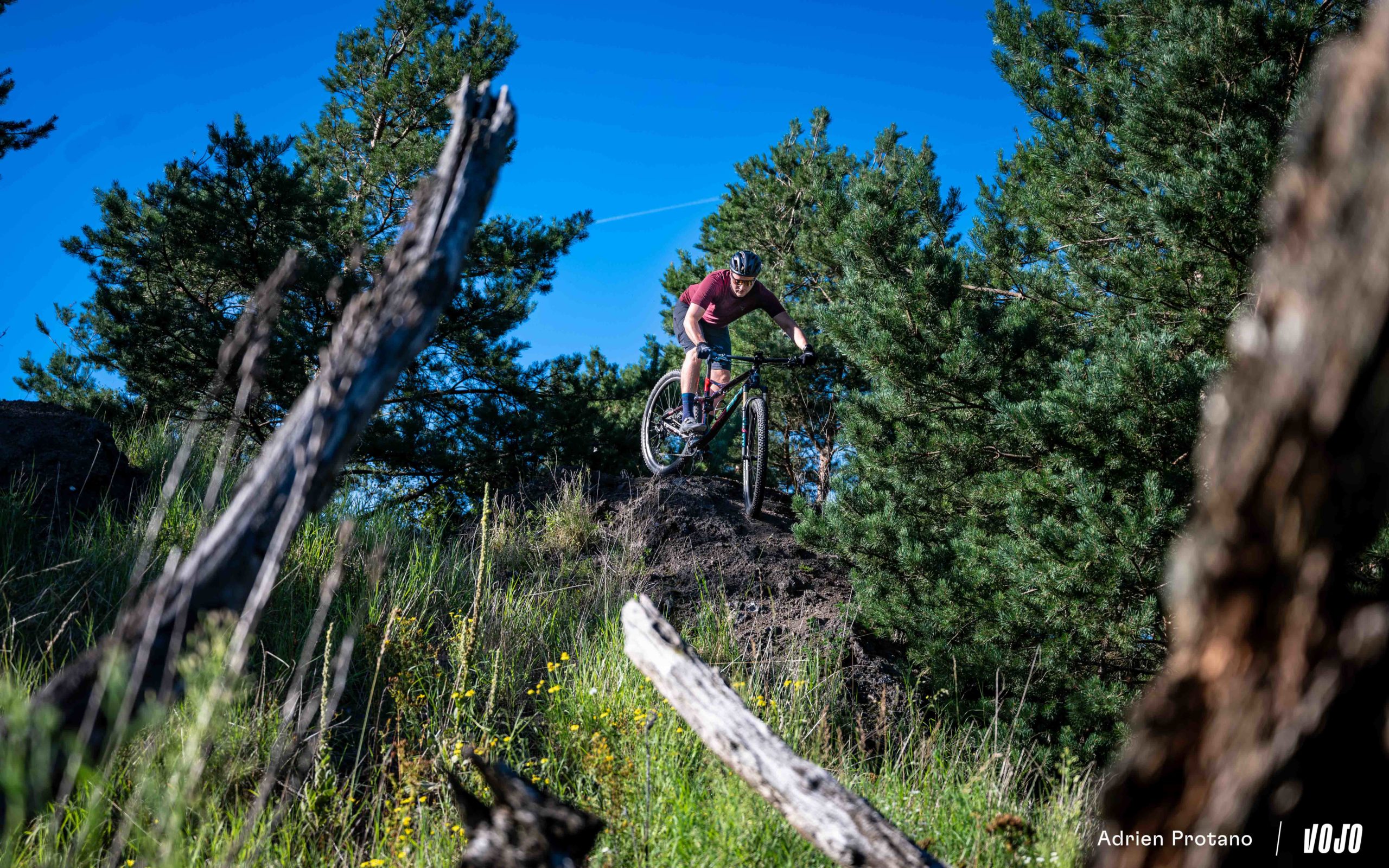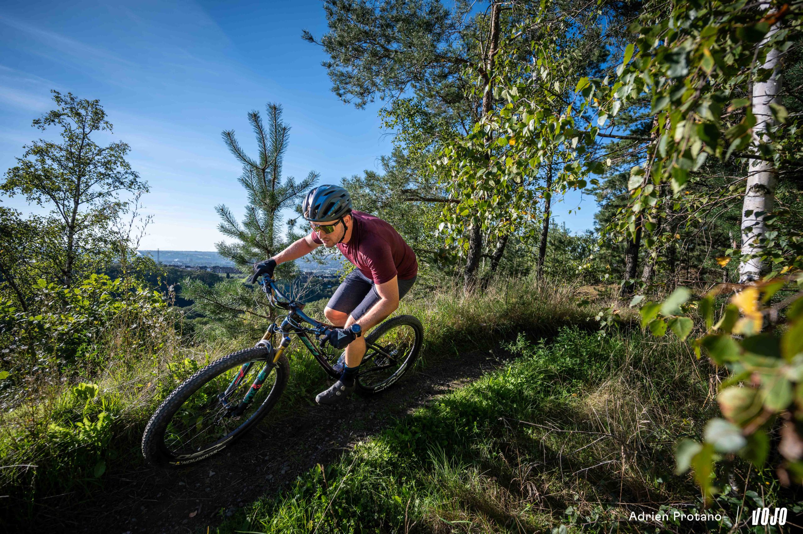 Son efficacité naturelle est telle qu’on se surprend même à préférer la position ouverte des suspensions plutôt que l’intermédiaire, dans des passages où d’habitude nous estimons régulièrement que les modèles de test manquent d’une telle position médiane. Les mouvements parasites sont suffisamment bien contrôlés pour qu’on ait l’impression de ne pas perdre trop d’énergie, et cette position ouverte permet de profiter du surcroît de confort et de grip par rapport à la position intermédiaire. C’est à vrai dire la philosophie inverse à celle d’un Scott Spark RC, pour ne citer que lui, où la position intermédiaire semble être la position « par défaut » et sur laquelle on passe en mode ouvert uniquement pour les descentes.