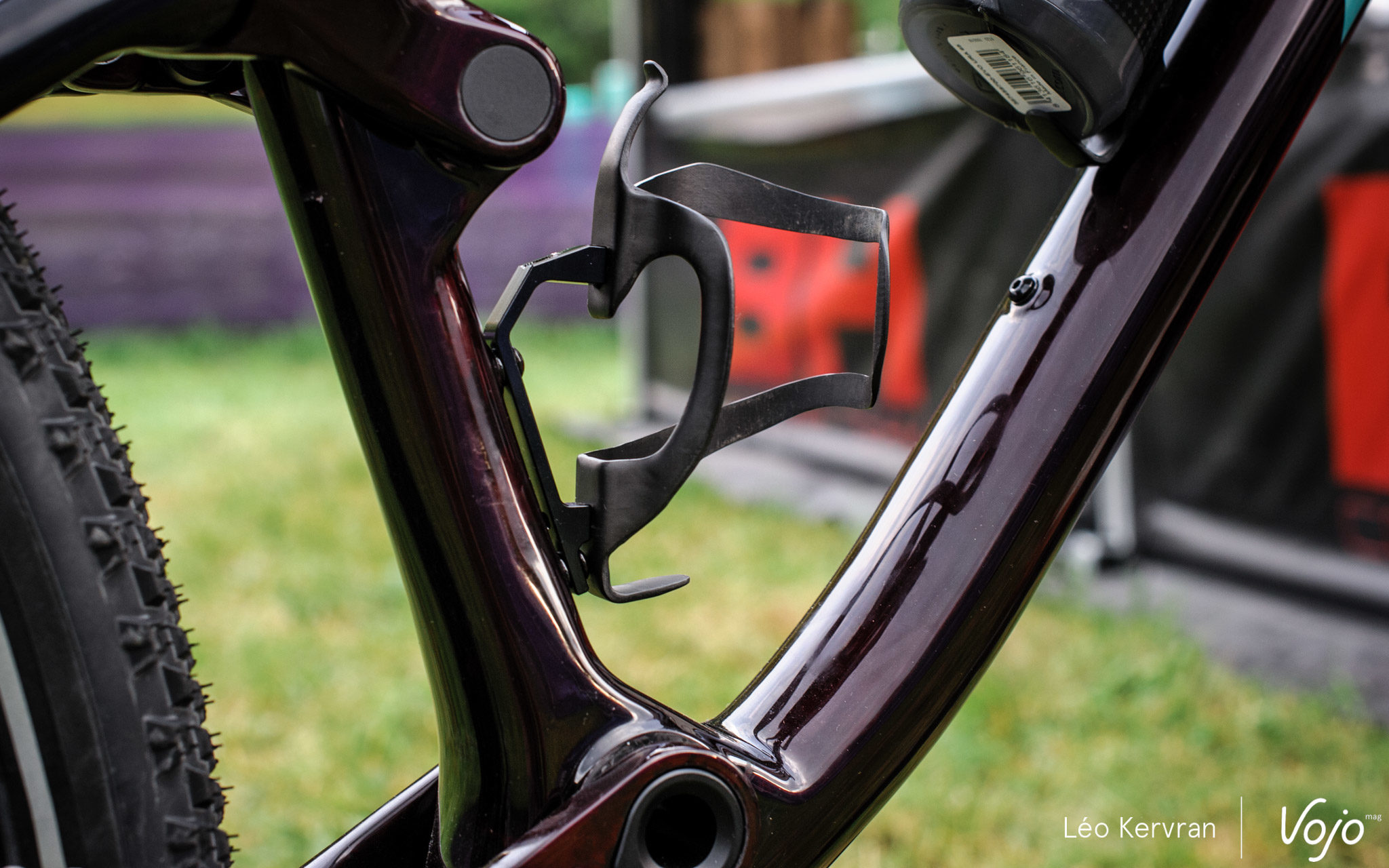 Petite évolution discrète mais utile (et très demandée par une série de pratiquants), ce nouveau cadre est en mesure d’accueillir deux porte-bidons. La marque est parvenue à cette solution sans trop déformer le tube diagonal, toujours très direct sur les vélos de la marque et véritable marqueur de son identité, grâce à ce petit adaptateur qui décale le porte-bidon afin d’éviter tout conflit avec la suspension. Note modèle de test n’en était pas équipé, mais le voici sur le modèle mis à disposition par la marque lors de notre prise en main en juin dernier.