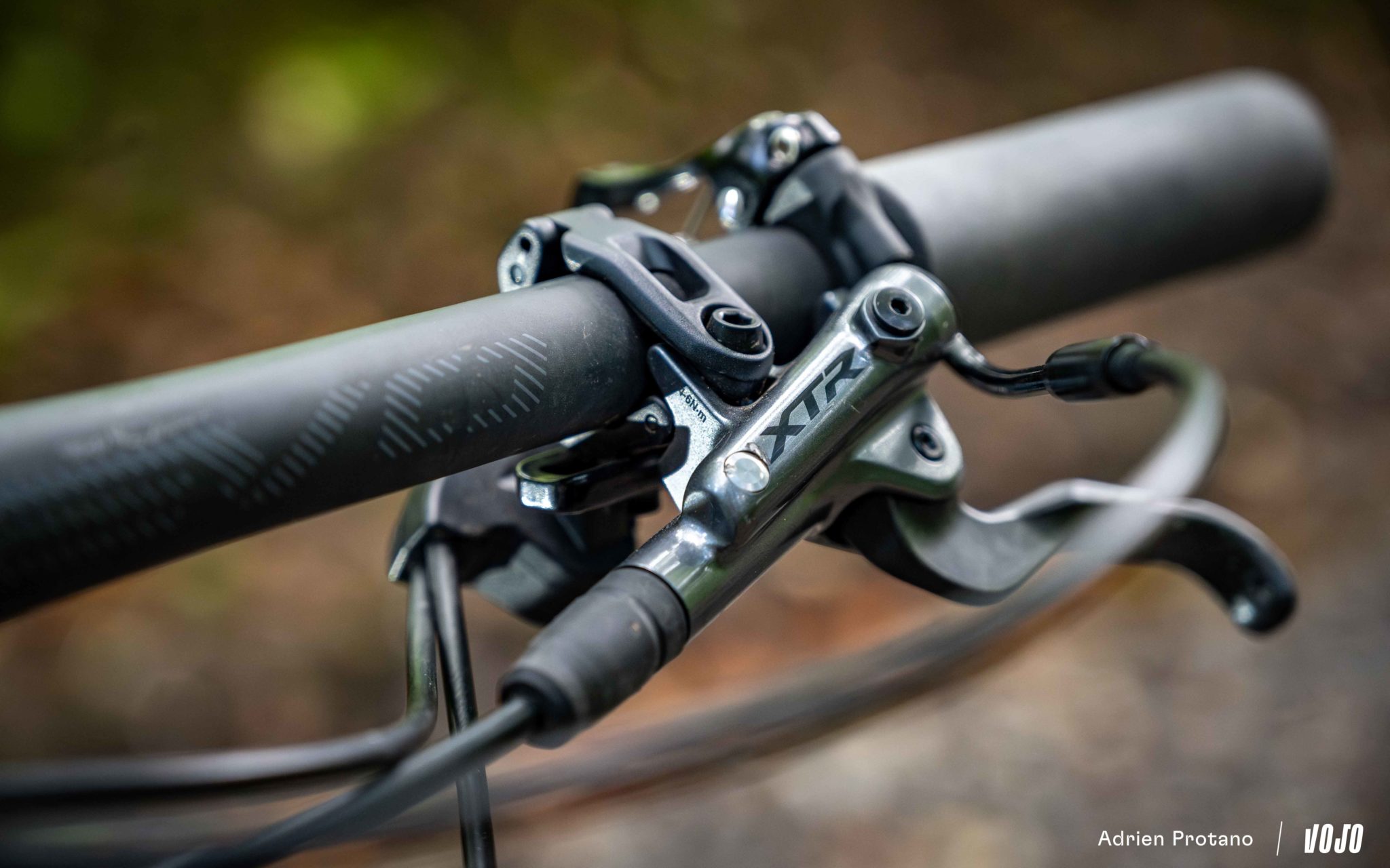 Côté freinage, on reste sur du Shimano XTR, avec un disque de 180 mm à l’avant et de 160 mm à l’arrière. Simple et efficace.