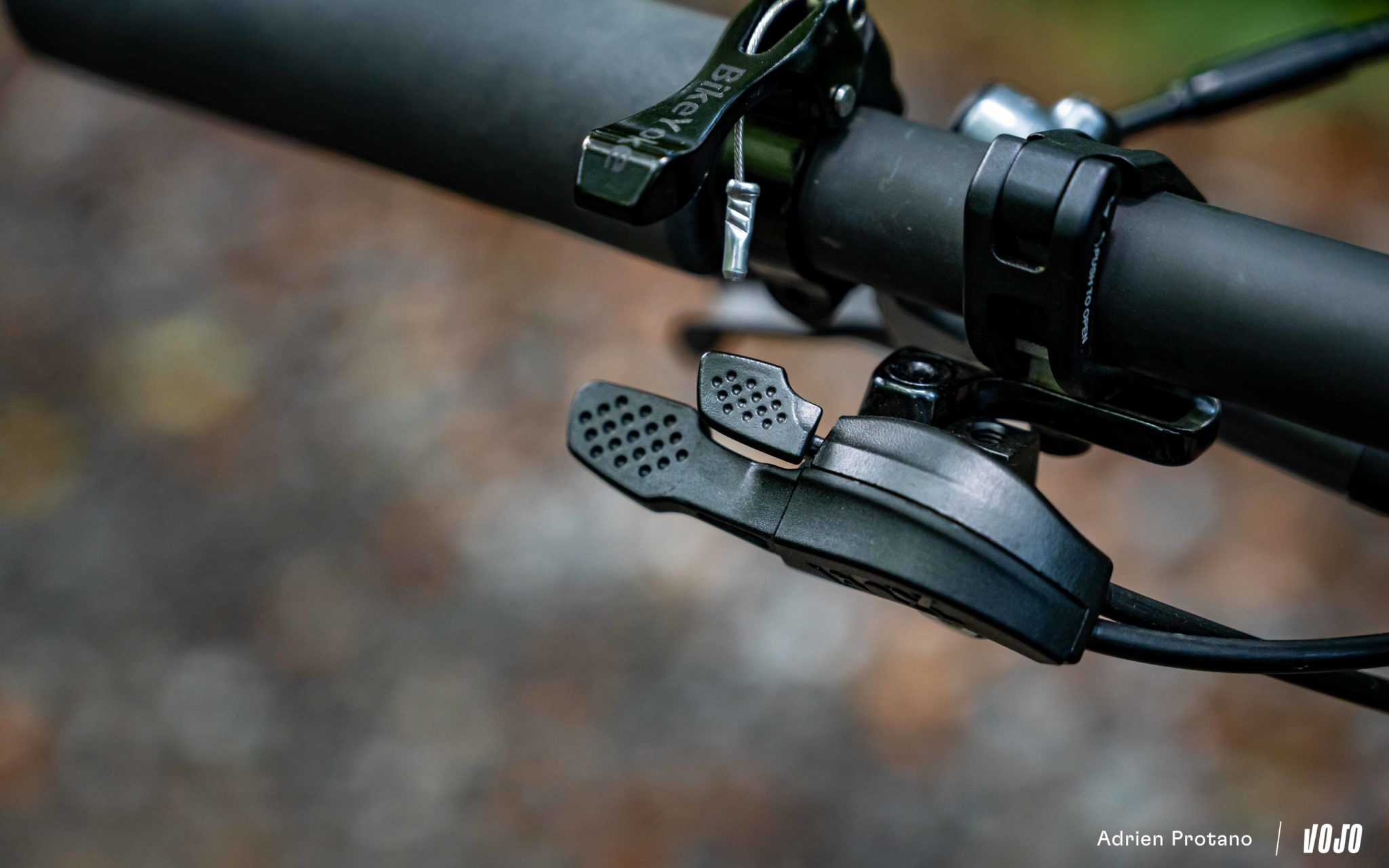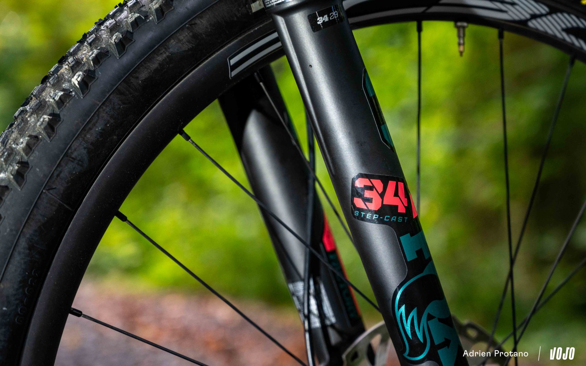 Sur notre version de test, c’est Fox qui est aux commandes du coté des suspensions, avec une fourche Fox Float 34 StepCast et un amortisseur Fox DPS Evol Factory. Grande nouveauté sur ce Lynx Race, une commande au guidon permet de choisir entre les 3 positions (ouvert, intermédiaire ou fermé), à l’image des nouvelles suspensions SID de chez Rockshox. Voilà une nouveauté qui est la bienvenue sur ce Lynx Race !