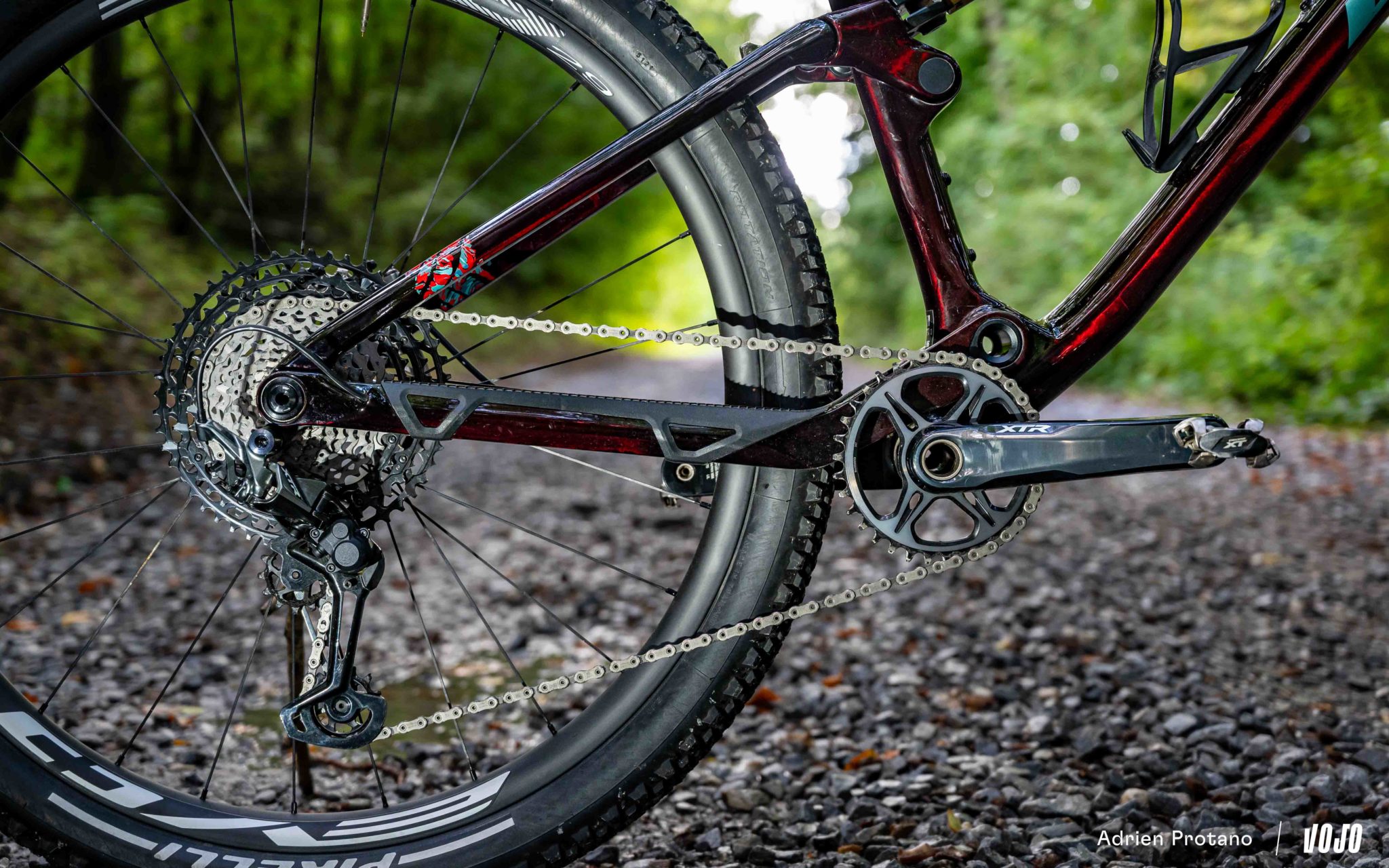 Un poids identique certes, mais avec une rigidité revue et améliorée ! Si celle-ci avait déjà été significativement retravaillée sur la précédente génération, elle demeurait toutefois encore insuffisante pour les athlètes du team dans certaines circonstances, et particulièrement au niveau du triangle arrière. Il faut dire que les circuits de coupe du monde sont également toujours de plus en plus techniques et entraînent davantage de contraintes sur le matériel.
