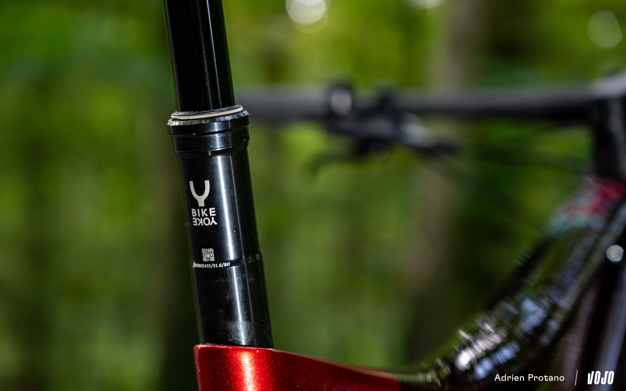 Le poste de pilotage est également maison avec une potence de 60 mm de long et un cintre carbone de 760 mm de large et 10 mm de rise. Notre BH Lynx Race 9.5 en version LT était équipé en option d’une très utile et toujours très agréable tige de selle télescopique Bike Yoke Divine de 80 mm de débattement, tandis que la selle est une Prologo Scratch M5.