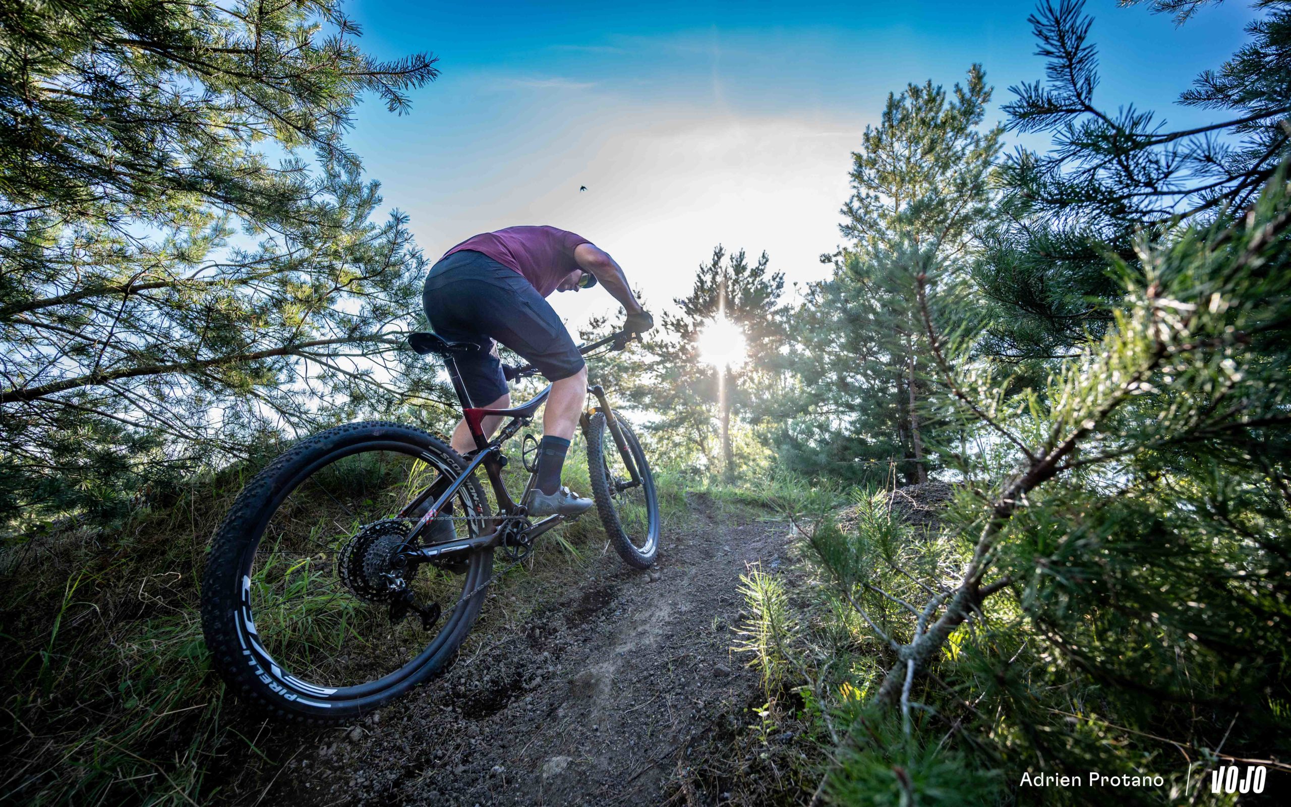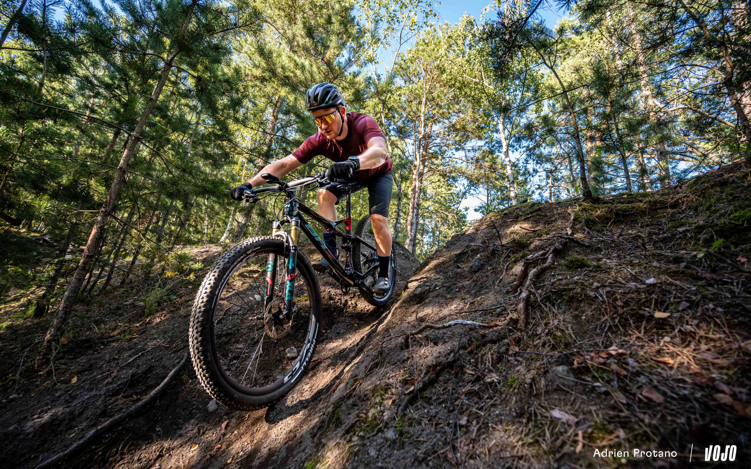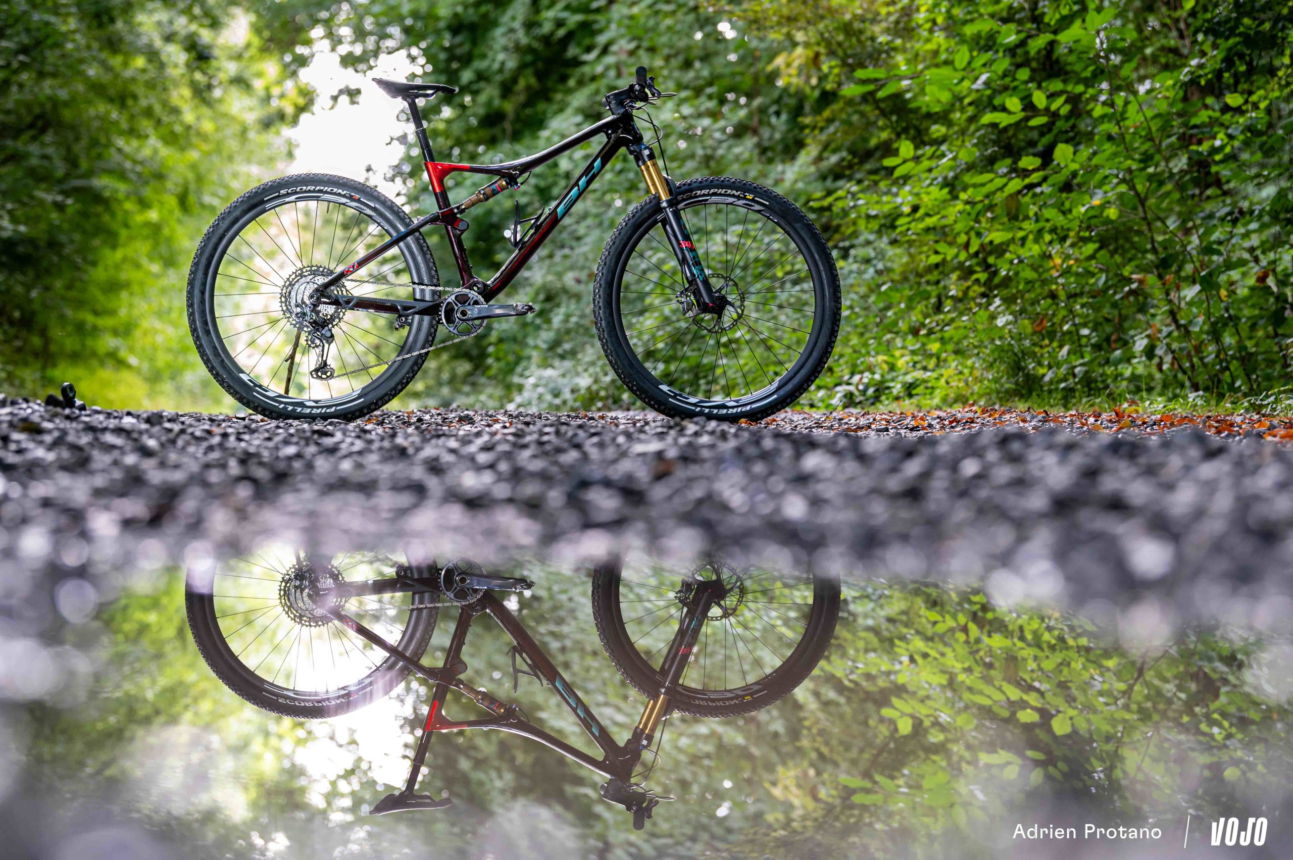 Son efficacité naturelle est telle qu’on se surprend même à préférer la position ouverte des suspensions plutôt que l’intermédiaire, dans des passages où d’habitude nous estimons régulièrement que les modèles de test manquent d’une telle position médiane. Les mouvements parasites sont suffisamment bien contrôlés pour qu’on ait l’impression de ne pas perdre trop d’énergie, et cette position ouverte permet de profiter du surcroît de confort et de grip par rapport à la position intermédiaire. C’est à vrai dire la philosophie inverse à celle d’un Scott Spark RC, pour ne citer que lui, où la position intermédiaire semble être la position « par défaut » et sur laquelle on passe en mode ouvert uniquement pour les descentes.