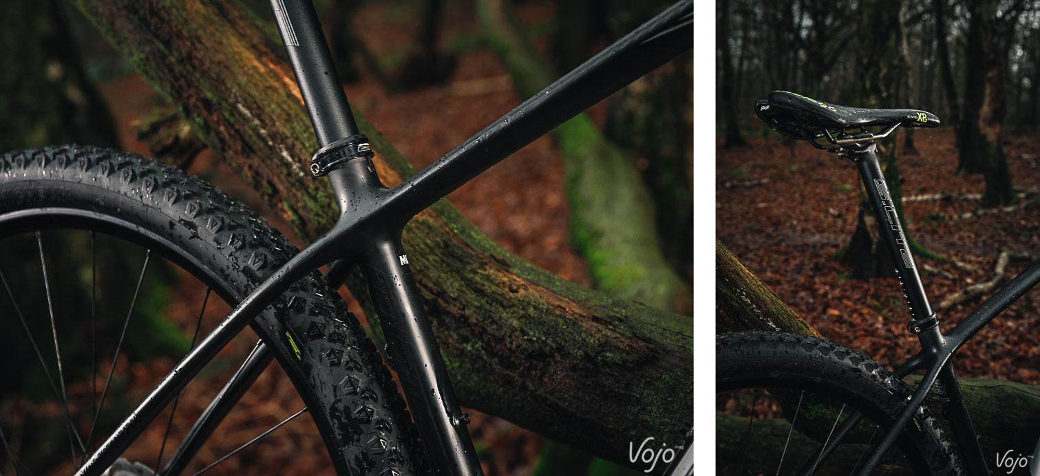 Ce cocktail, nous y avions déjà goûté lors de notre prise en mains du dernier BH Lynx 4.8, un « petit vélo » qui, du haut de ses 120mm de débattement, vous explose entre les jambes au pédalage, tout en étant capable d’en remontrer à bien des enduros quand on le met au défi dans le pentu. Ici, avec le nouveau BH Ultimate 29 », point de suspension arrière à féliciter. Juste un hardtail carbone 29″ de XC comme il y en a plein sur le marché. Mais, chers lecteurs, quel hardtail ! Avant de voir concrètement sur le terrain pourquoi on a encore les poils qui se dressent en écrivant cet article, expliquons de quoi la bête est faite.