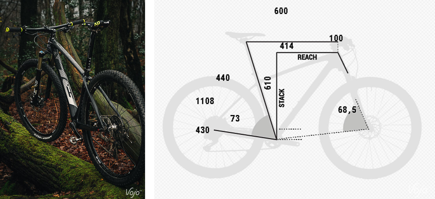 On n’a pas fait durer le suspense et on vous a lâché le morceau dès le titre, LA qualité marquante de ce BH, c’est sa géométrie. Comme toujours chez Vojo, le vélo a été testé longuement par trois personnes différentes, dont votre serviteur. Et les trois comptes-rendus écrits, non concertés, commencent tous par les mêmes mots : « géométrie géniale » ! En clair, le BH Ultimate est, pour nous, le premier XC qui va aussi loin dans la démarche, avec des cotes qui sentent bon le vélo de trail, voire même d’un petit enduro. Et ça marche !