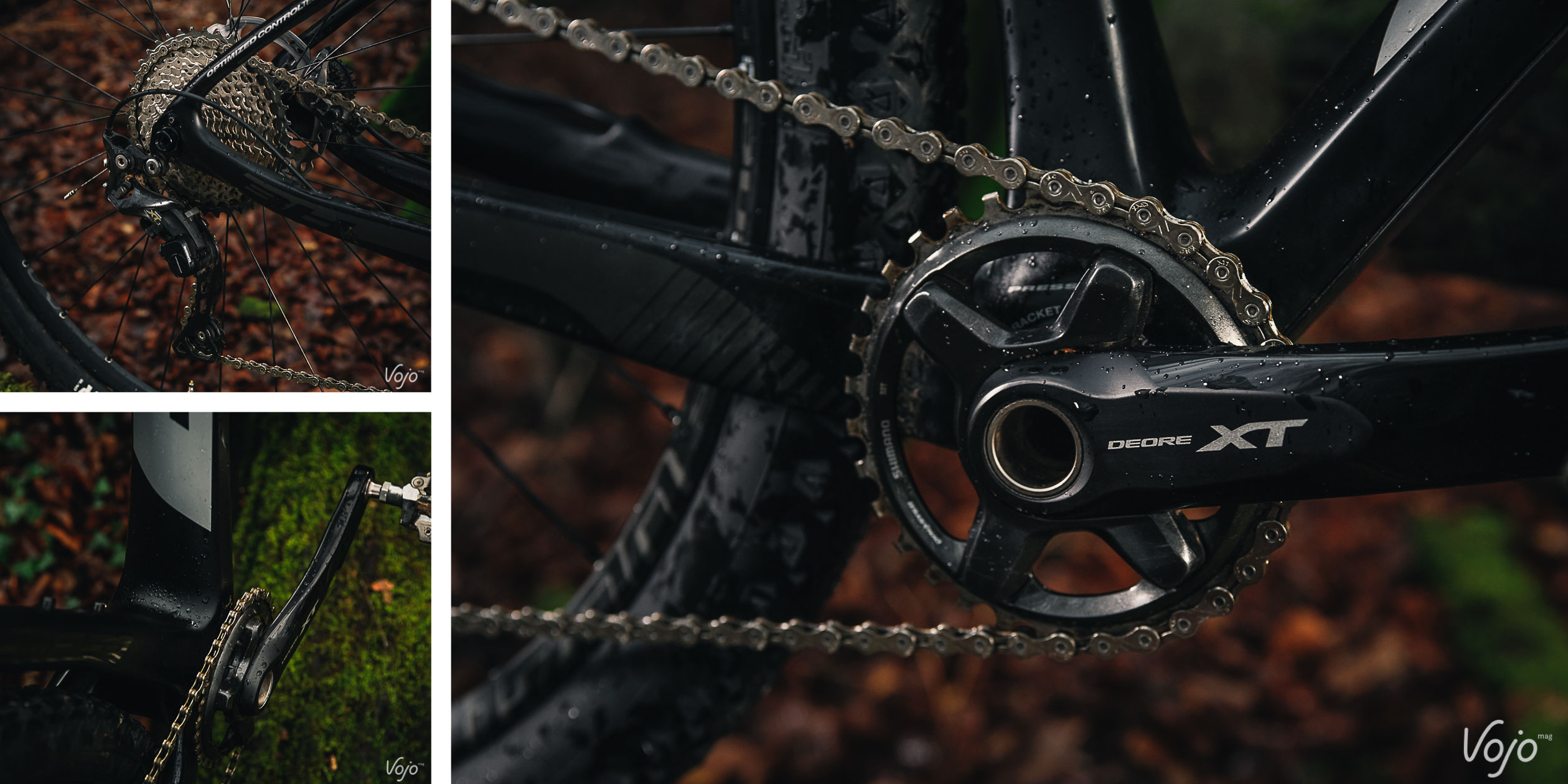 Il y a tout d’abord les développement, pour lesquels on peut regretter le choix de BH d’avoir mis une cassette en 11/40, bien trop dure à emmener dans de nombreuses situations et dont l’amplitude est vraiment trop réduite. Il y a une 11/42 au catalogue, c’est dommage de ne pas l’avoir choisie. Mais le souci principal vient, selon nous, du pédalier dont la ligne de chaîne empêche de croiser confortablement, sans bruits et sans mini sauts de chaîne. Ensuite, les dents hautes du Shimano XT ne retiennent pas aussi bien la chaîne que les « Narrow-Wide » de Sram et nous avons rencontré plusieurs déraillements et autres chain-suck. On nous répondra peut-être que c’est à cause de la chaîne KMC, mais nous connaissons la qualité des produits de la marque et nous avons quelques doutes que cela puisse provenir de là.