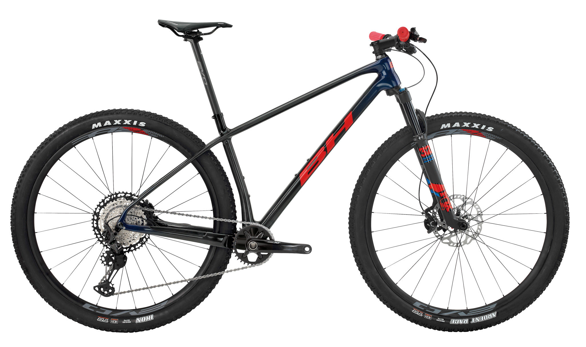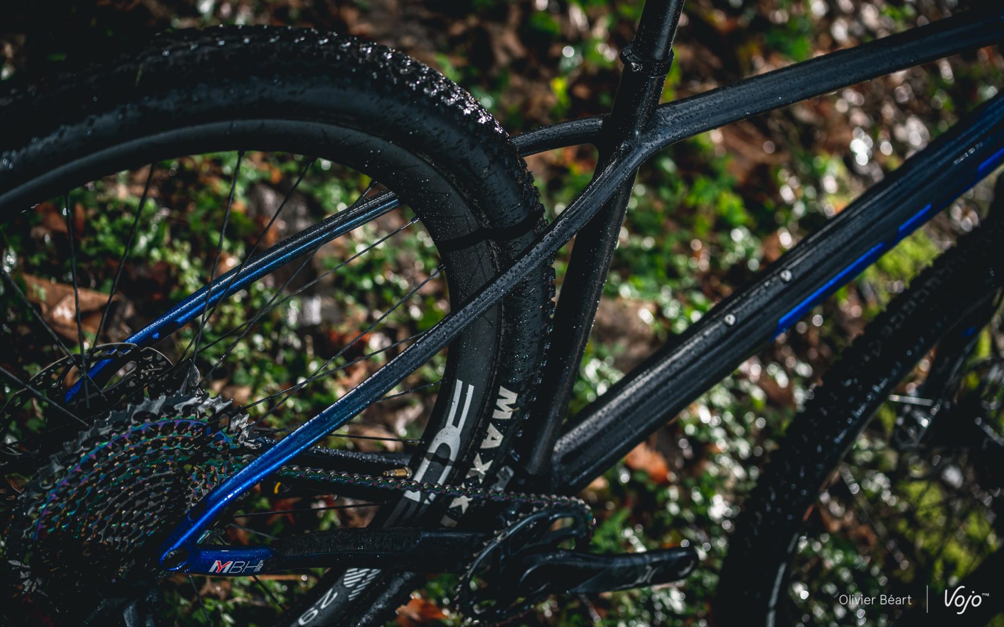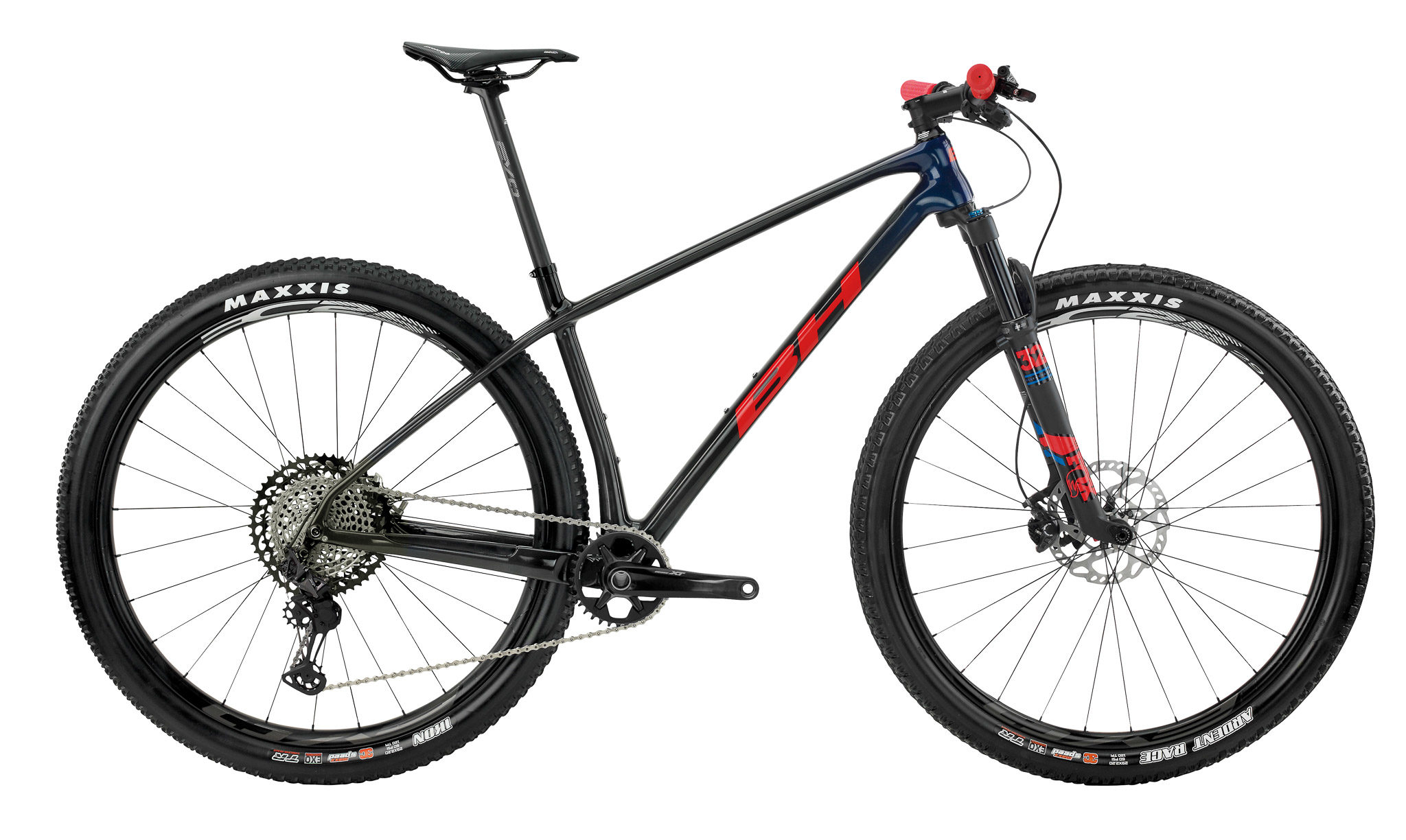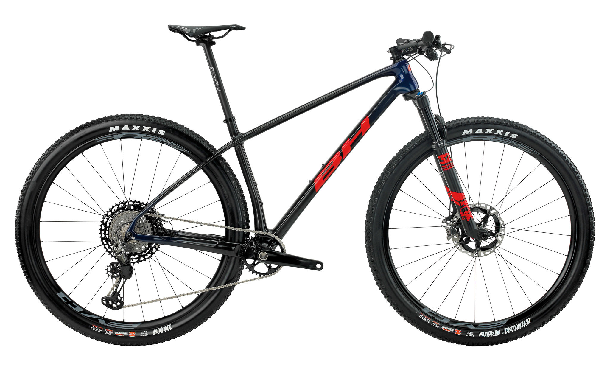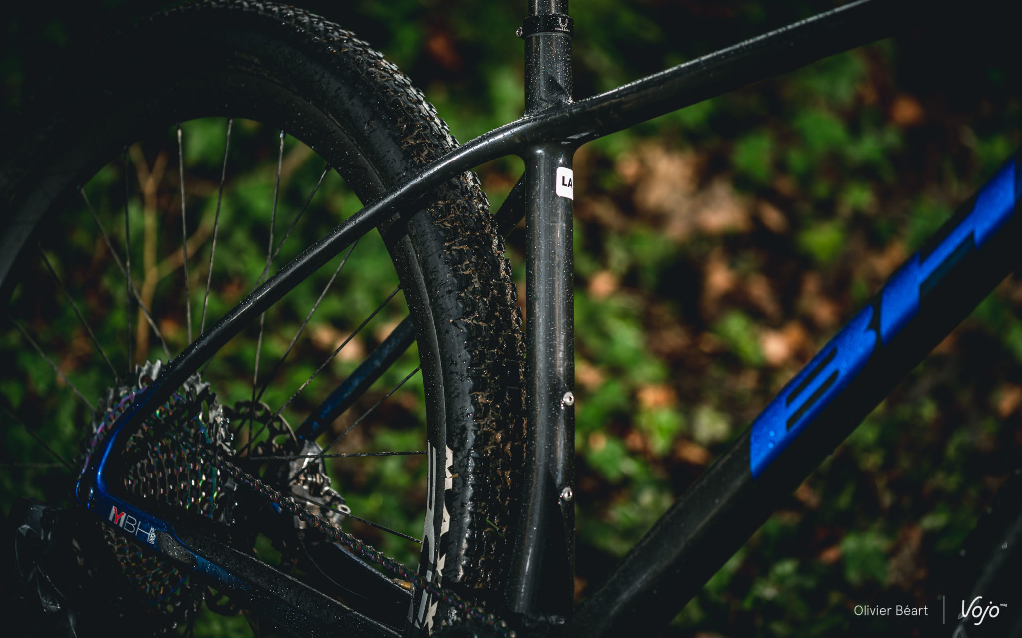 Les roues sont maison, avec des BH Evo Carbon. Ne vous fiez pas aux apparences, elles ont beaucoup évolué depuis leur première version que nous avions fortement critiquée lors de notre test du BH Lynx Race. Le profil reste haut et elles manquent toujours un peu de raffinement (voir plus bas dans la partie test terrain), mais elles se sont allégées (BH annonce 1450g la paire) et leur jante de 25mm de largeur interne permet de profiter au mieux des pneus Maxxis Ikon (arrière) et Ardent Race (avant) en 2.25.