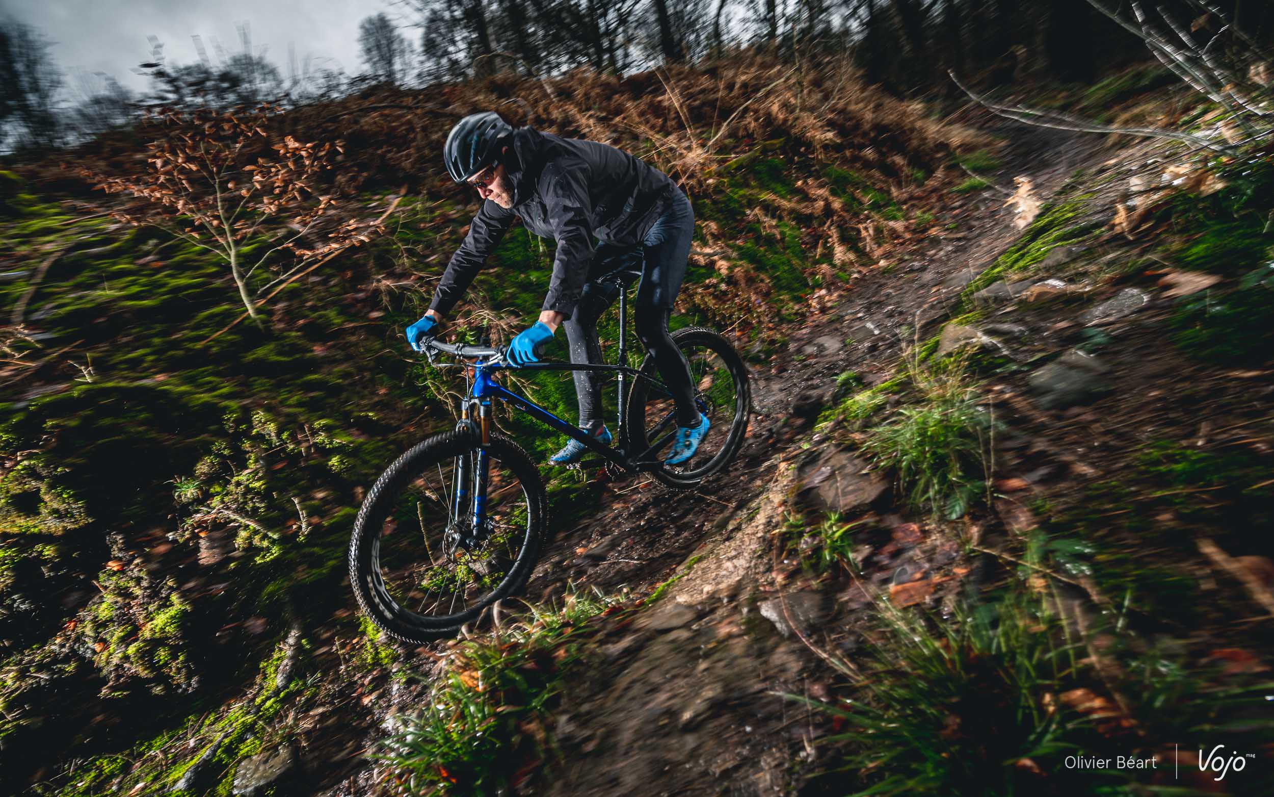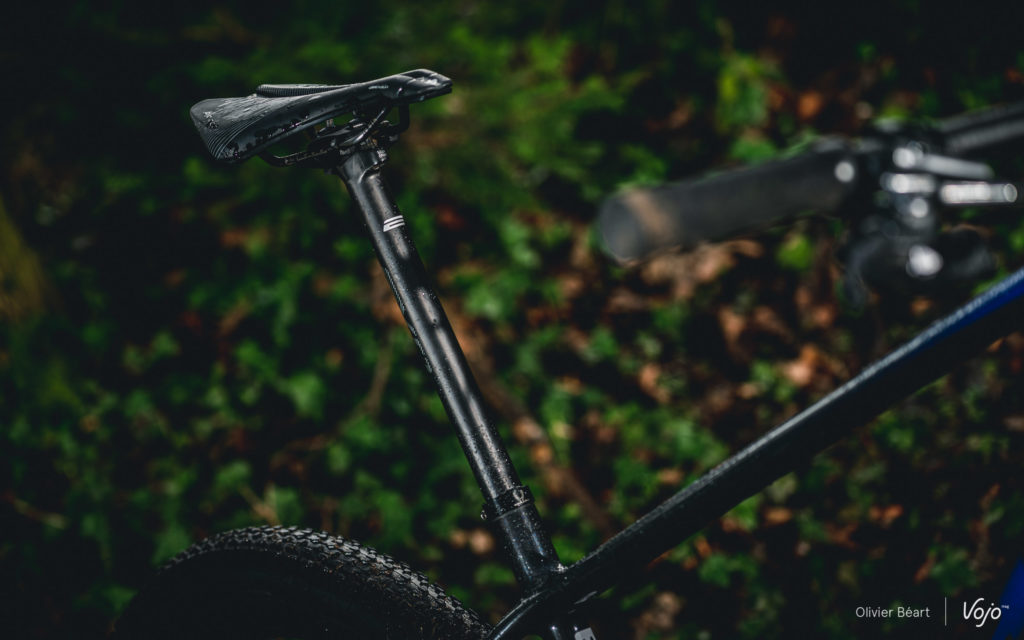 Assis sur la selle, quand on aborde des passages jonchés de racines, pierres ou autres petits obstacles, c’est clairement un des semi-rigides les plus confortables et tolérants qu’il nous ait été donné d’essayer. Bien sûr, ce n’est pas au niveau d’un tout-suspendu, mais il y a une réelle filtration qui permet de garder une bonne accroche. En montée aussi, on sent que le grip est facile à aller chercher et que, même à basse vitesse, pour un hardtail, il n’a que très peu tendance à buter sur les obstacles.