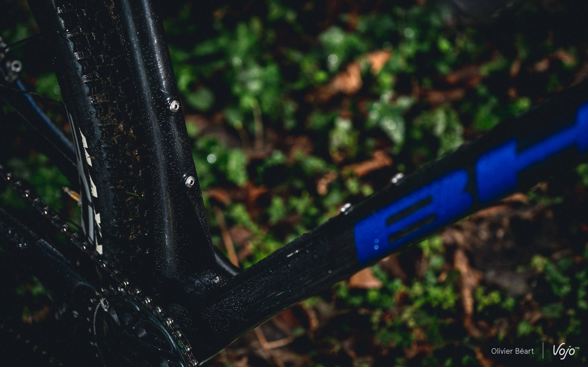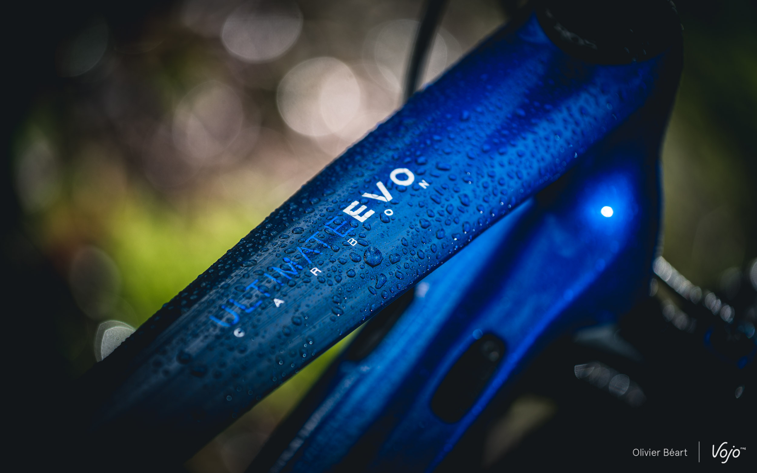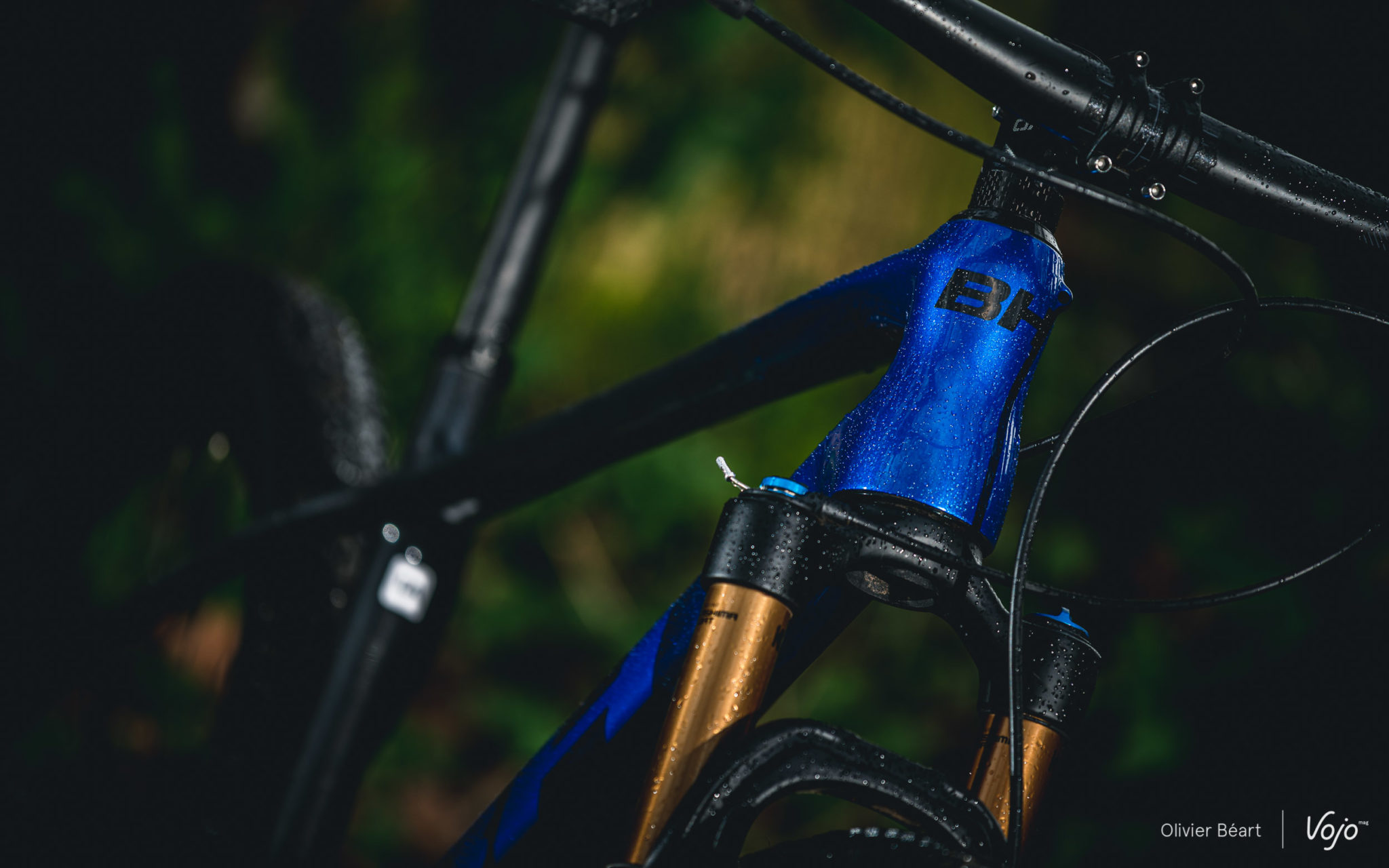 Afin de mettre en avant la possibilité de personnaliser son cadre désormais offerte par la marque, BH a peint une série de cadres exclusifs à destination des différents médias auxquels des vélos de test ont été envoyés. Il s’agit d’une option à 300€, et c’est la raison pour laquelle le vélo que vous voyez sur nos photos n’a pas les mêmes coloris que la version au catalogue. Pour notre essai, nous avons hérité d’un Ultimate Evo à la magnifique robe noire et bleu métal. La finition est superbe et la peinture à la fois brillante et profonde. La peinture de série est de même nature au niveau de sa composition, et donc de même qualité.