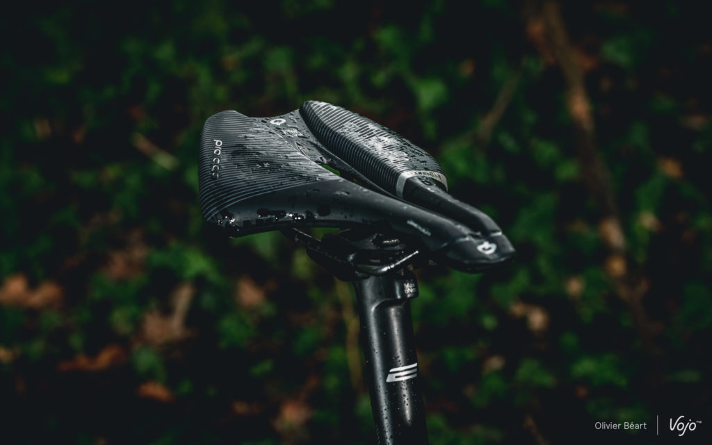 Enfin, les accessoires (cintre, potence et tige de selle) sont signés Evo également (la marque maison). Ils sont de belle facture et plutôt légers. Seuls les grips, fort durs, ne nous ont pas vraiment séduits. Par contre, nous avons adoré la selle Prologo dont le profil large et court n’est pas sans rappeler la Specialized Power, une de nos assises préférées pour un usage longues distances.