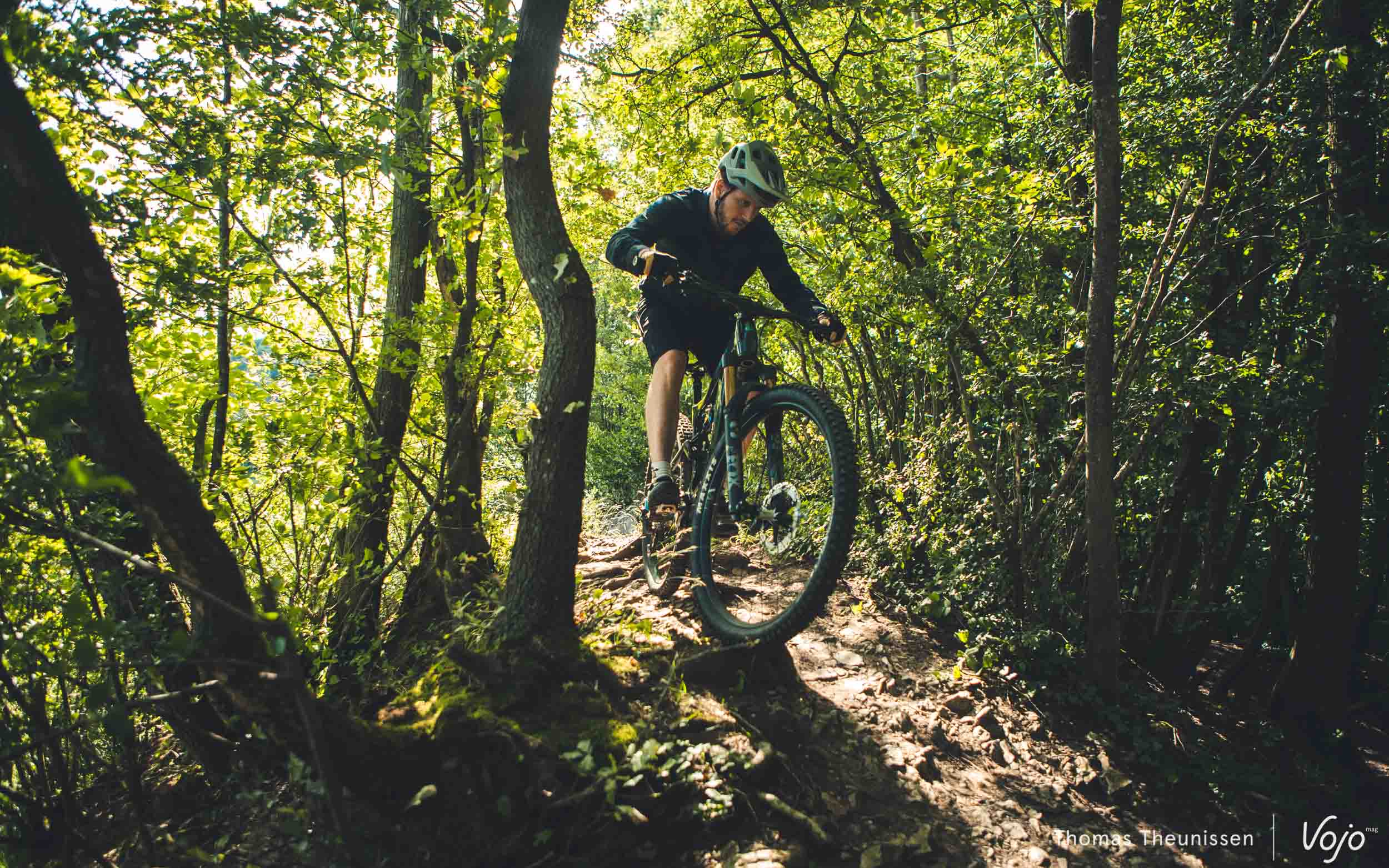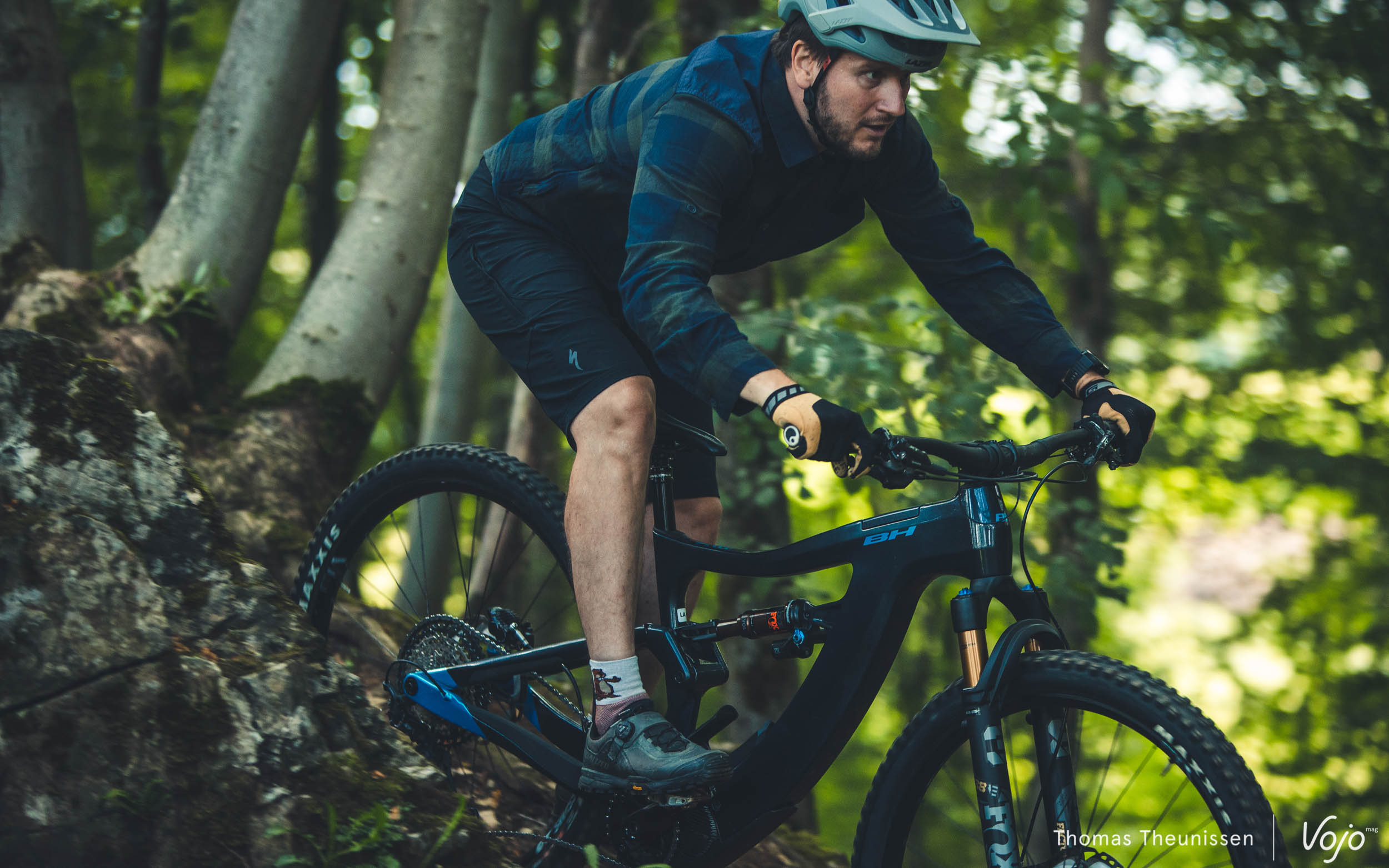 La position au guidon est très confortable et équilibrée. BH n’a pas fait de folies sur la géométrie, mais on est par contre sur un vélo sur lequel on se sent tout de suite bien dès les premiers tours de roues de découverte. La selle est confortable et les grips Ergon permettent aussi d’emblée de disposer de points d’appui agréables. Quant au réglage de la suspension arrière, 25% de Sag, un petit réglage du rebond et il n’en faut pas plus pour disposer directement d’un comportement tout à fait cohérent.