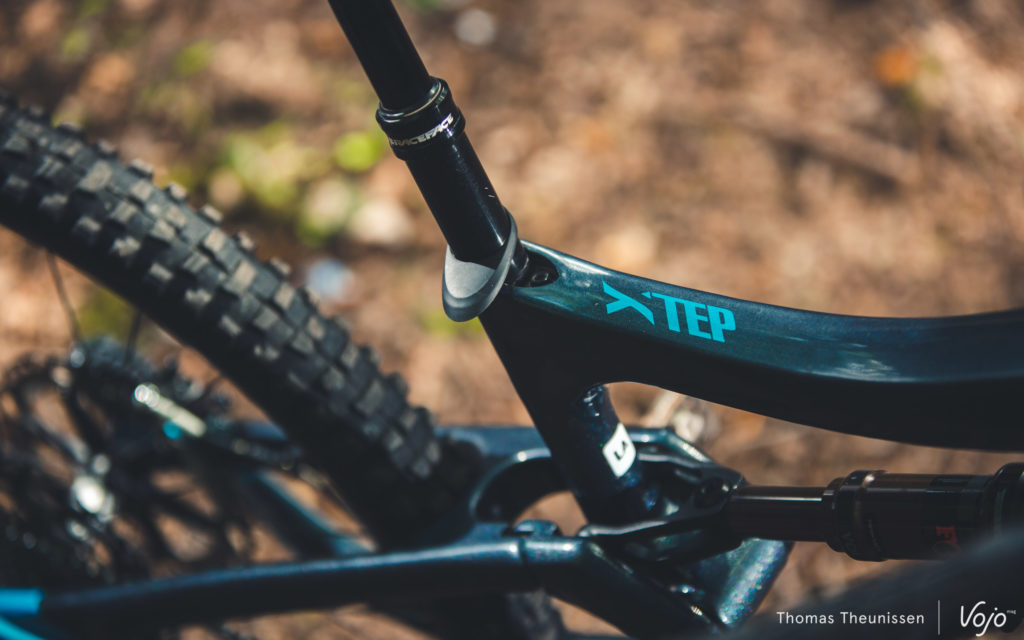 A l’avant, nous avons roulé une partie du test avec une Fox 38 et une autre avec une 36 suite à une défaillance de la 38 au niveau de la cartouche (une première en ce qui nous concerne). Nous l’avions déjà dit dans notre test, la 38 est une fourche exigeante, et sur le XTep, même en version 160mm de débattement, la 36 nous a paru plus homogène, plus en rapport avec ce châssis polyvalent. Un poil moins haute, un peu moins rigide aussi, la 36 nous a donné l’impression de travailler plus en symbiose avec le châssis, alors que la 38 faisait un peu « too much ». Sauf si vous être très costaud physiquement et/ou techniquement et si vous roulez dans une région avec du très gros dénivelé, privilégiez un montage équipé de la 36. Par contre, si nous n’avons pas testé la version en 140mm, nous pouvons clairement dire que nous ne nous sommes jamais sentis handicapés par les 160mm de débattement, y compris sur des sorties plus roulantes et moins exigeantes. L’adage « qui peut le plus peut le moins » semble se vérifier dans ce cas.