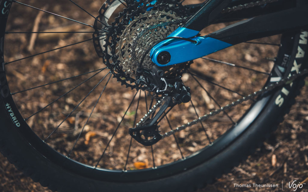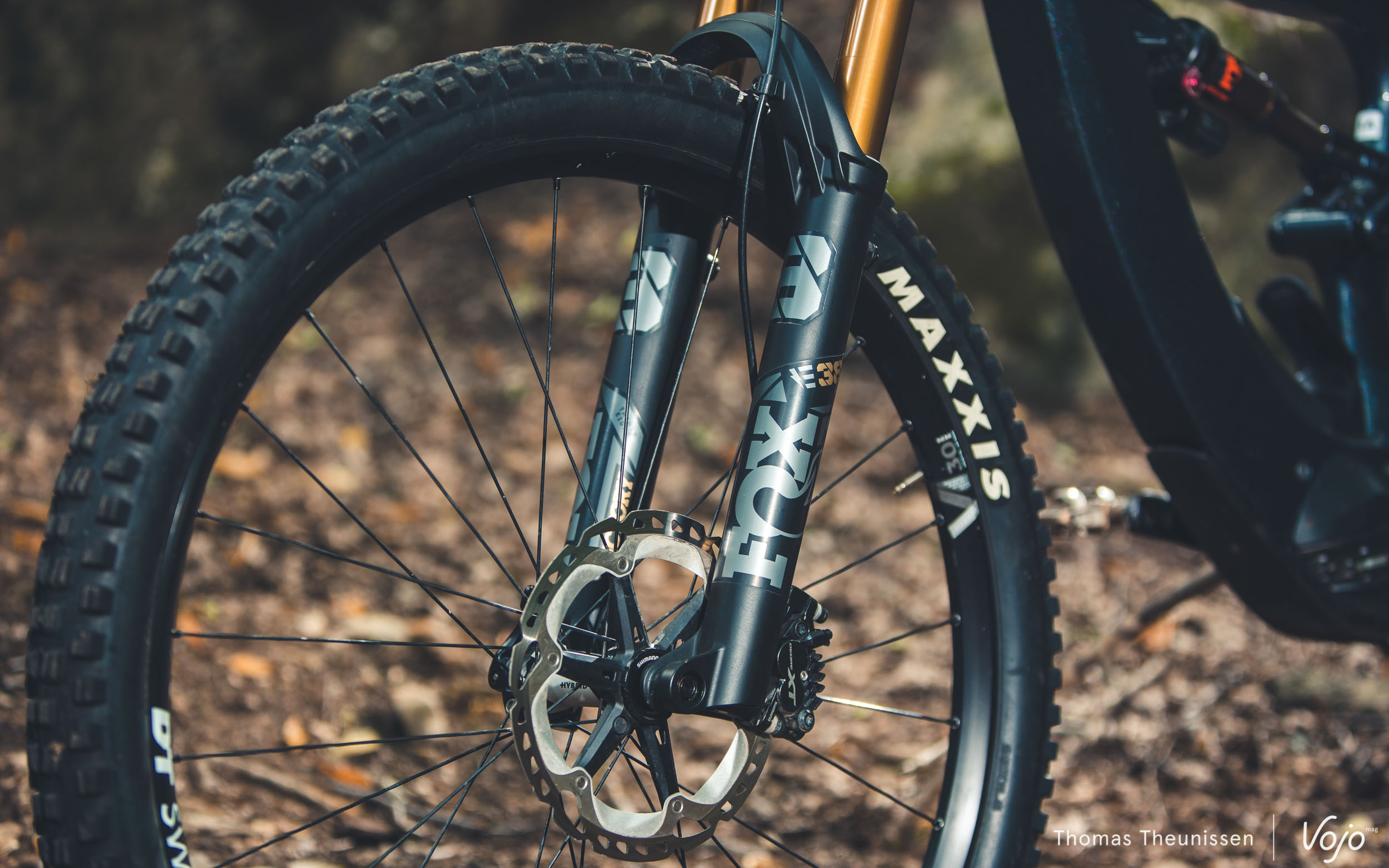 Du côté de la fourche, on va retrouver la Fox 34 en 140mm de débattement sur le premier modèle trail et la 36 toujours en 140mm de débattement sur le montage plus haut de gamme. Quant à la version plus « grosse », elle est équipée soit de la Fox 36, soit de la 38 pour le 9.9 destiné à un usage plus engagé. Sur notre modèle d’essai, c’est la Fox 38 qui était montée de série, mais suite à un petit souci de cette dernière, nous l’avons remplacée pour une partie de l’essai par une Fox 36, toujours en 160mm de débattement. Nous verrons dans la partie test terrain l’influence que ce changement de fourche a pu avoir sur le comportement.