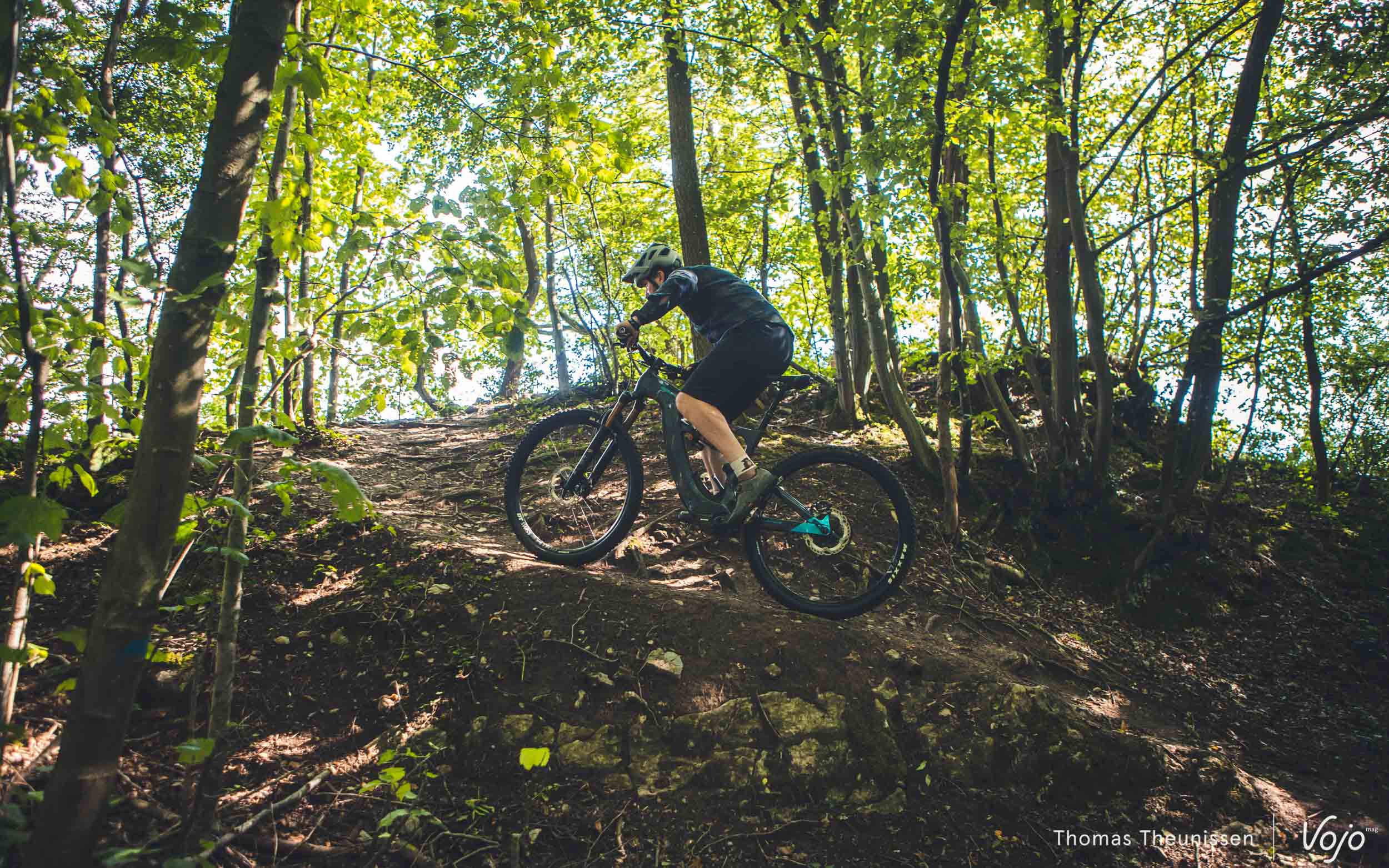 L’autonomie est aussi un des grands points fort du moteur Shimano EP8, dont la consommation est très raisonnable. Alors quand on le couple à une grosse batterie de 720Wh, le résultat est détonnant ! On peut les yeux fermer faire des sorties de 60, voire 70km avec 1800 à 2000m de d+ en roulant la plupart du temps en mode intermédiaire. Sur beaucoup de nos sorties d’environ 2h pour 30/35km et 1000m de d+, il nous est arrivé de rentrer avec encore la moitié de batterie, ce qui nous a fait penser qu’une version « light » de ce modèle avec une batterie de 500Wh ne serait pas une ineptie. Avec un bon kilo en moins, le comportement déjà excellent du vélo serait très probablement encore plus agréable.