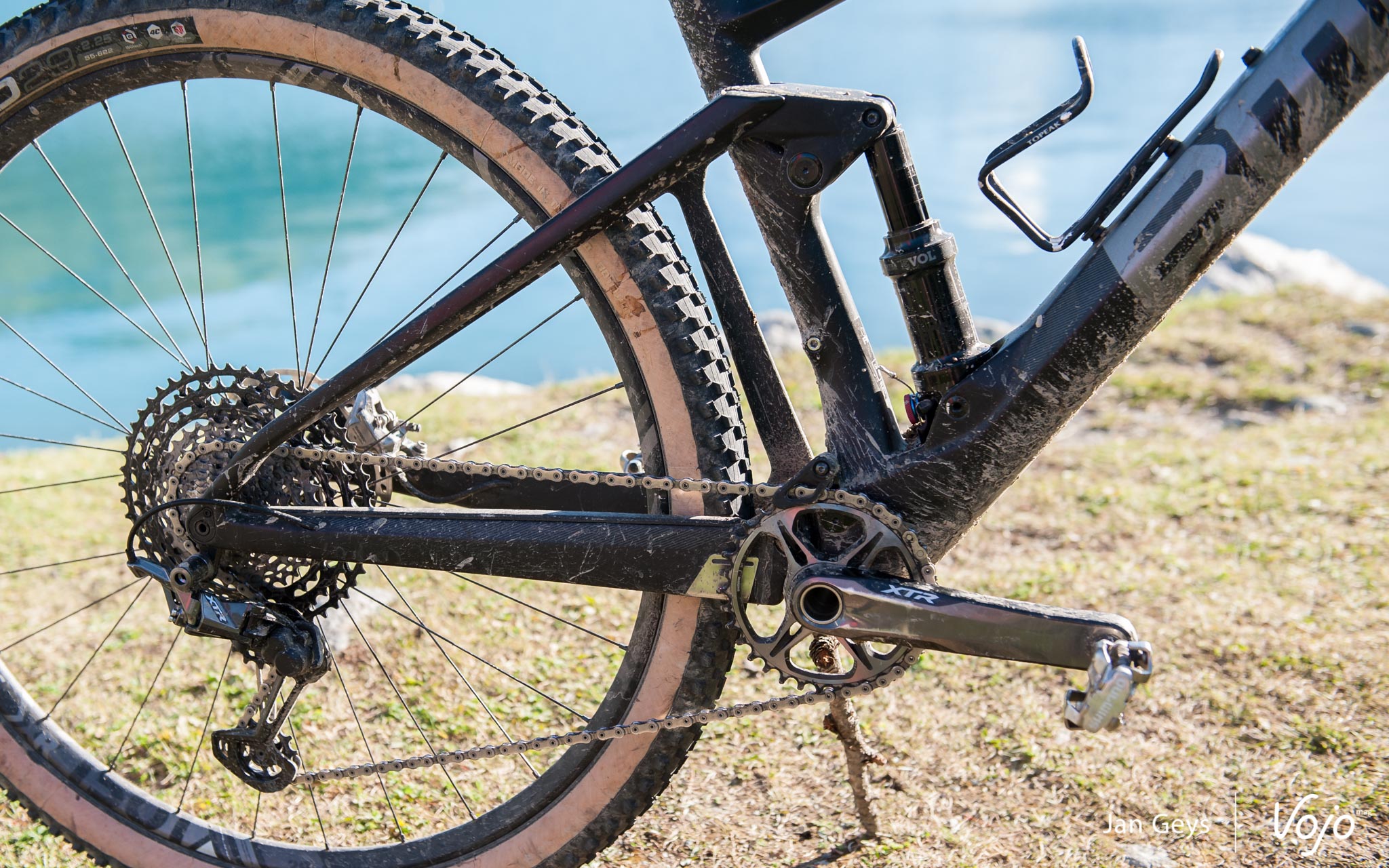 La gamme 2020 se résume à trois modèles, plus le cadre seul. Il y a le One qui ose la peinture dorée pour le haut de gamme, monté en Sram XX1 Eagle AXS, freins Sram Level Ultimate et roues carbone DT Swiss XRC 1200 Spline en 25mm de large. Vient ensuite le Two qui mixe Sram GX et XX1 Eagle avec un pédalier carbone, ainsi que des roues DT Swiss 1501 en alu. C’est celui qui se rapproche le plus de notre modèle d’essai. Et enfin le Three qui joue le rôle de modèle d’accès avec un groupe Sram NX Eagle et des roues maison à moyeu Shimano Deore.