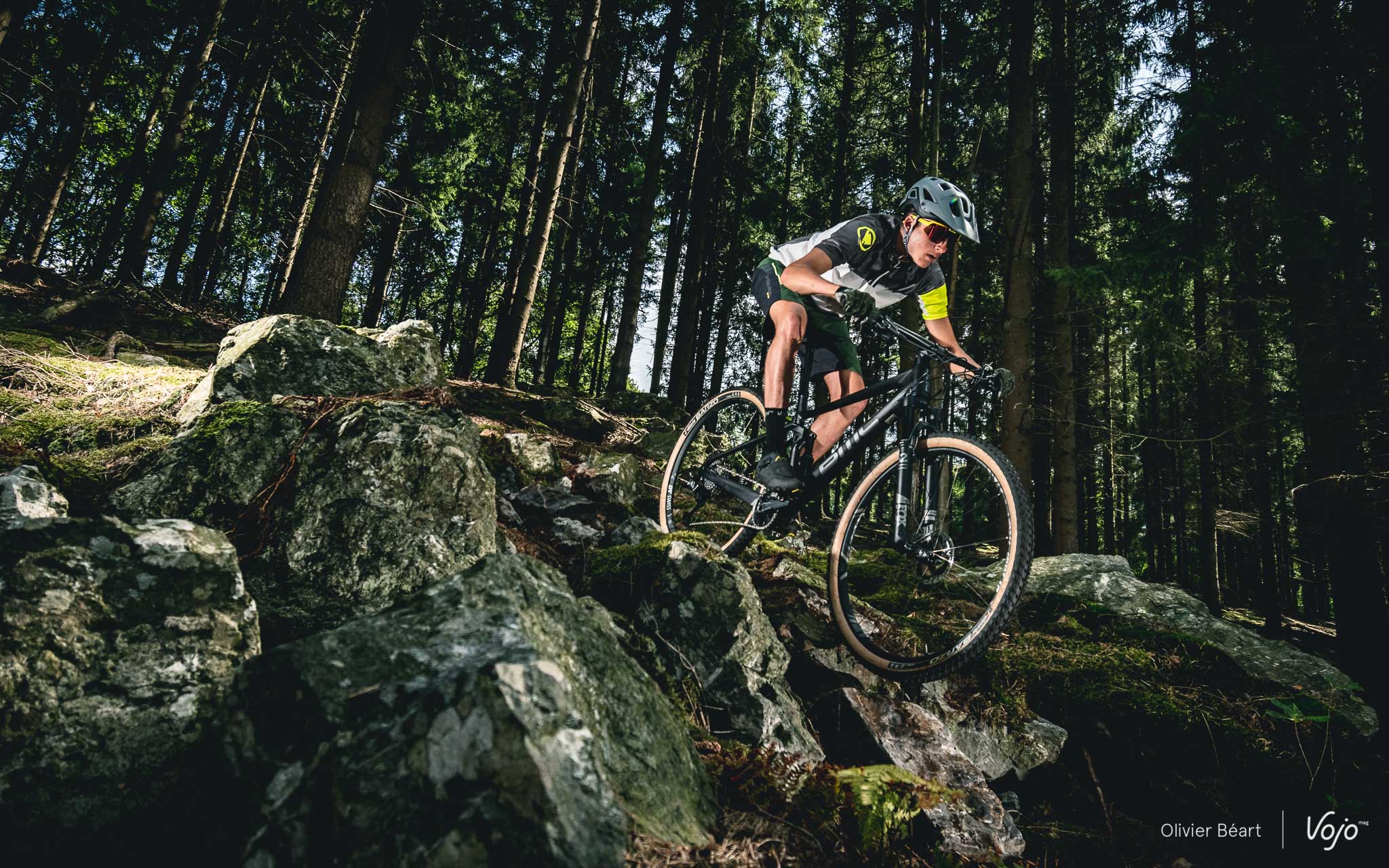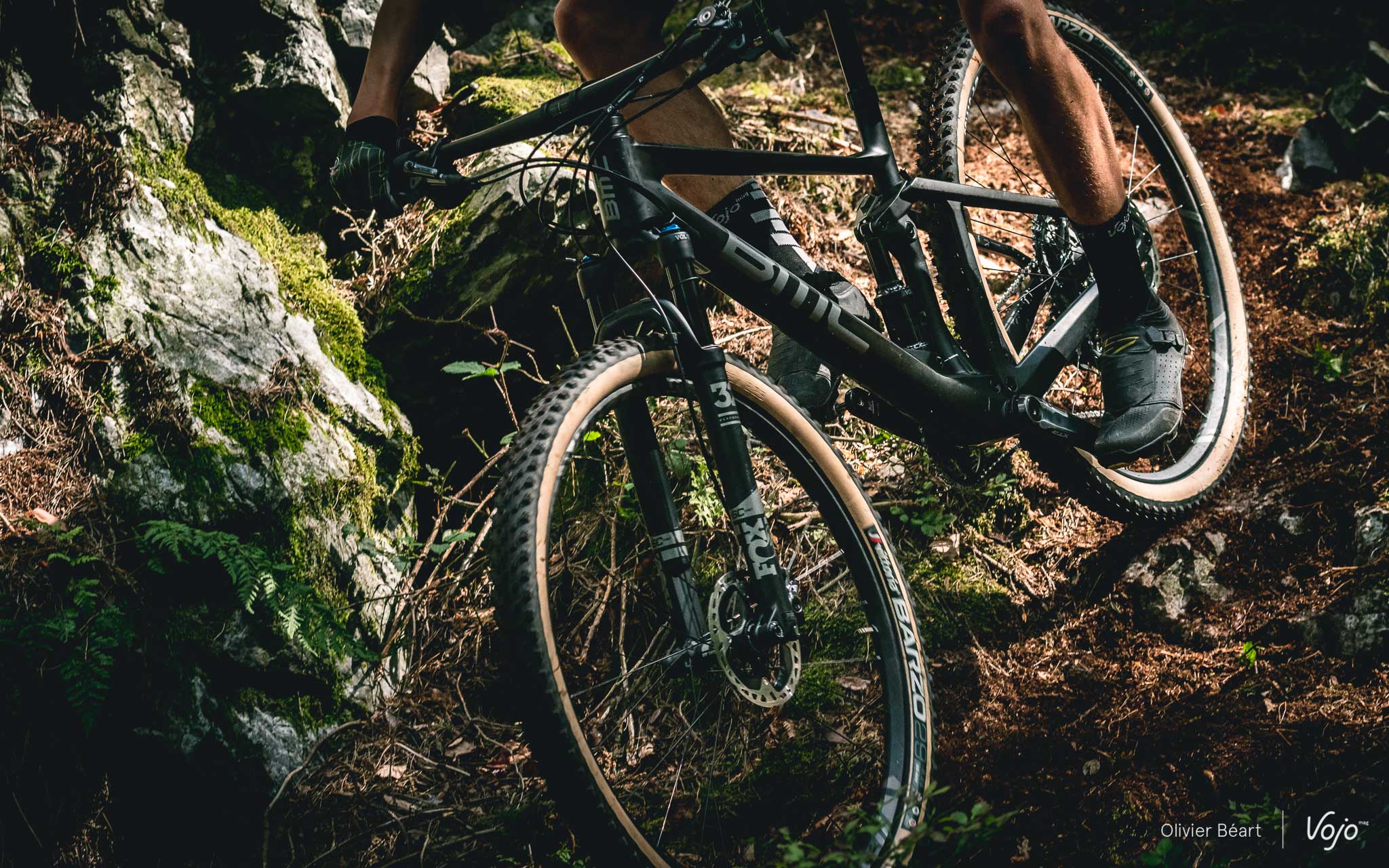 D’emblée, la sensation de légèreté est bien présente. Il accélère sans se faire prier et dégage une impression de dynamisme tout à fait évidente. Ce n’est pas une bombe comme un Specialized Epic ou un Cannondale Scalpel, mais ça envoie sévère. On est plus sur quelque chose entre le Spark et le BH Lynx Race, des fulls très performants, mais qui ne misent pas tout sur le rendement pur et qui jouent aussi la carte de l’aisance dans le technique, voire même du confort comme facteurs de performance.