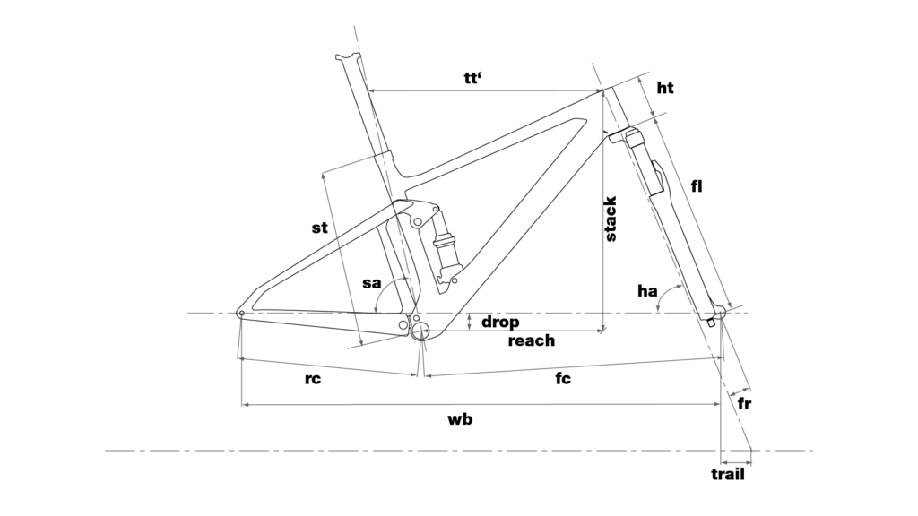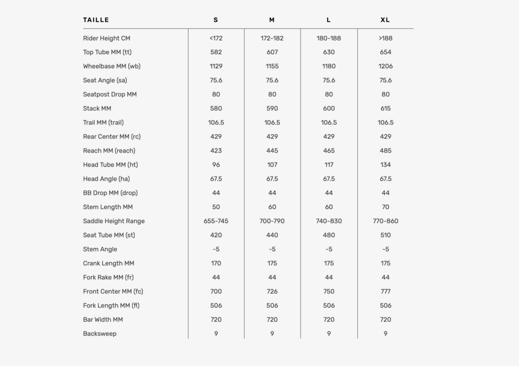 Au niveau des chiffres, cela se traduit par une douille de direction très courte, un reach allongé de 15mm en moyenne sur les différentes tailles, des potences plus courtes (signalons d’ailleurs qu’il s’agit d’un très beau modèle maison, au design épuré), une fourche à déport court, et des bases elles aussi raccourcies à 429mm (un chiffre record pour un full en 29″). Bref, quelque chose de bien dans la tendance, et même d’assez radical pour le segment. Pour vous donner une idée, c’est plus agressif que les Agonist et Speedfox pourtant plus orientés All-Mountain !