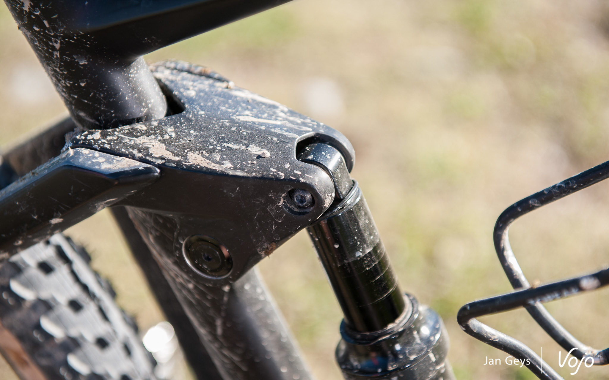 Parmi les détails intéressants « dans la vraie vie », même s’ils coûtent aussi quelques grammes sur la balance, on pense également au jeu de direction qui intègre deux butées afin d’éviter que le cintre ou le bas de la fourche ne puisse entrer en contact et endommager les tubes diagonal et supérieur. On rencontre ce genre de système dans d’autres marques, mais sa présence mérite à chaque fois d’être soulignée.