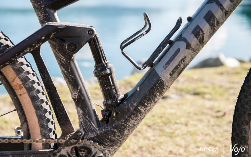 A noter aussi qu’il y a un petit témoin de SAG au niveau de la biellette, bien pratique pour régler facilement sa suspension les premières fois. On apprécie aussi la présence d’une petite protection efficace pour protéger la biellette inférieure des impuretés. Après plusieurs mois, l’ensemble est resté propre et ce n’est pas trop difficile à nettoyer même s’il y a bien parfois quelques saletés qu’il faut aller décrocher avec un peu plus d’effort. Mais rien de dramatique.