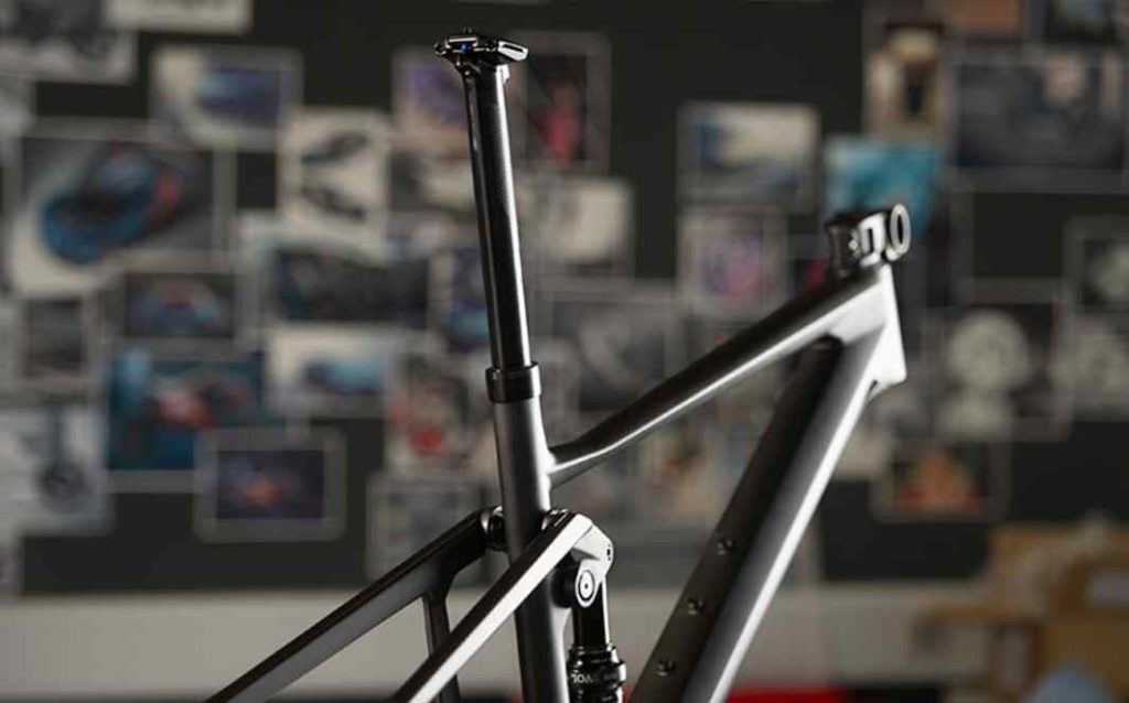 Impossible de passer à côté, et elle mérite bien un chapitre à elle seule : la tige de selle télescopique fait partie intégrante du châssis sur le nouveau BMC Fourstroke ! C’est beau, c’est épuré, mais cela permet aussi de gagner entre 80 et 100g par rapport à une tige de selle télescopique classique placée sur un cadre lambda.