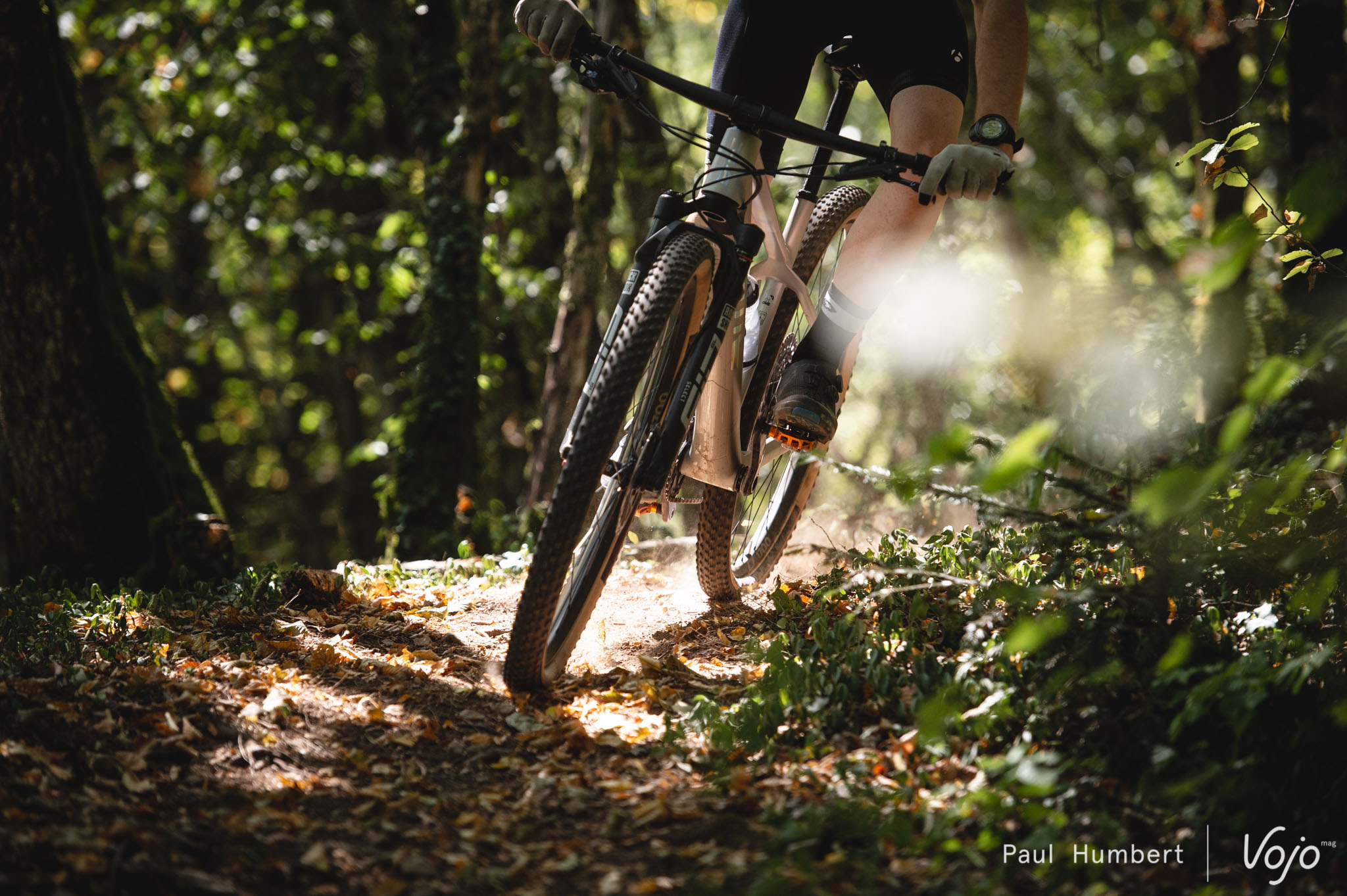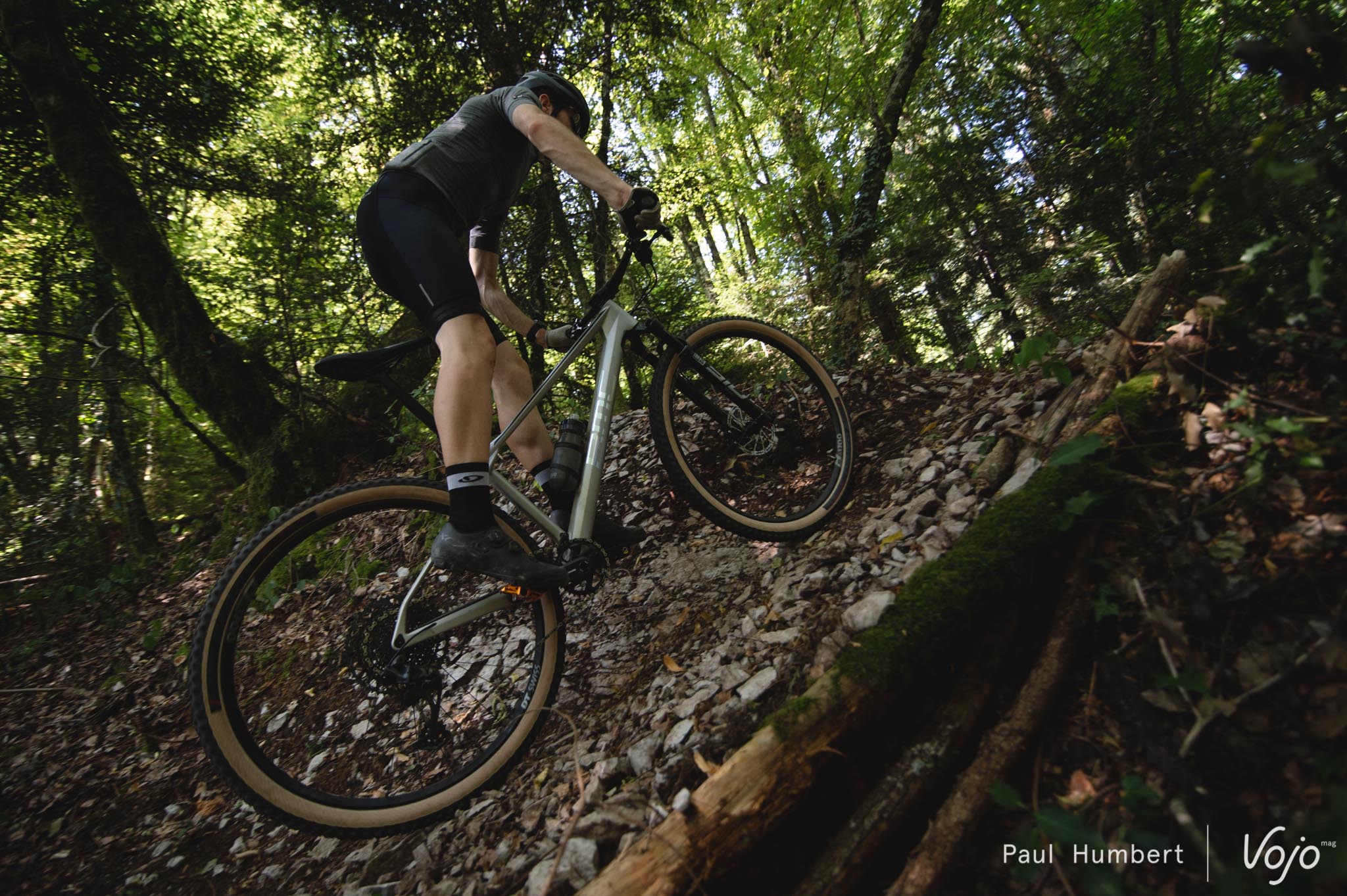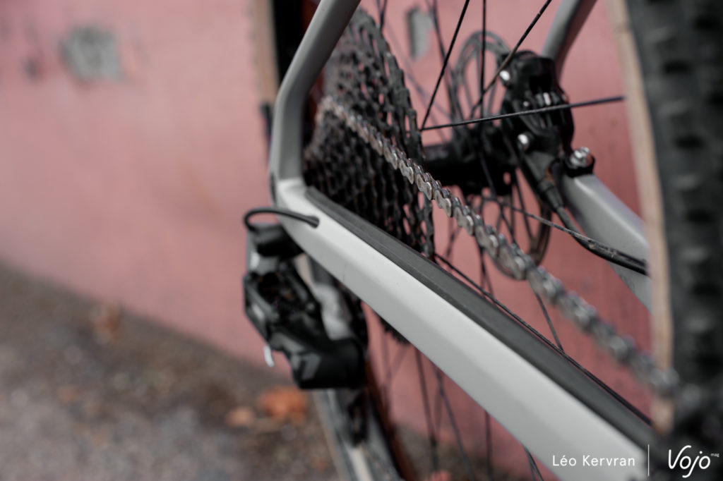 La gestion de l’équilibre entre confort et rigidité s’avère également réussie. Grâce à une rigidité suffisante mais pas excessive, le vélo est agréable en danseuse (une position qu’on a souvent adopté lors du test, encouragé par le plateau en 34 dents qui pousse à rouler à bon rythme plutôt qu’à se balader) mais il reste confortable sur des sorties de plusieurs heures. Bien sûr, on n’est pas sur un tout-suspendu et on sent tout de même bien le terrain, mais le vélo ne « tape » pas lorsqu’on est assis et que le paysage défile, pas plus qu’il ne bute sur les obstacles dans les montées techniques.