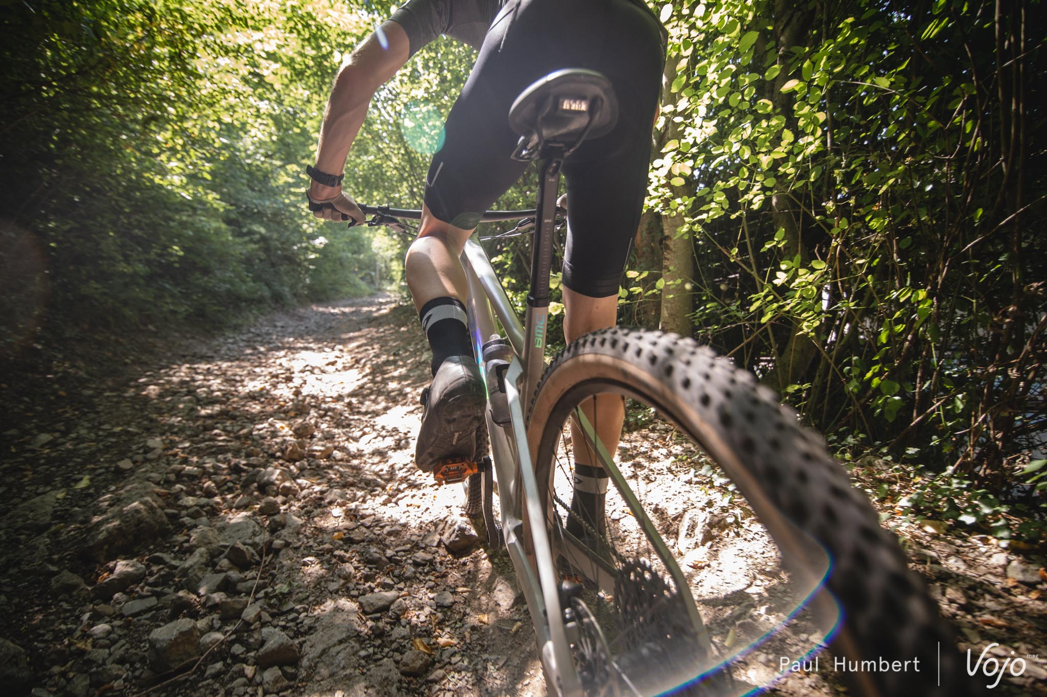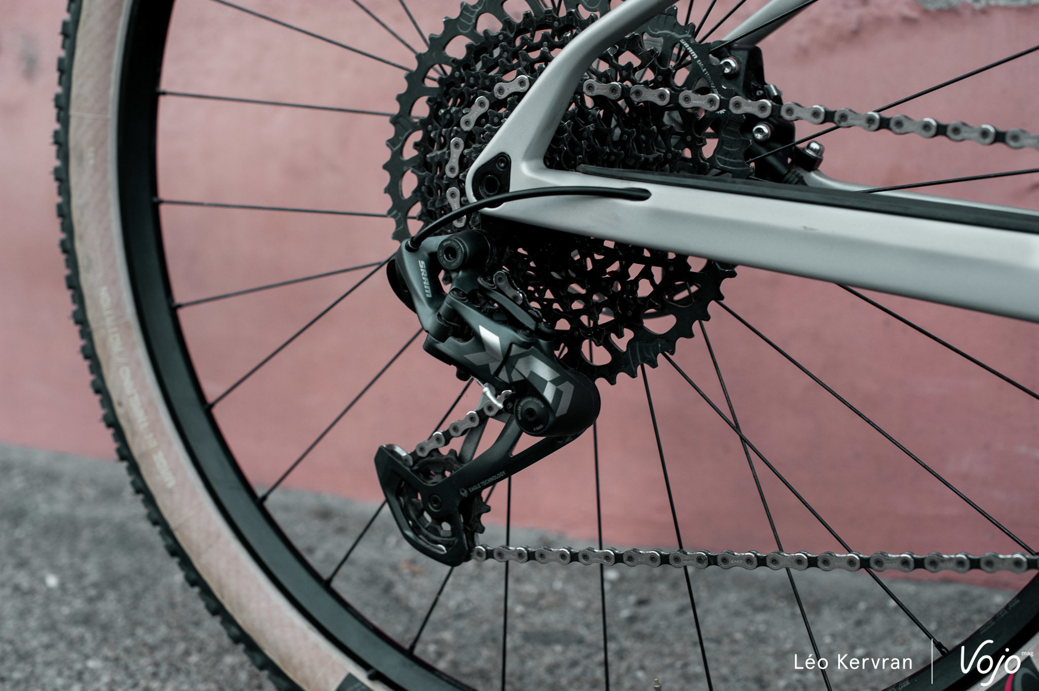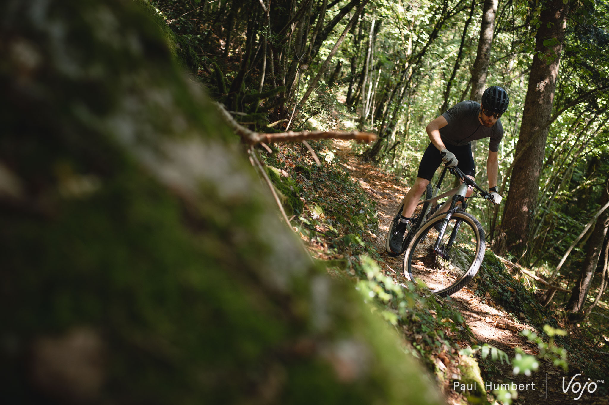 La gestion de l’équilibre entre confort et rigidité s’avère également réussie. Grâce à une rigidité suffisante mais pas excessive, le vélo est agréable en danseuse (une position qu’on a souvent adopté lors du test, encouragé par le plateau en 34 dents qui pousse à rouler à bon rythme plutôt qu’à se balader) mais il reste confortable sur des sorties de plusieurs heures. Bien sûr, on n’est pas sur un tout-suspendu et on sent tout de même bien le terrain, mais le vélo ne « tape » pas lorsqu’on est assis et que le paysage défile, pas plus qu’il ne bute sur les obstacles dans les montées techniques.