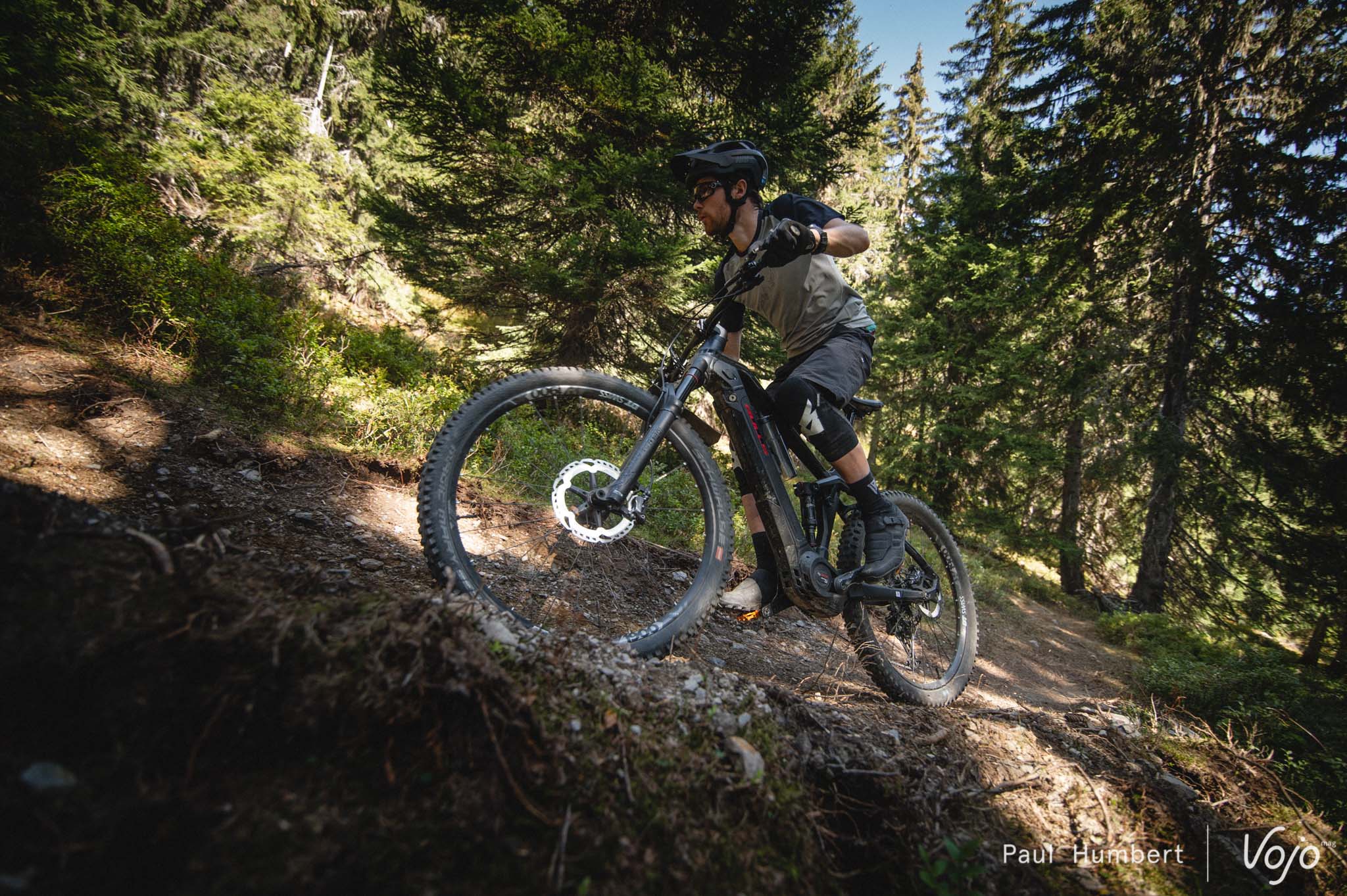 C’est en revanche plus compliqué lorsqu’on s’aventure sur des terrains plus techniques et surtout plus raides, car ce vélo a un défaut majeur : il cabre très facilement. Pas de souci tant qu’on grimpe sur route ou sur piste, mais lorsqu’on bascule sur des traces plus étroites et plus joueuses, le Bulls peut devenir très difficile à gérer. Une sensation renforcée par l’Extended Boost, ce petit « coup de pouce » ajouté par Bosch sur la dernière mise à jour de son système Performance CX.